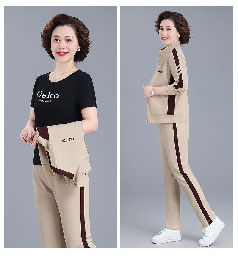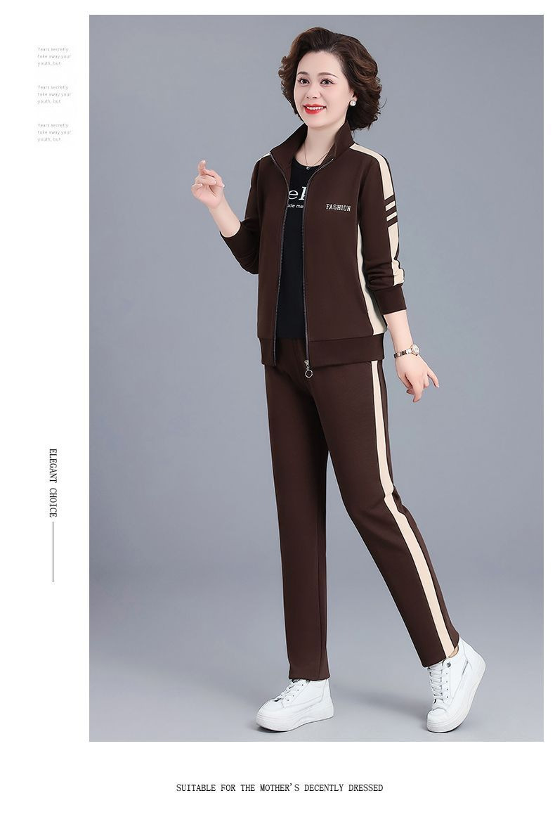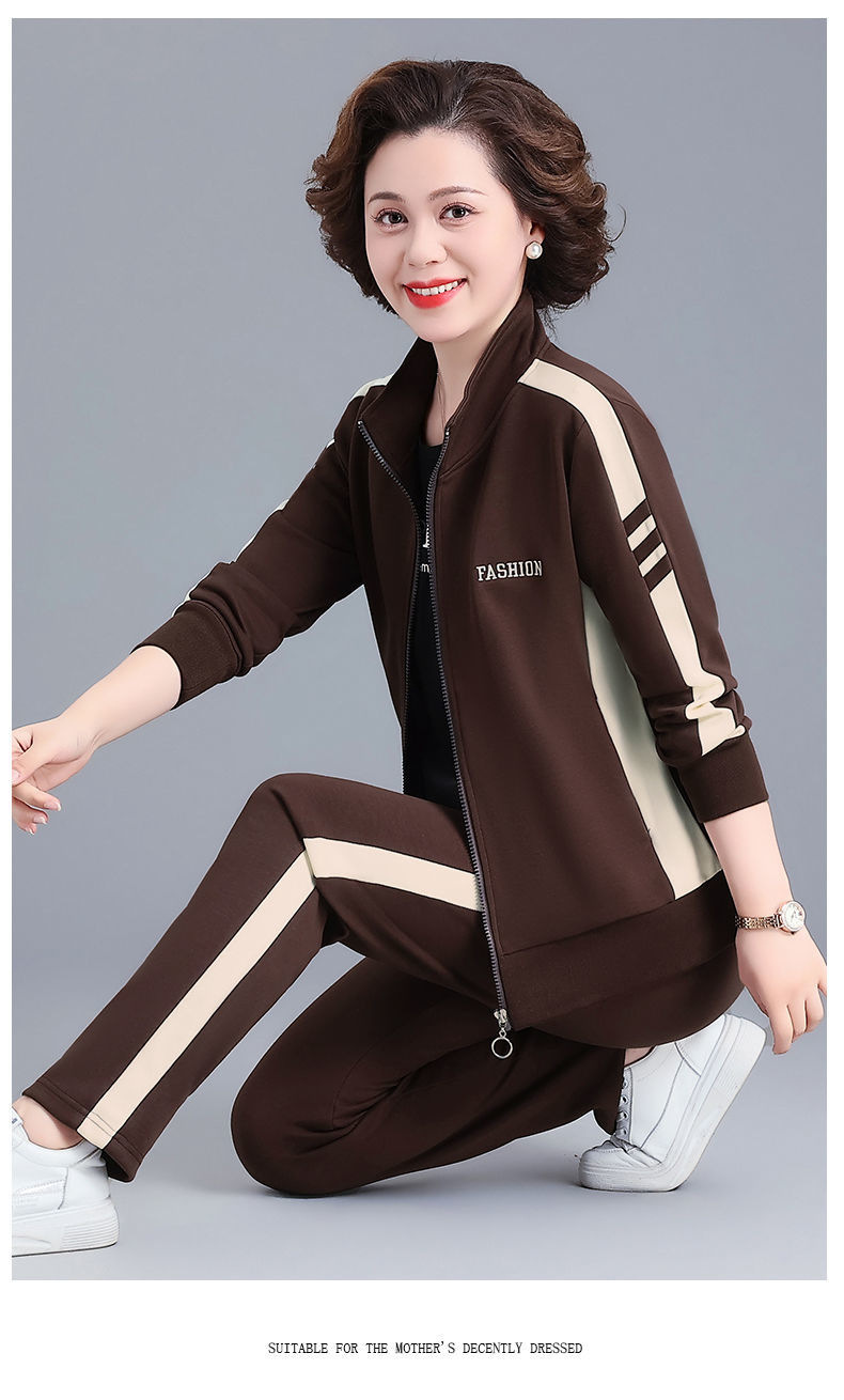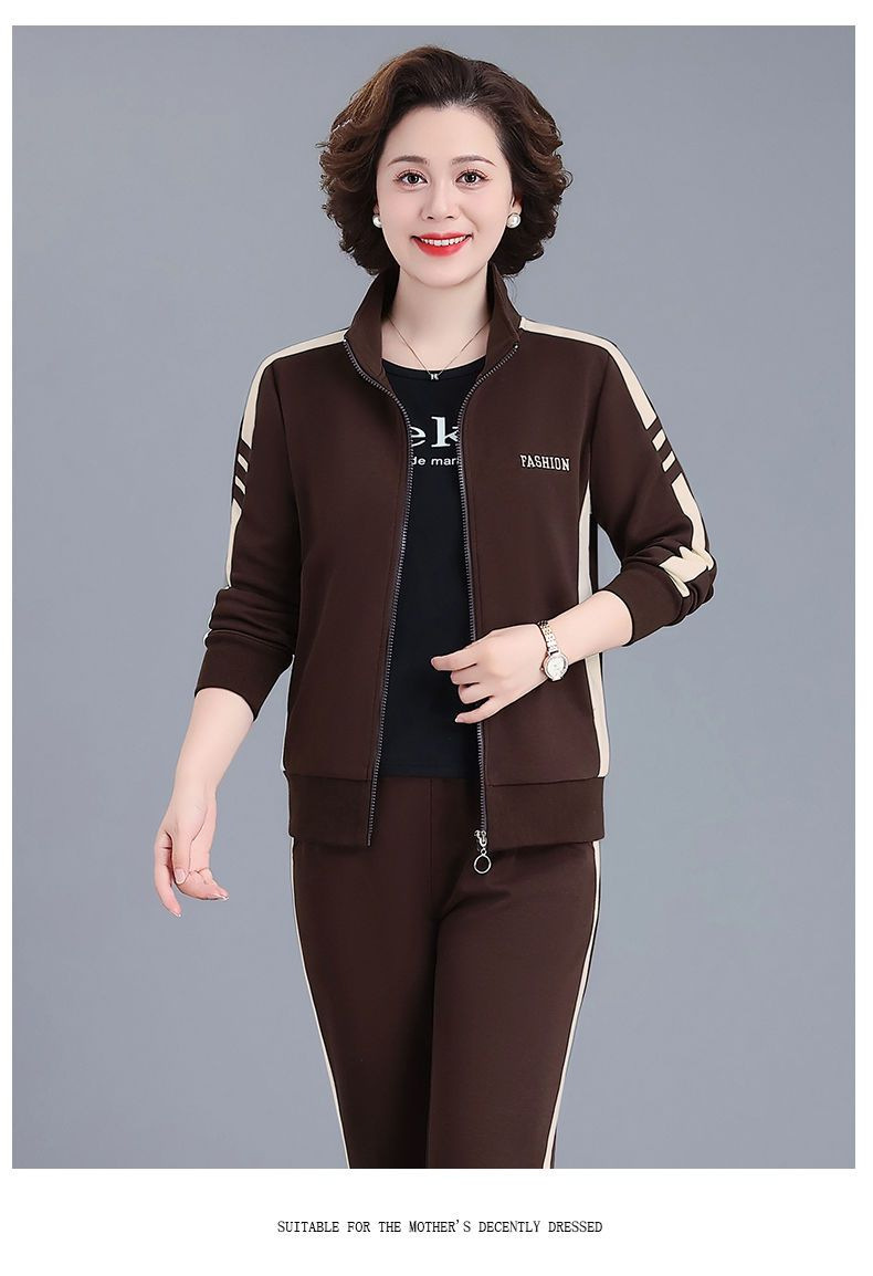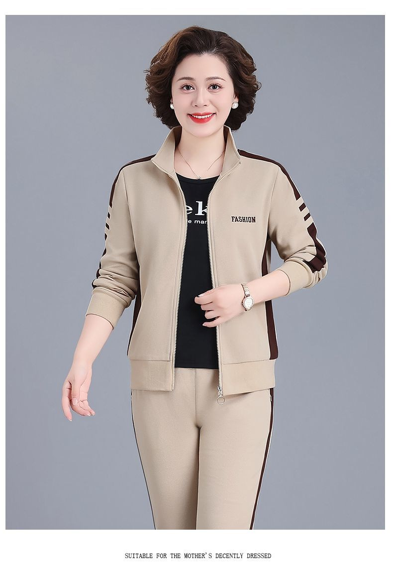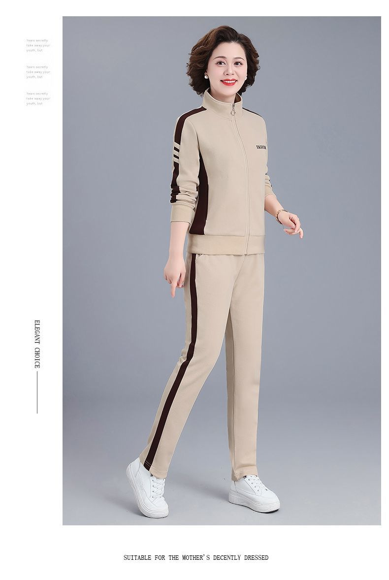 2024 년 중년 및 노인을위한 새로운 어머니의 캐주얼 스포츠웨어 세트 여성의 봄과 가을 플러스 사이즈 스탠드 칼라 스웨터 투피스 세트