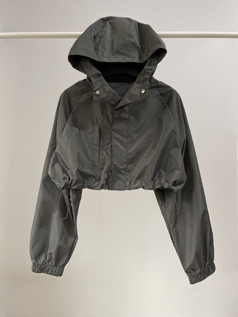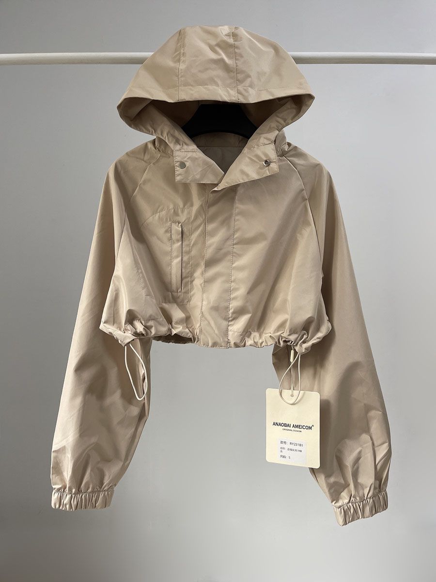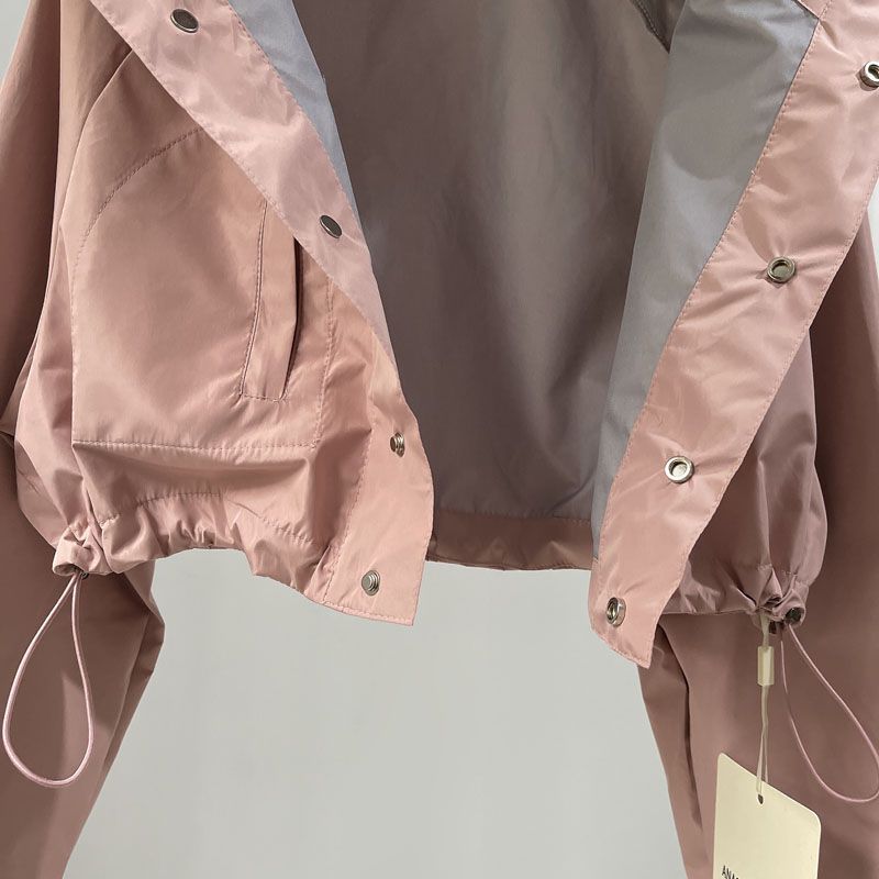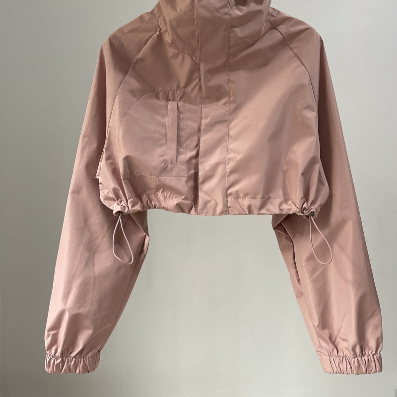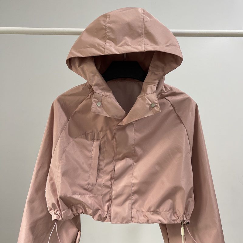 유럽과 미국의 스파이스 걸스 야외 짧은 러시 옷 여성 거리 가을 작업복 캐주얼 루즈 후드 긴팔 얇은 짧은 코트