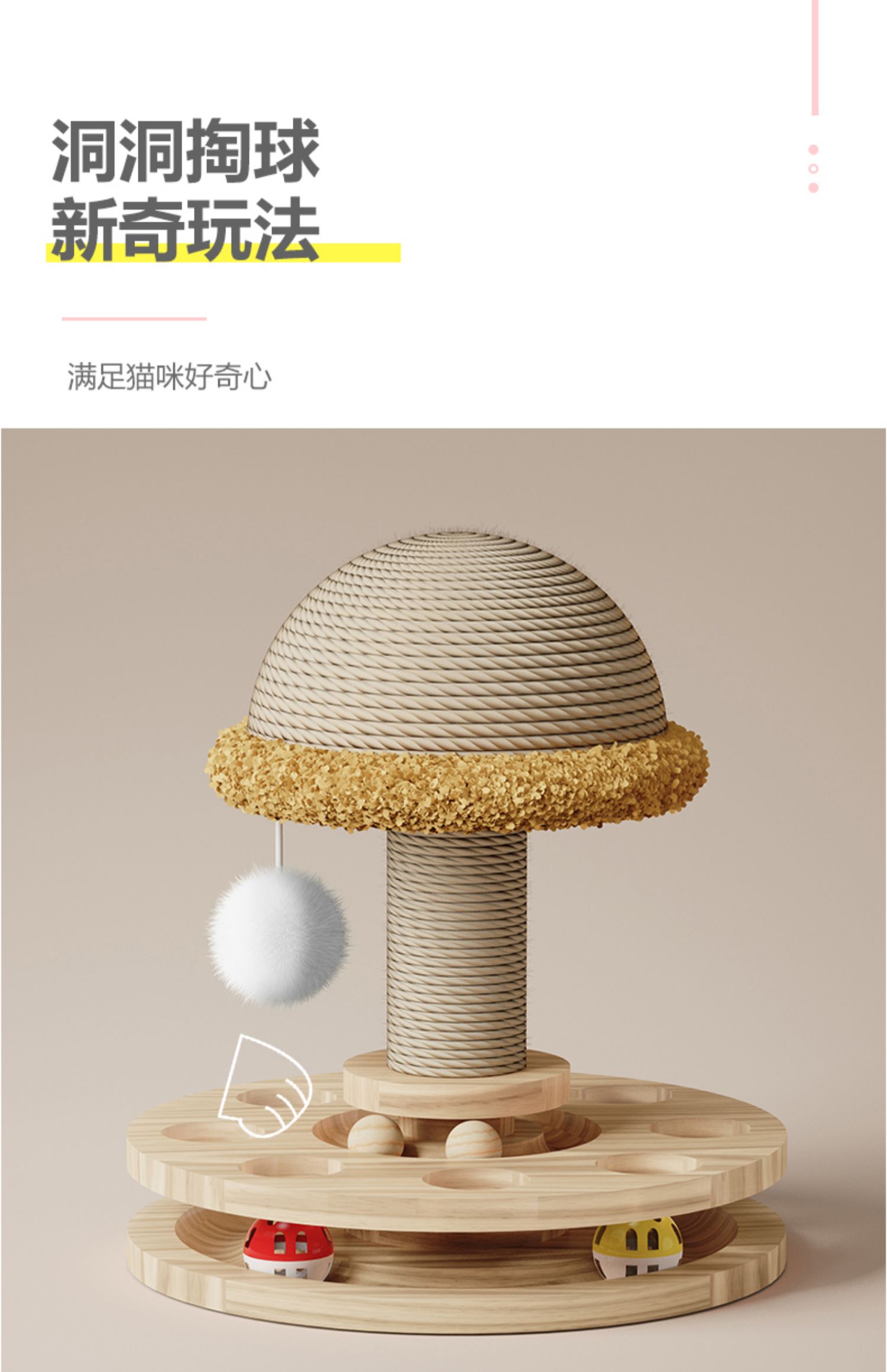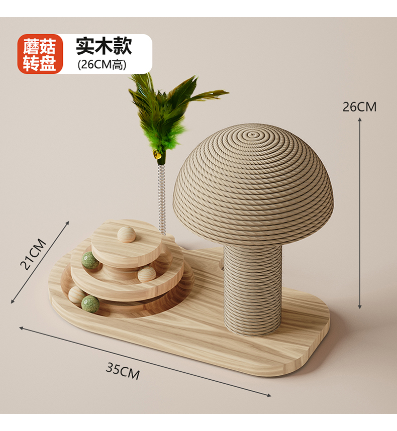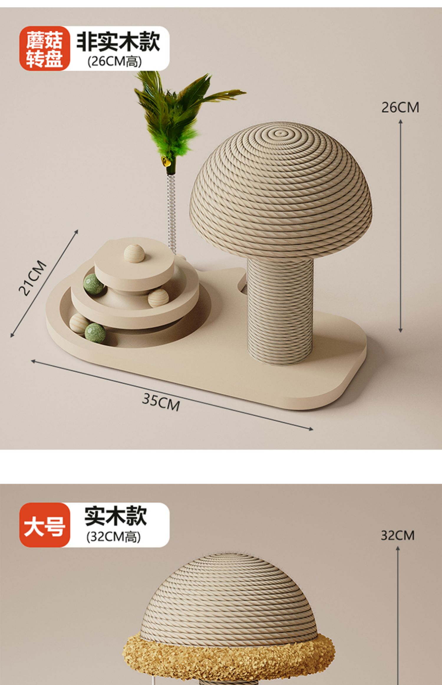[단단한 나무 모델☆핑크】버섯 고양이 턴테이블 긁는 기둥 트럼펫