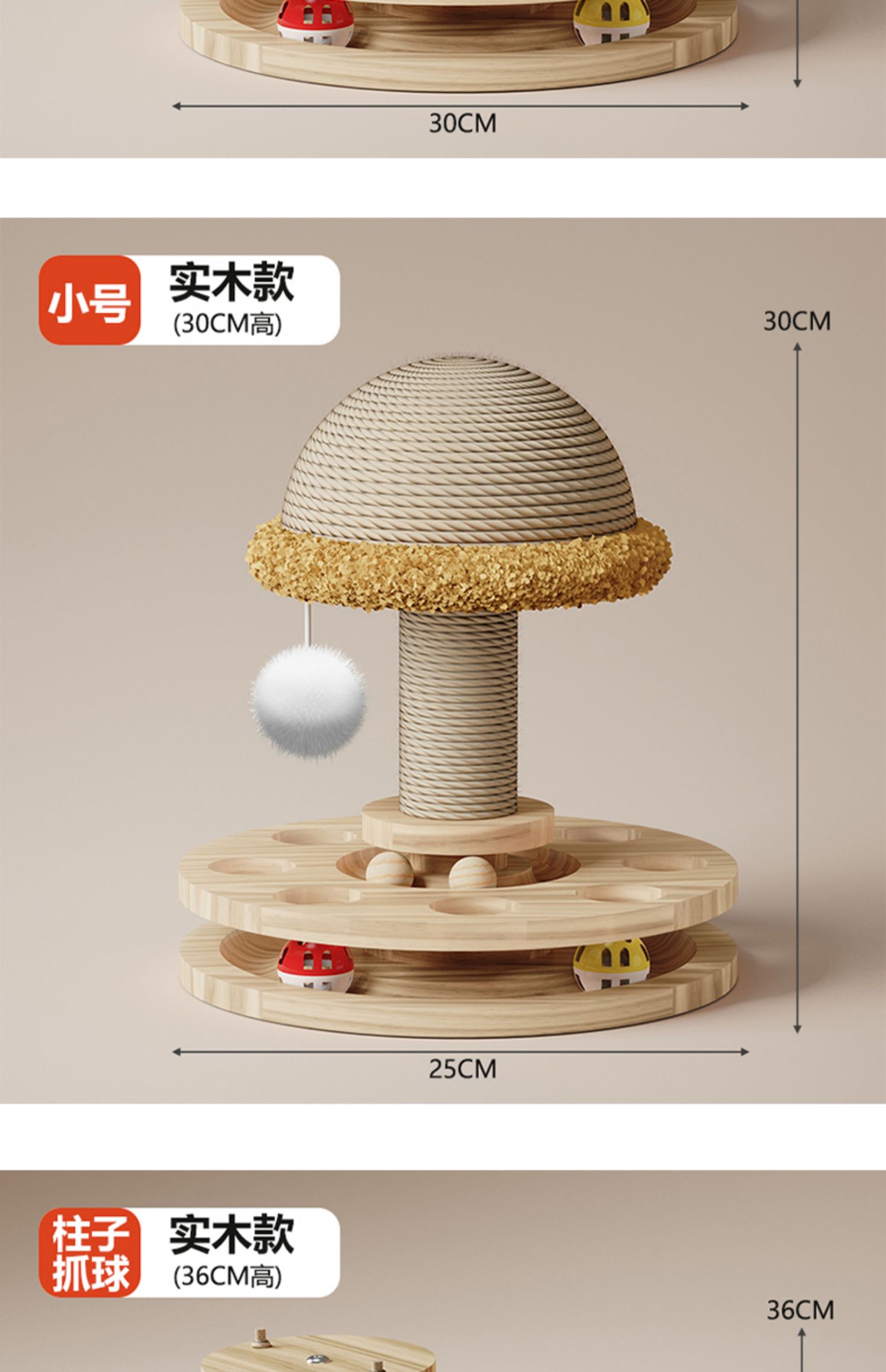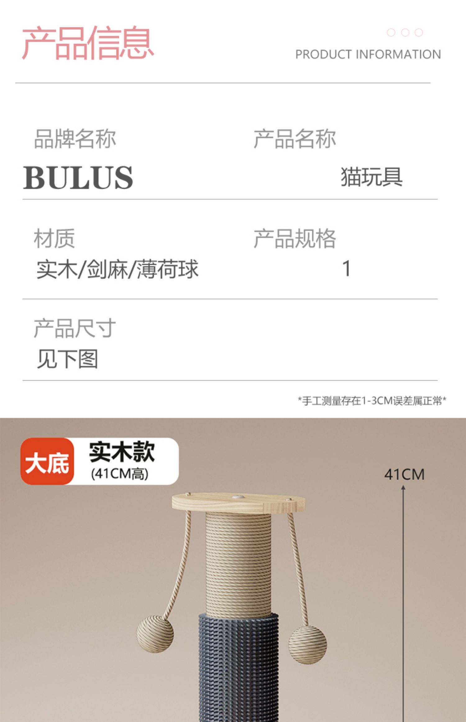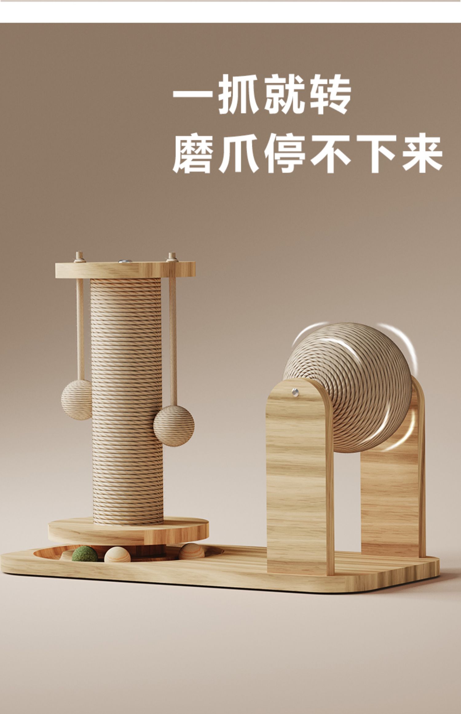 [단단한 나무 모델☆품질 우선 선택] 사이잘 고양이 긁는 기둥 [행잉 공의 임의 색상]