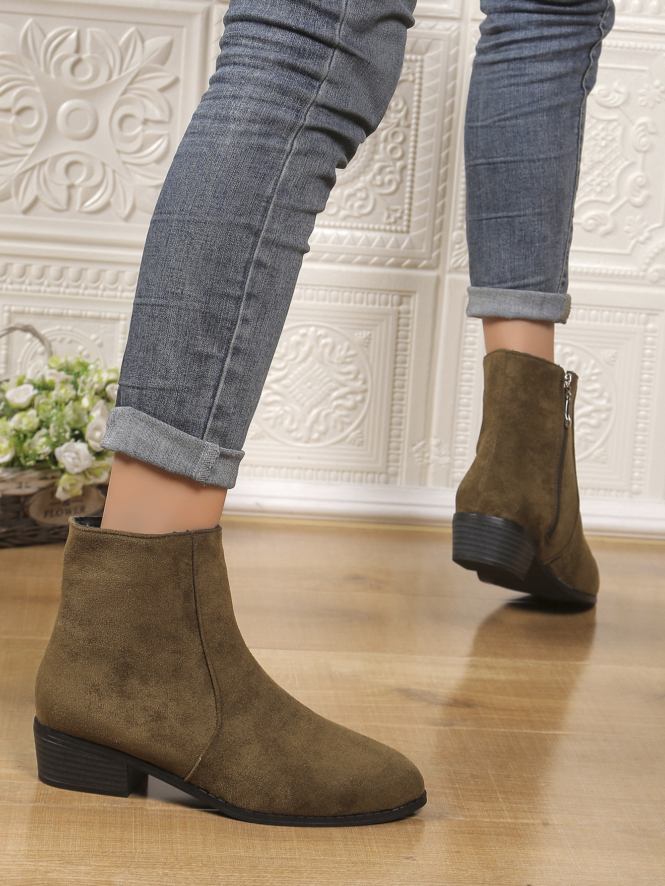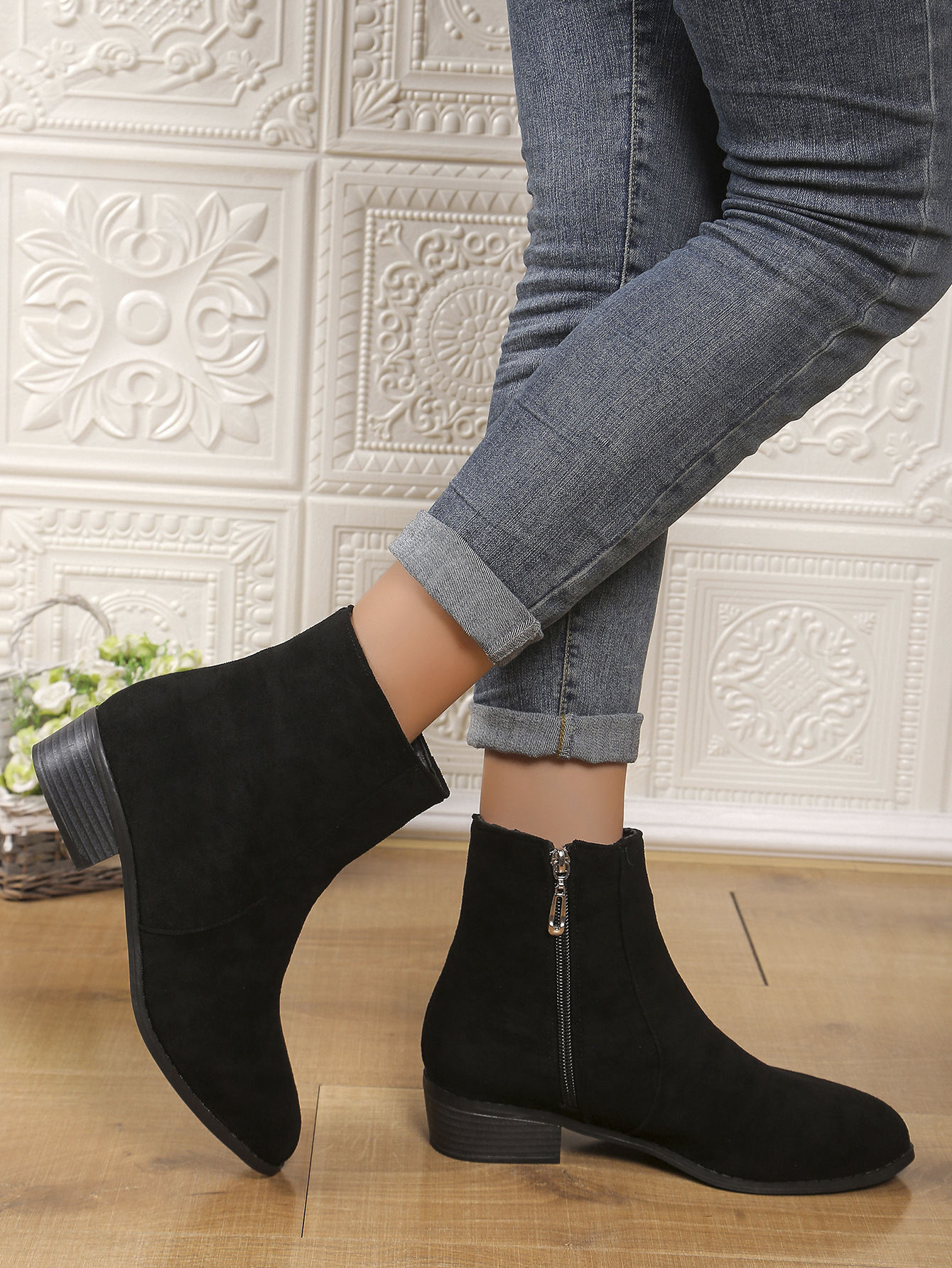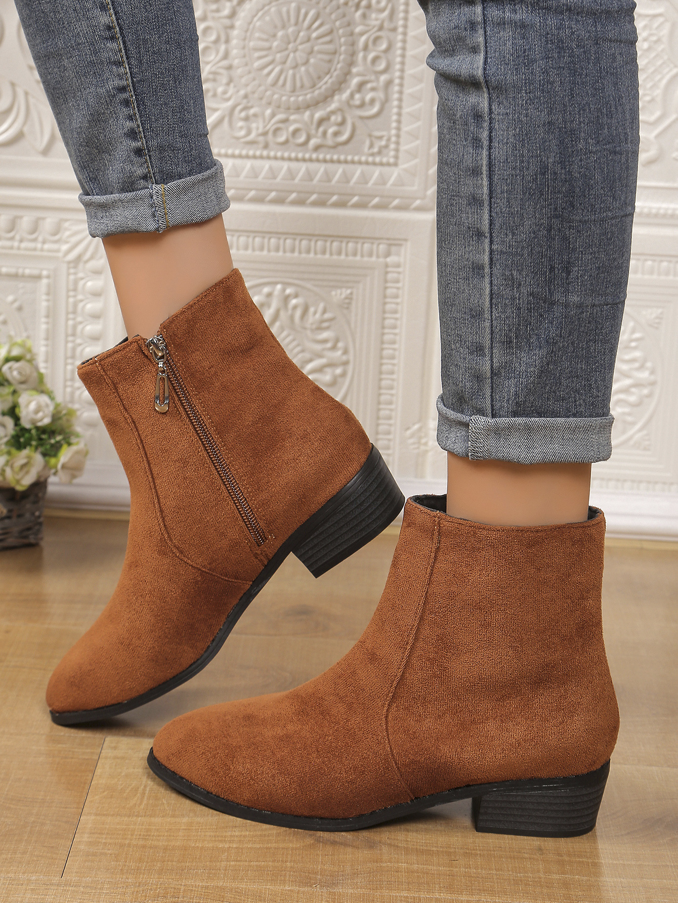 2024 가을과 겨울 대외 무역 유럽과 미국 패션 국경 플러스 사이즈 지퍼 여성 스웨이드 마틴 부츠 두꺼운 힐 짧은 튜브 여성 부츠
