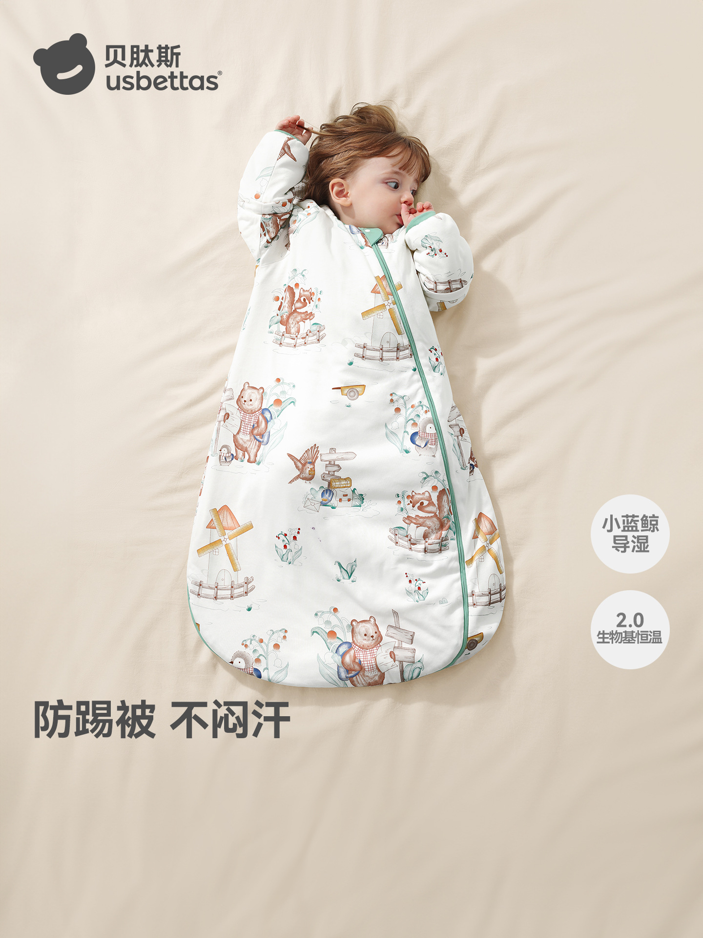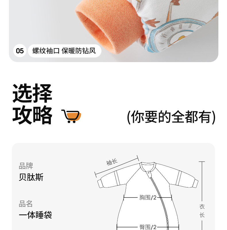 벳티드 [펩티드소프트] 아기 침낭 가을과 겨울 일정한 온도 단일 가이드 신생아기 통합 안티 킥 퀴어 사계절