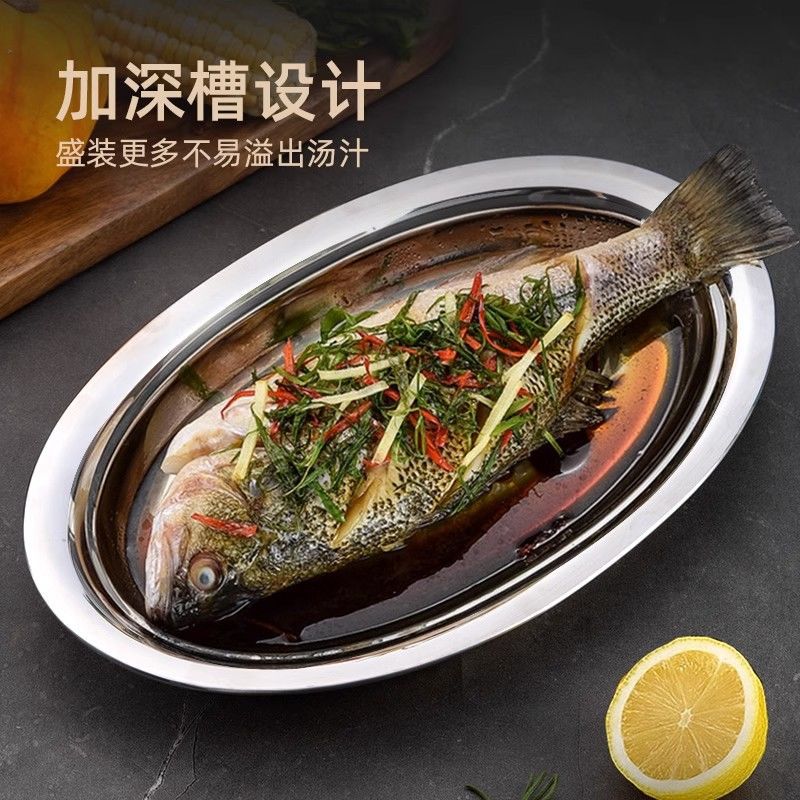 특수 두꺼운 스테인레스 스틸 어판 타원형 구이 어판 가정용 플레이트 상업용 일본식 식기 찐 어판