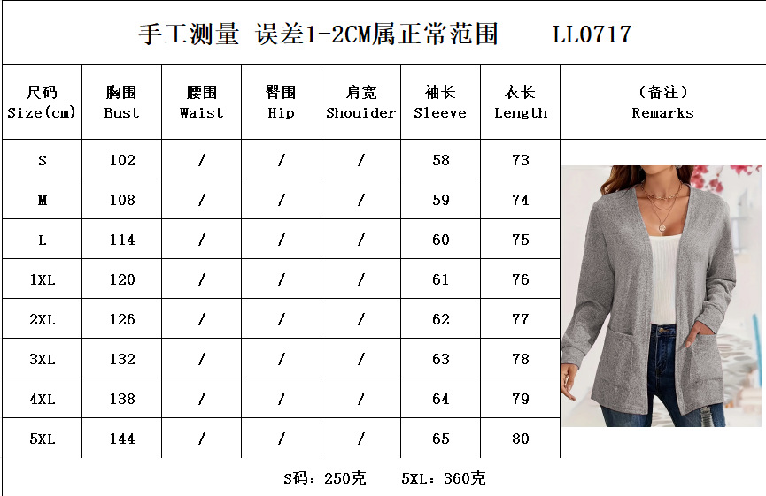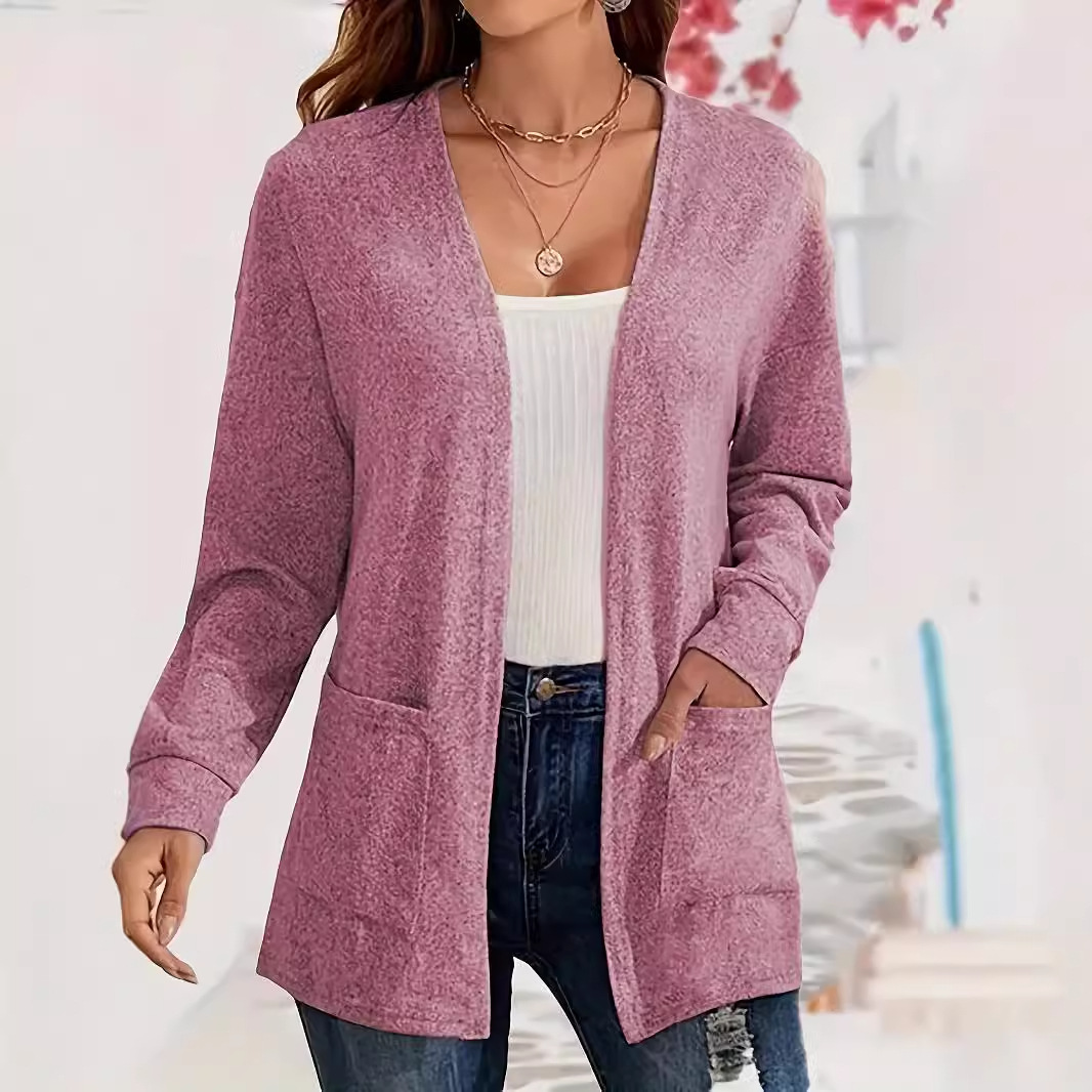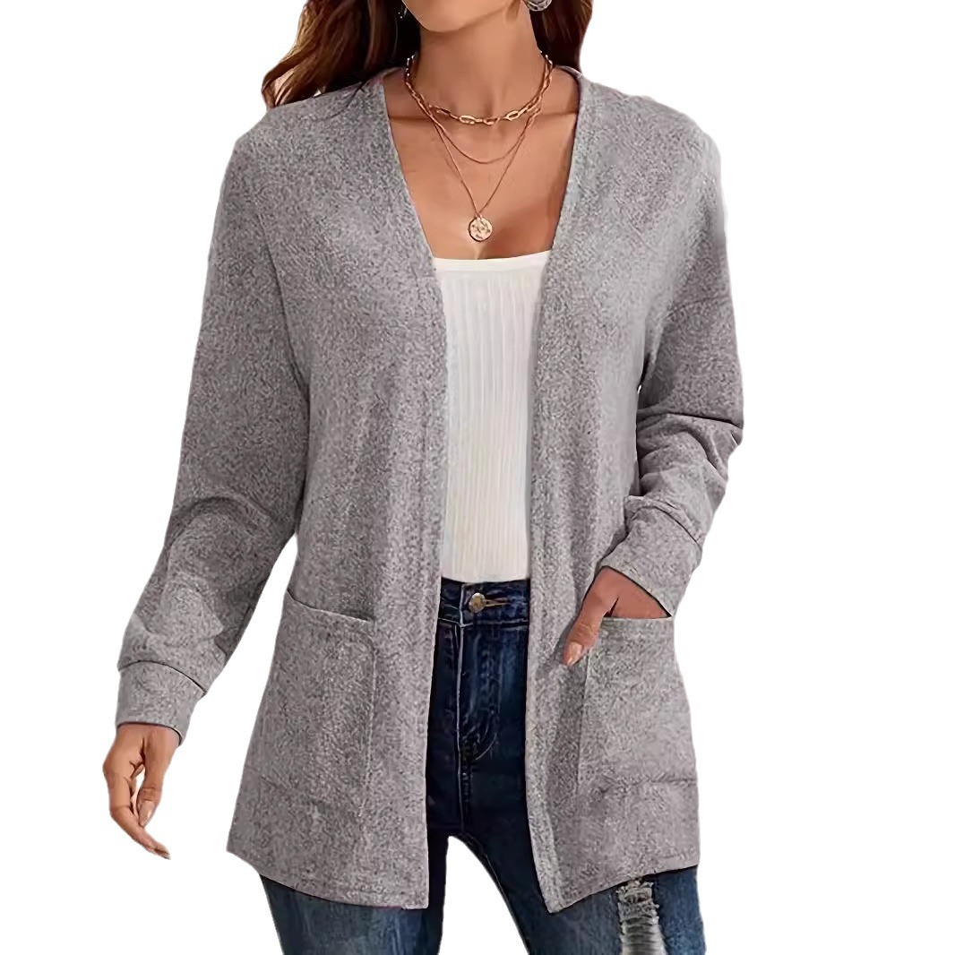 2026 가을 겨울 신상 유럽 및 미국 스타일 단색 포켓 루즈핏 얇은 가디건 여성용 대형 사이즈 긴팔 상의 해외배송