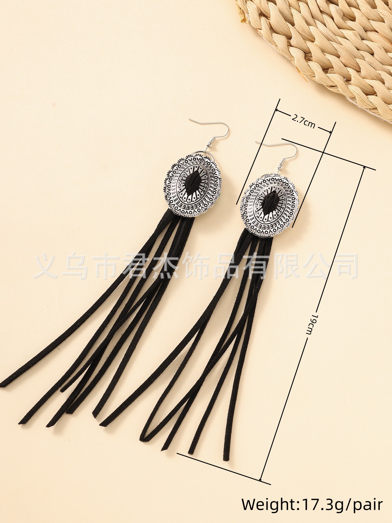 국경 간 유럽과 미국 보헤미안 스타일 귀걸이 창조적 인 성격 귀걸이 복고풍 긴 가죽 술 귀걸이 도매