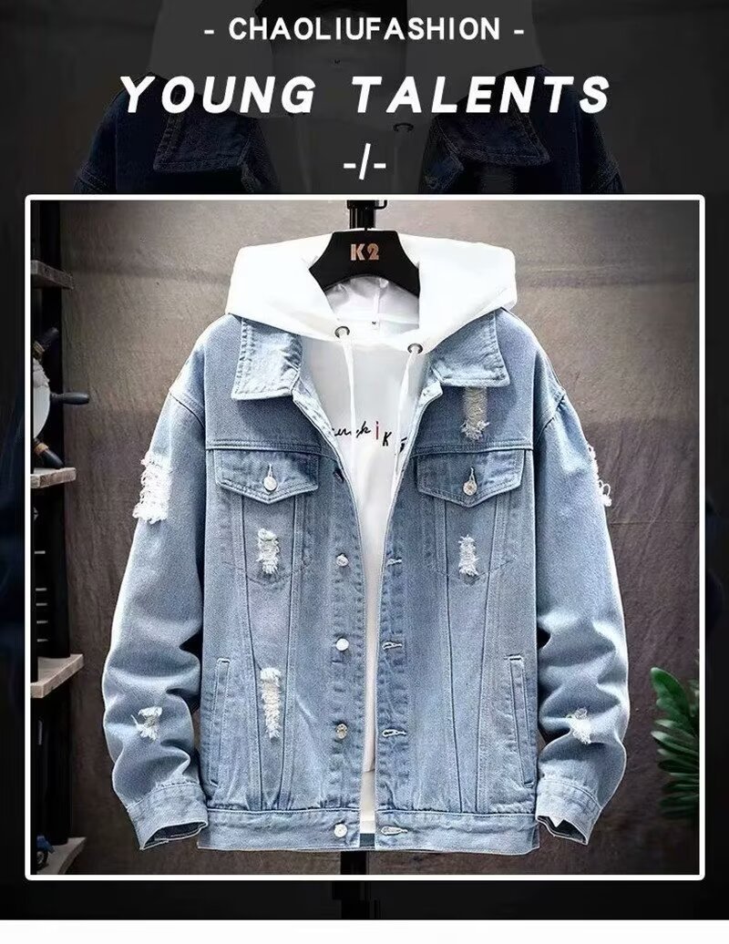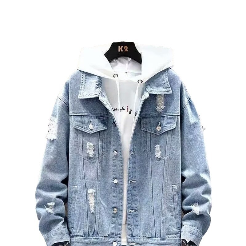 스트리트 러피 잘 생긴 데님 코트 남성 온라인 인기 새로운 한국 패션 봄과 가을 느슨한 패션 브랜드 작업 재킷 남성용 탑