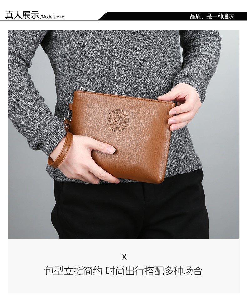 국경 간 대외 무역 2024 새로운 캐주얼 남성 클러치 백 간단한 PU 부드러운 가죽 남성 가방 휴대 전화 가방 대용량 지갑