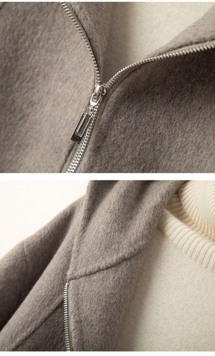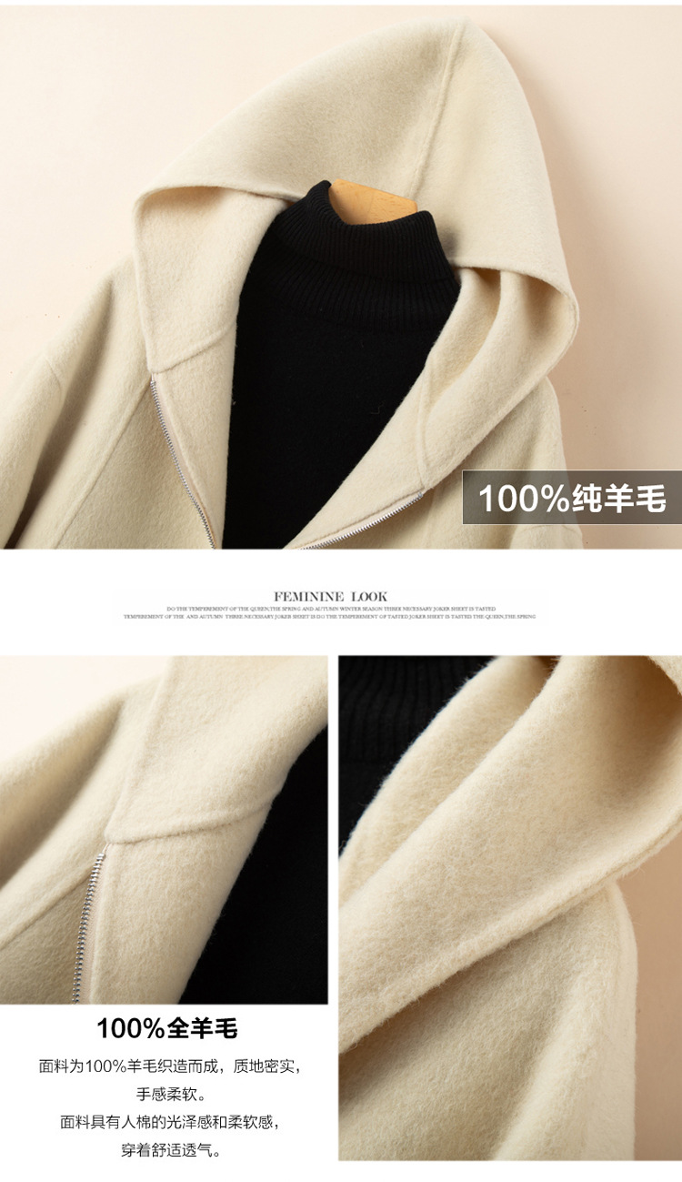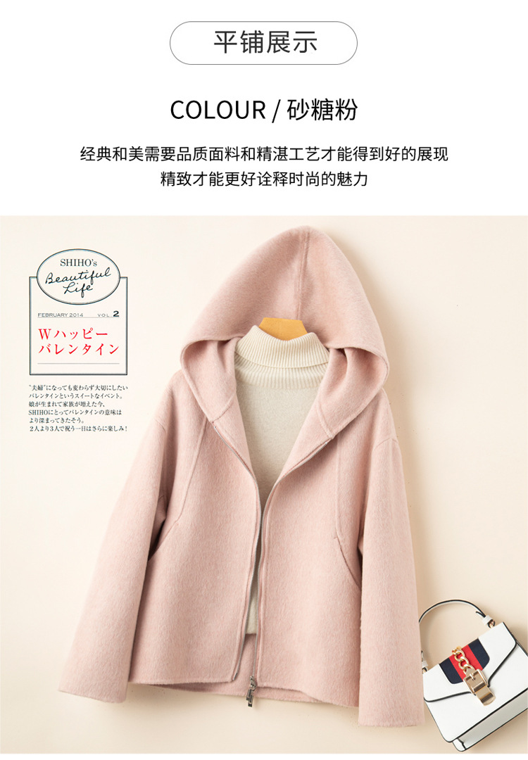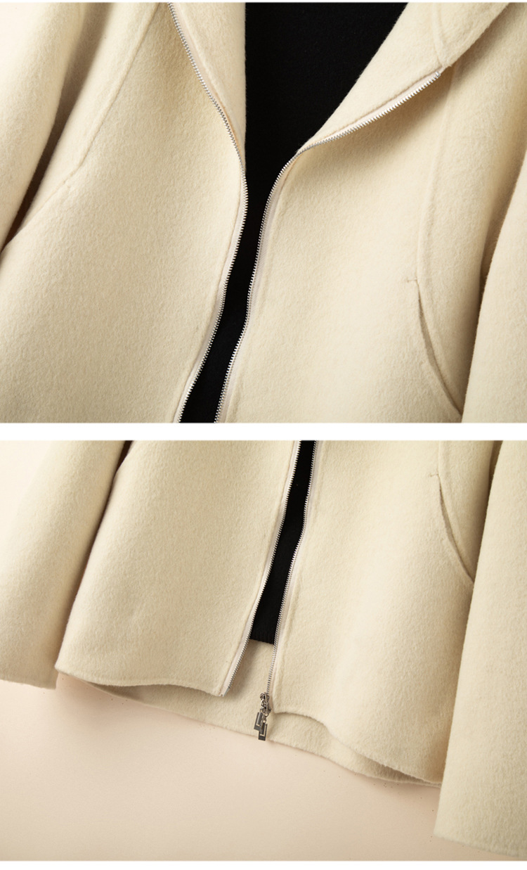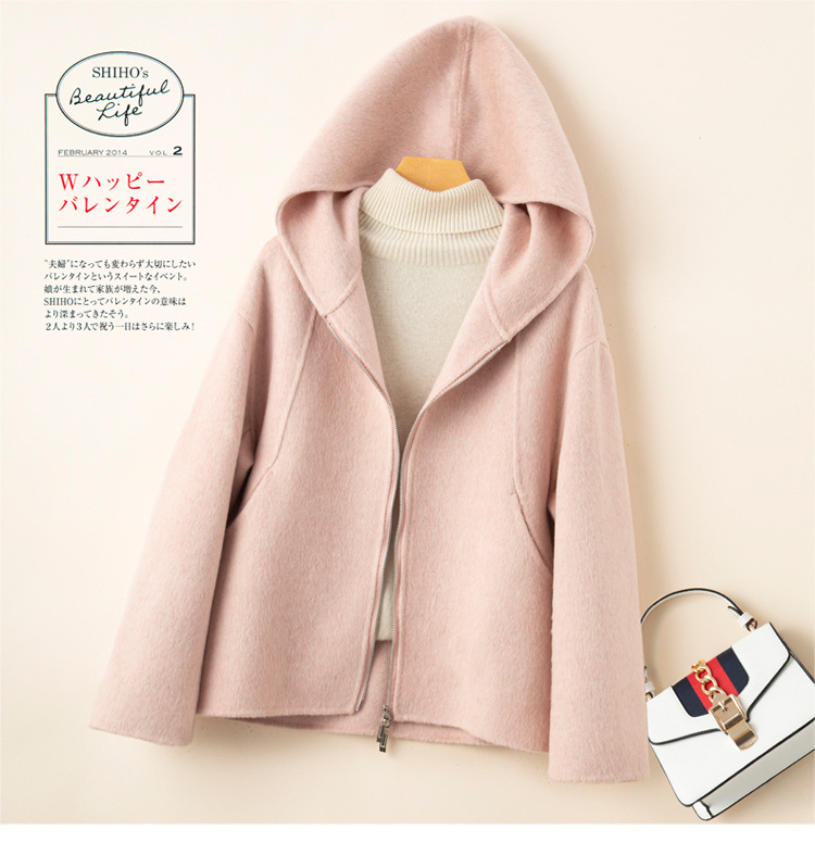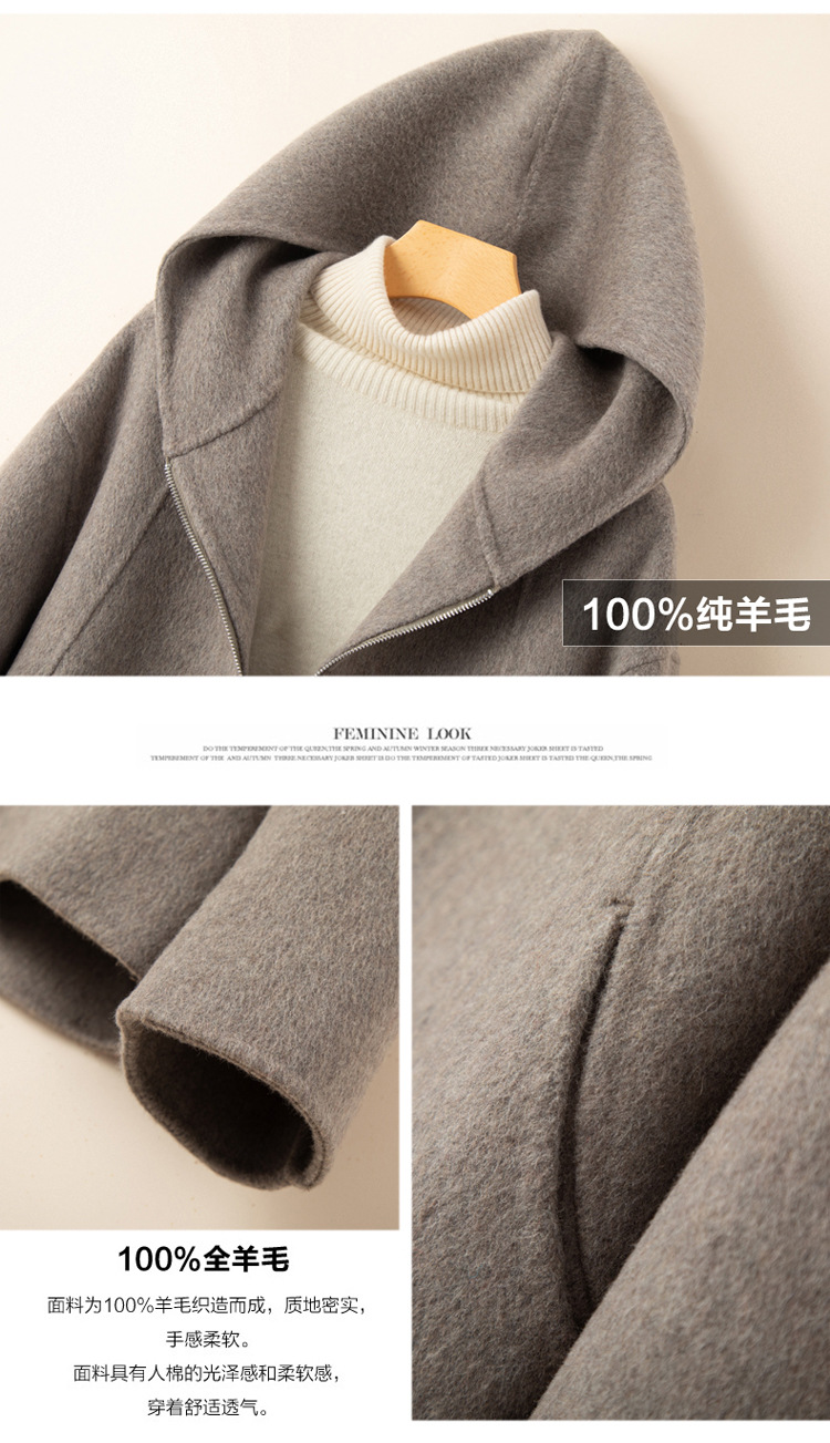새로운 도착 작은 양면 울 코트 여성 짧은 후드 클래식 지퍼 캐주얼 심플 재킷