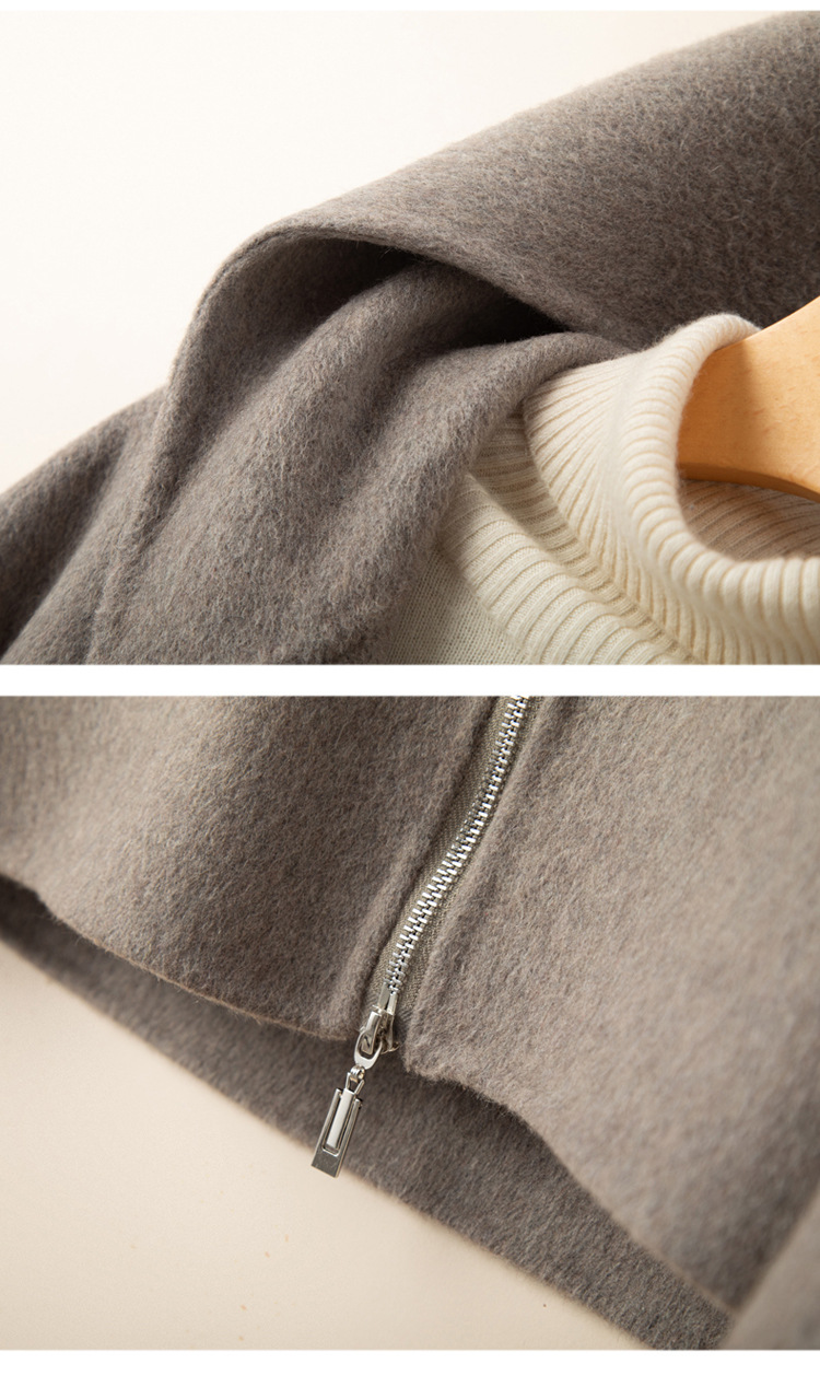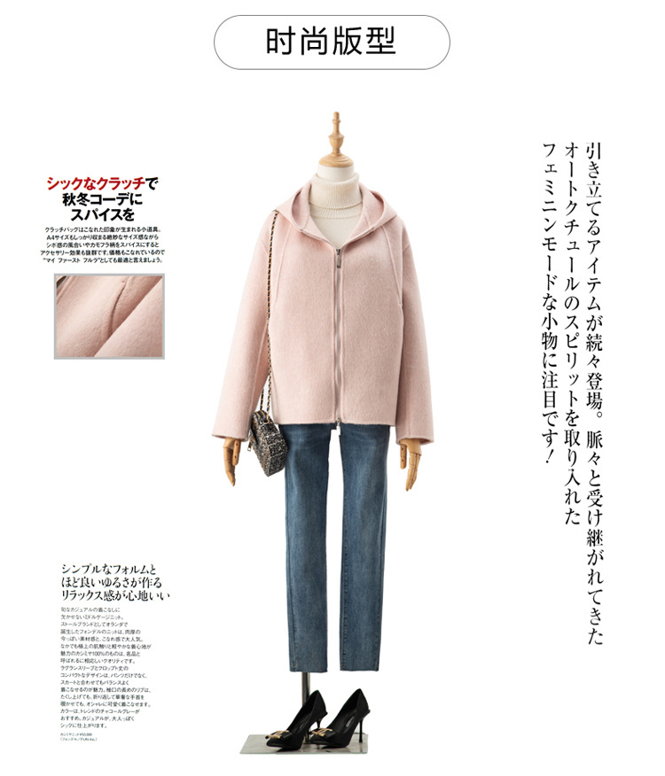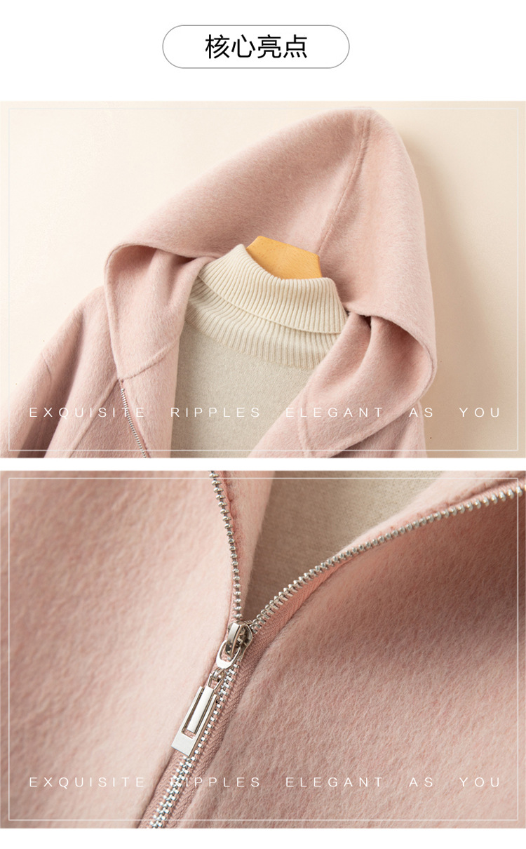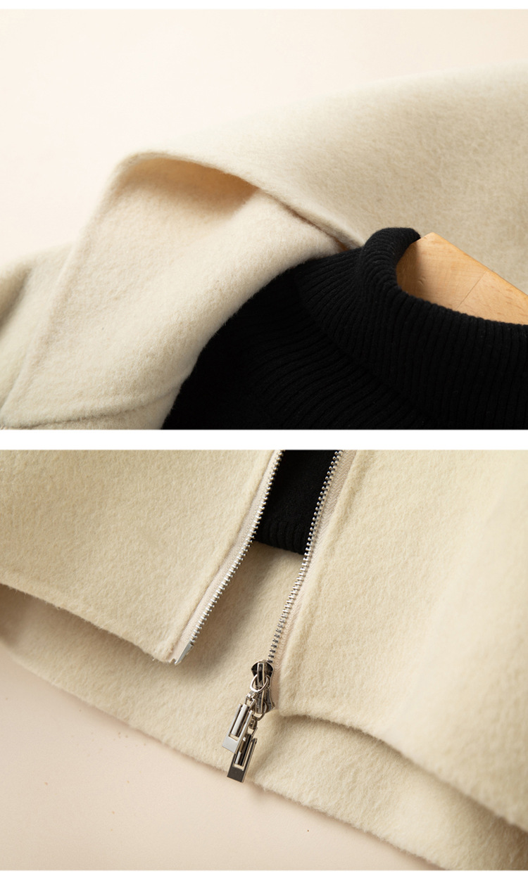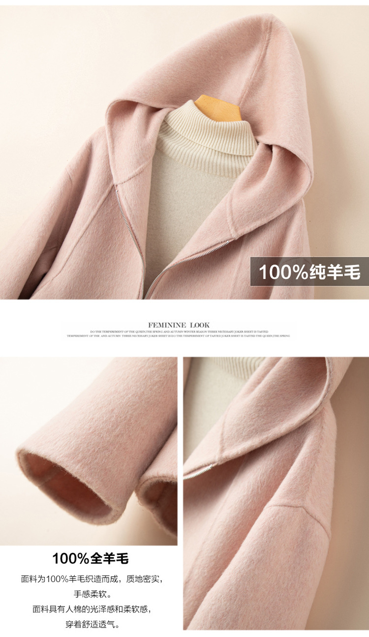 새로운 도착 작은 양면 울 코트 여성 짧은 후드 클래식 지퍼 캐주얼 심플 재킷