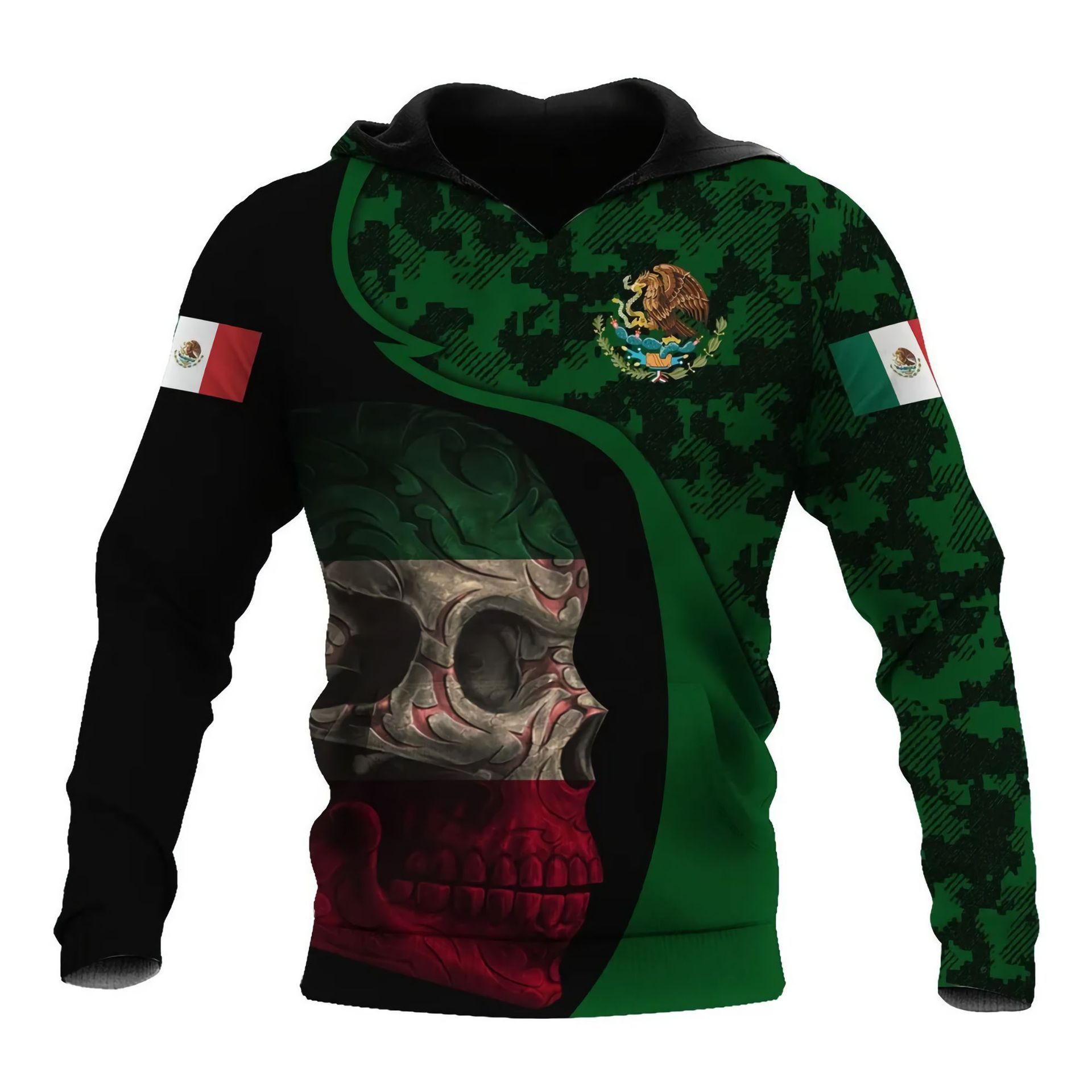 2025 국경 간 유럽과 미국 남성 캐주얼 패션 후드 티셔츠 멕시코 패턴 3D 디지털 인쇄 스웨트 셔츠