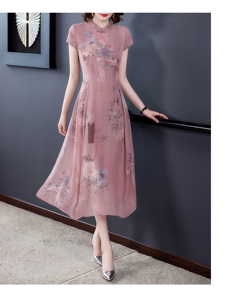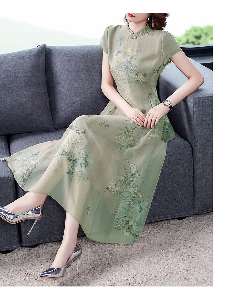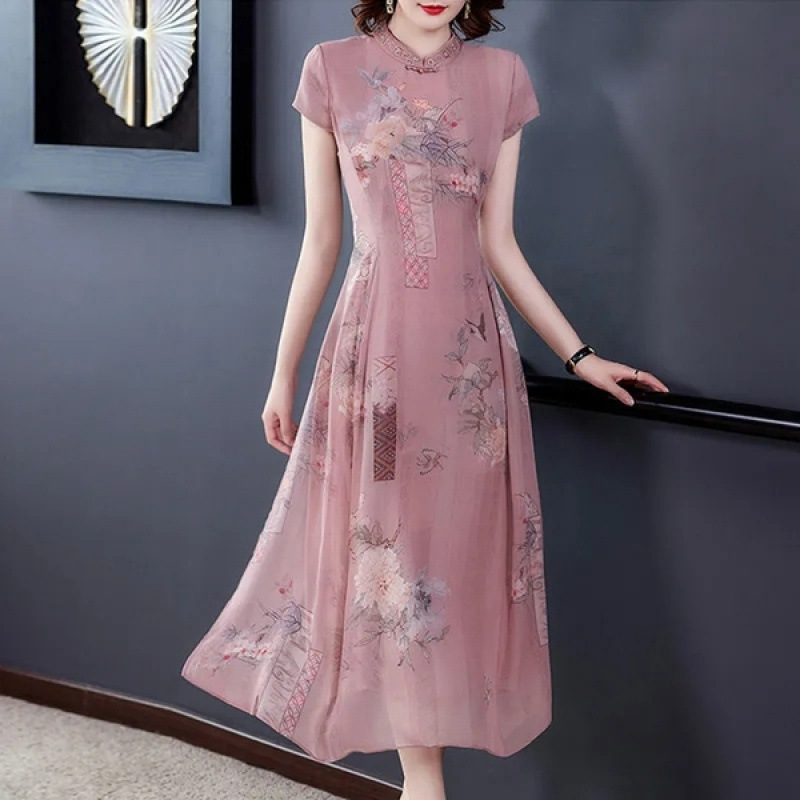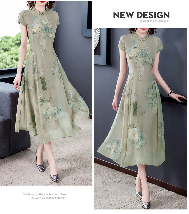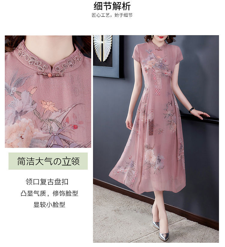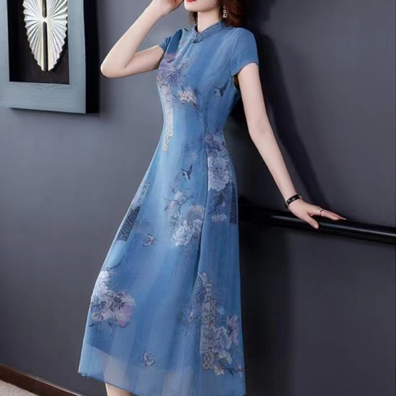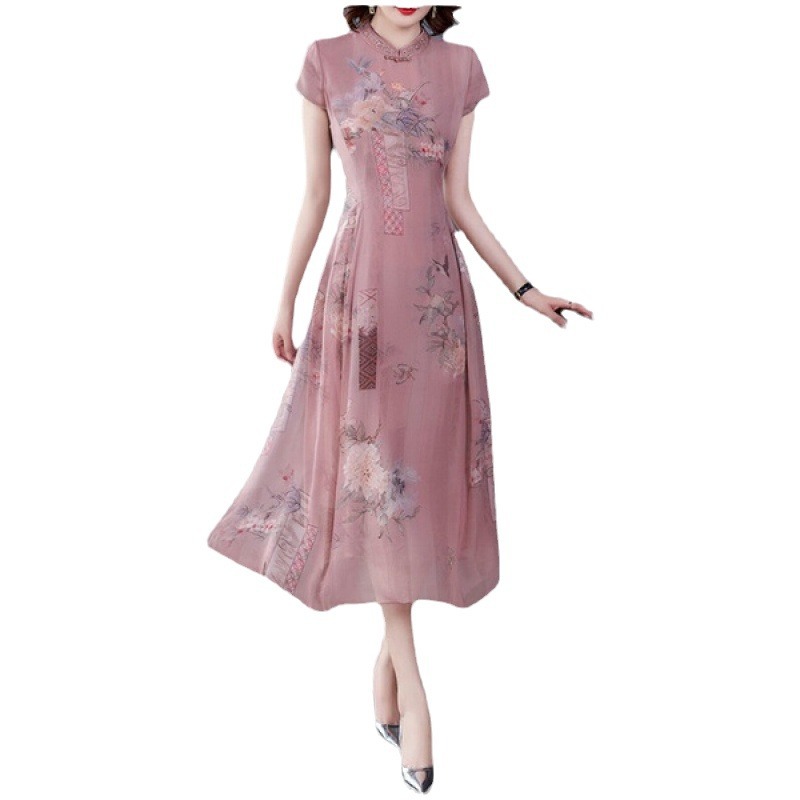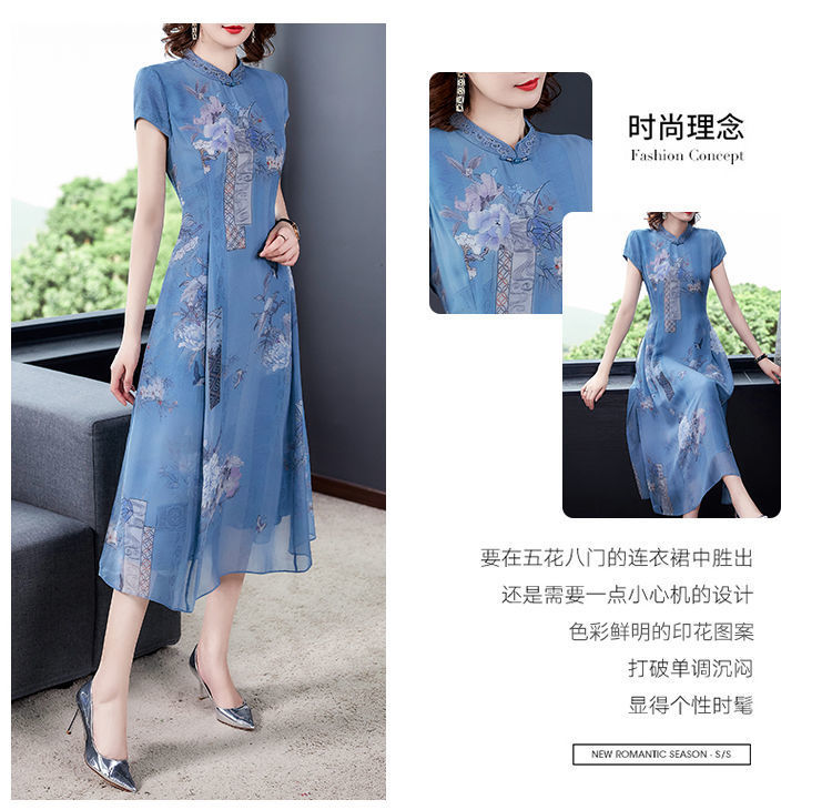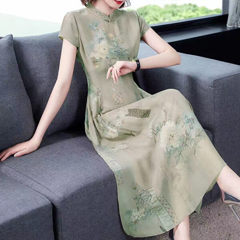 여성을위한 하이 엔드 개선 된 치파오 드레스 2025 여름 슬림 피트 스커트 새로운 중국 스타일 반팔 스커트 유행