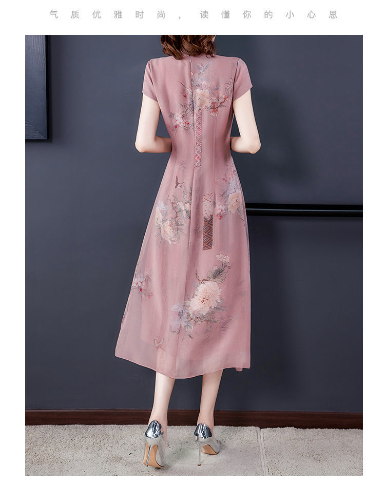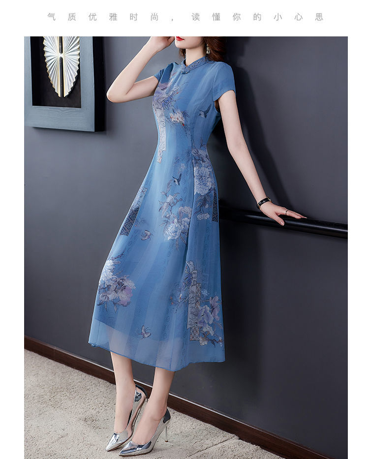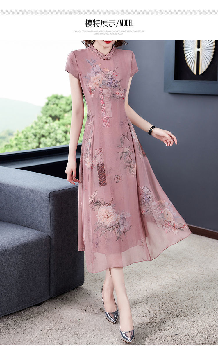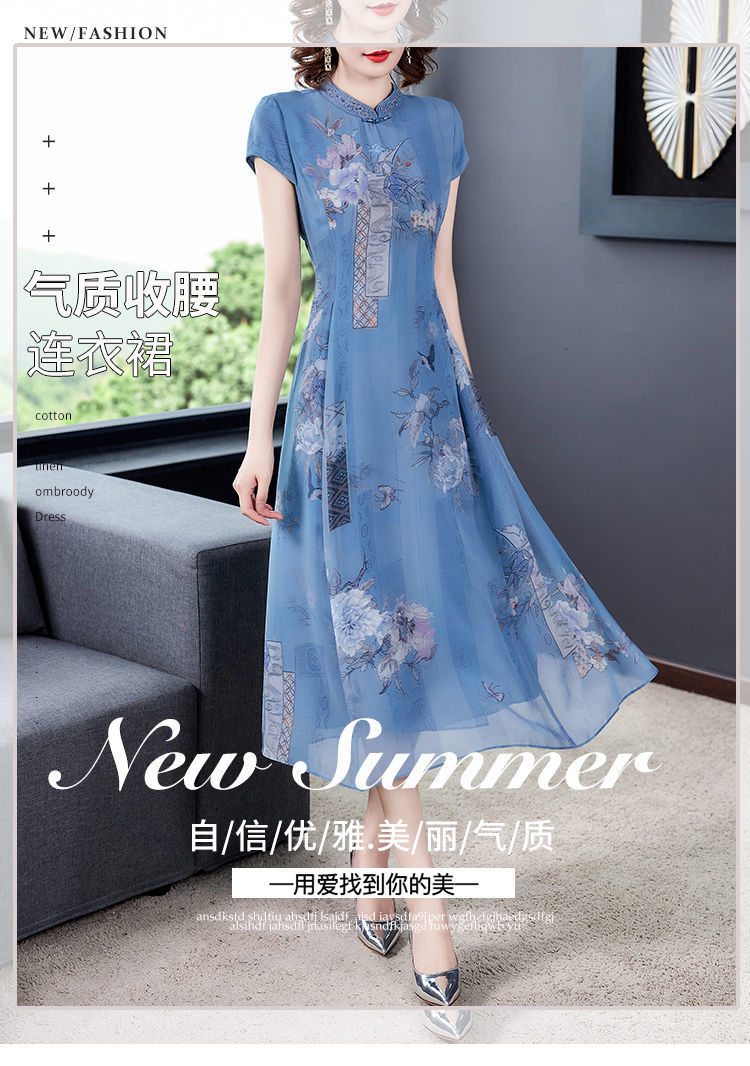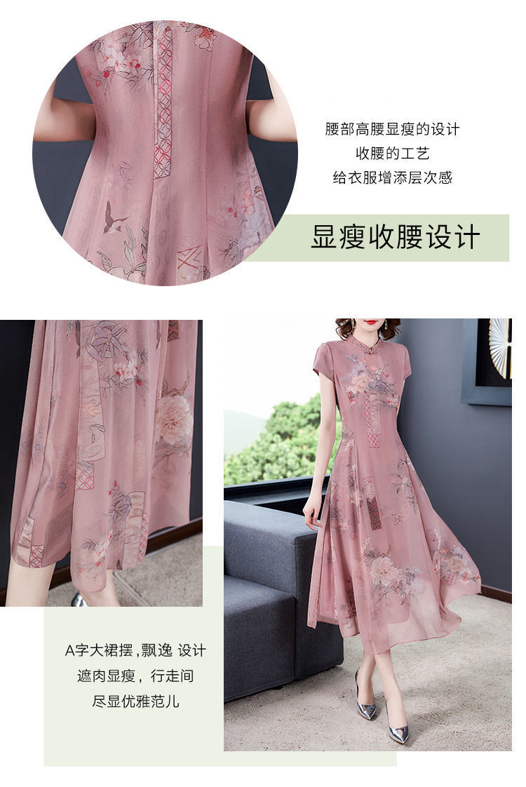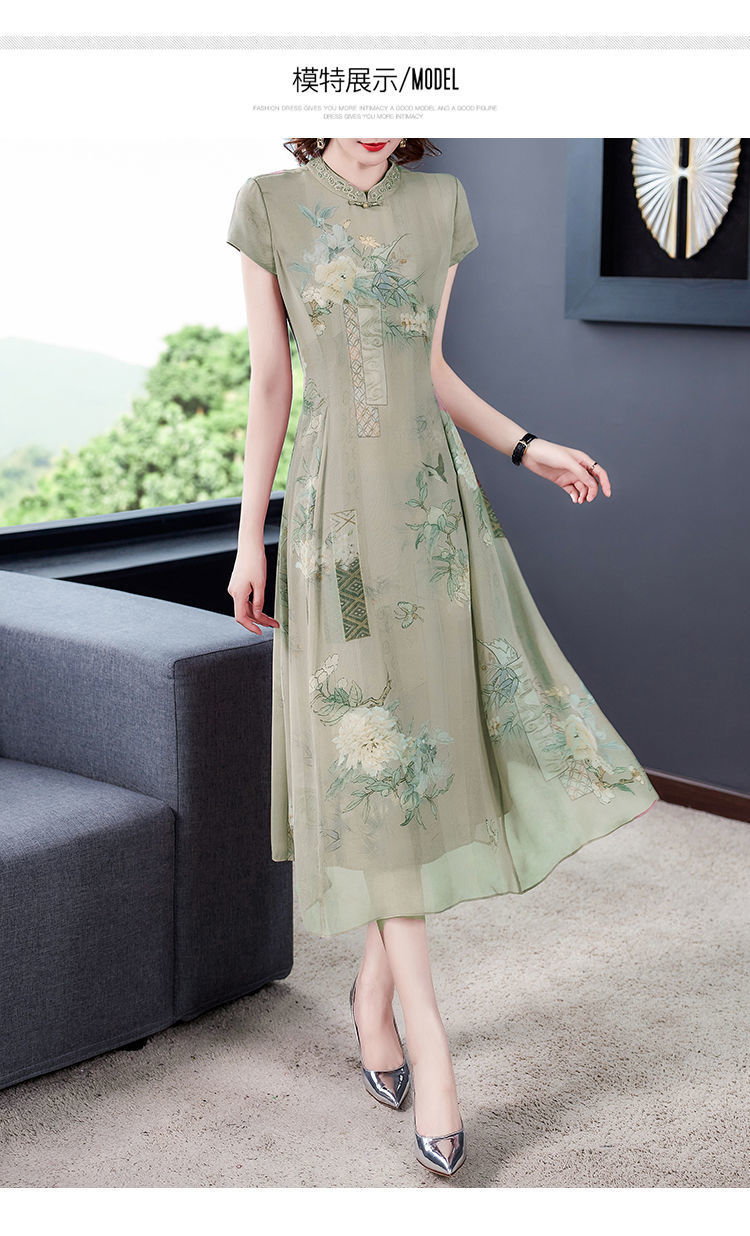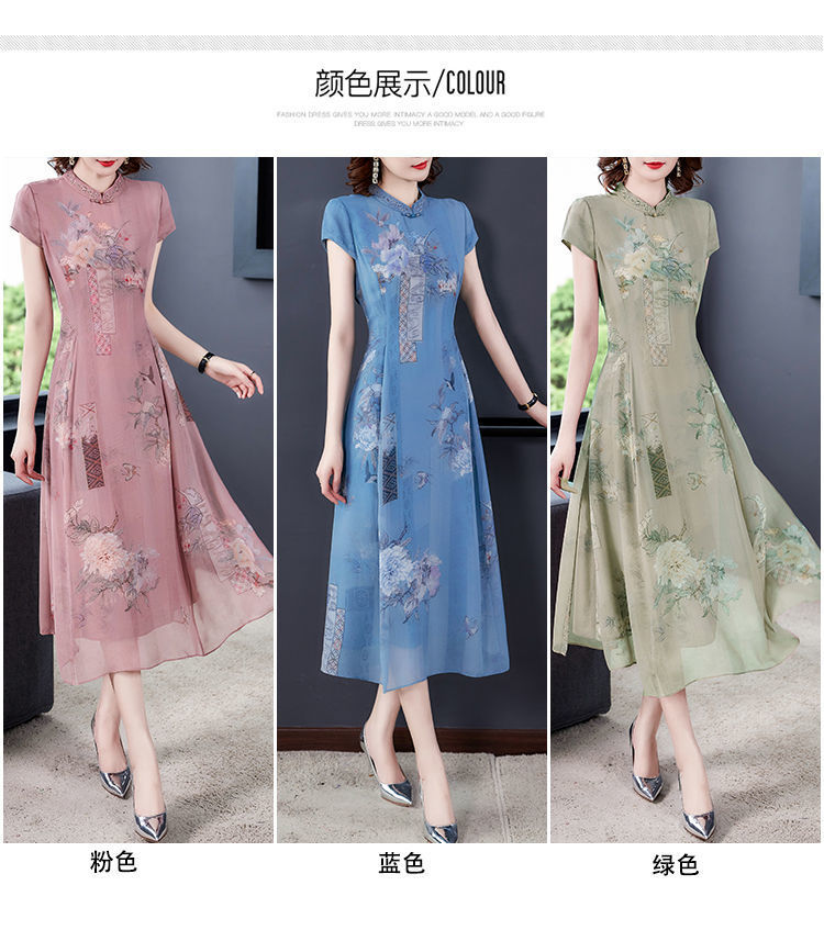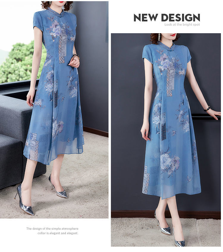여성을위한 하이 엔드 개선 된 치파오 드레스 2025 여름 슬림 피트 스커트 새로운 중국 스타일 반팔 스커트 유행