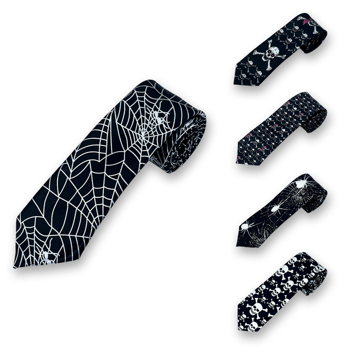 국경 간 TEMU AliExpress 5cm 할로윈 해골 스파이더 웹 장식 넥타이, 유령 축제 의상