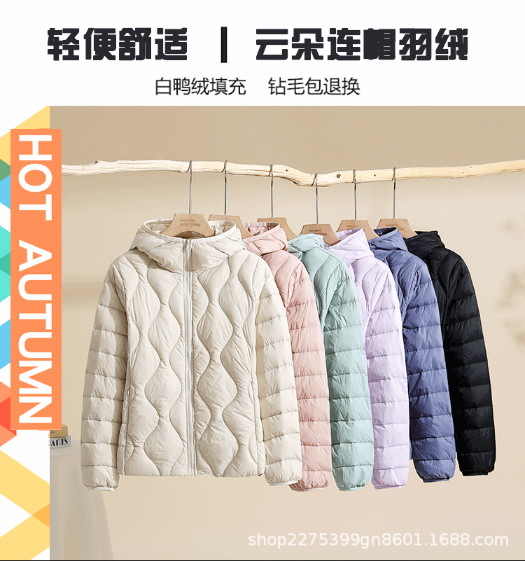 2024 가을/겨울 새로운 빛과 얇은 여성 다운 재킷 후드 화이트 오리 빛 따뜻한 얇은 플러스 사이즈 재킷 한 차오