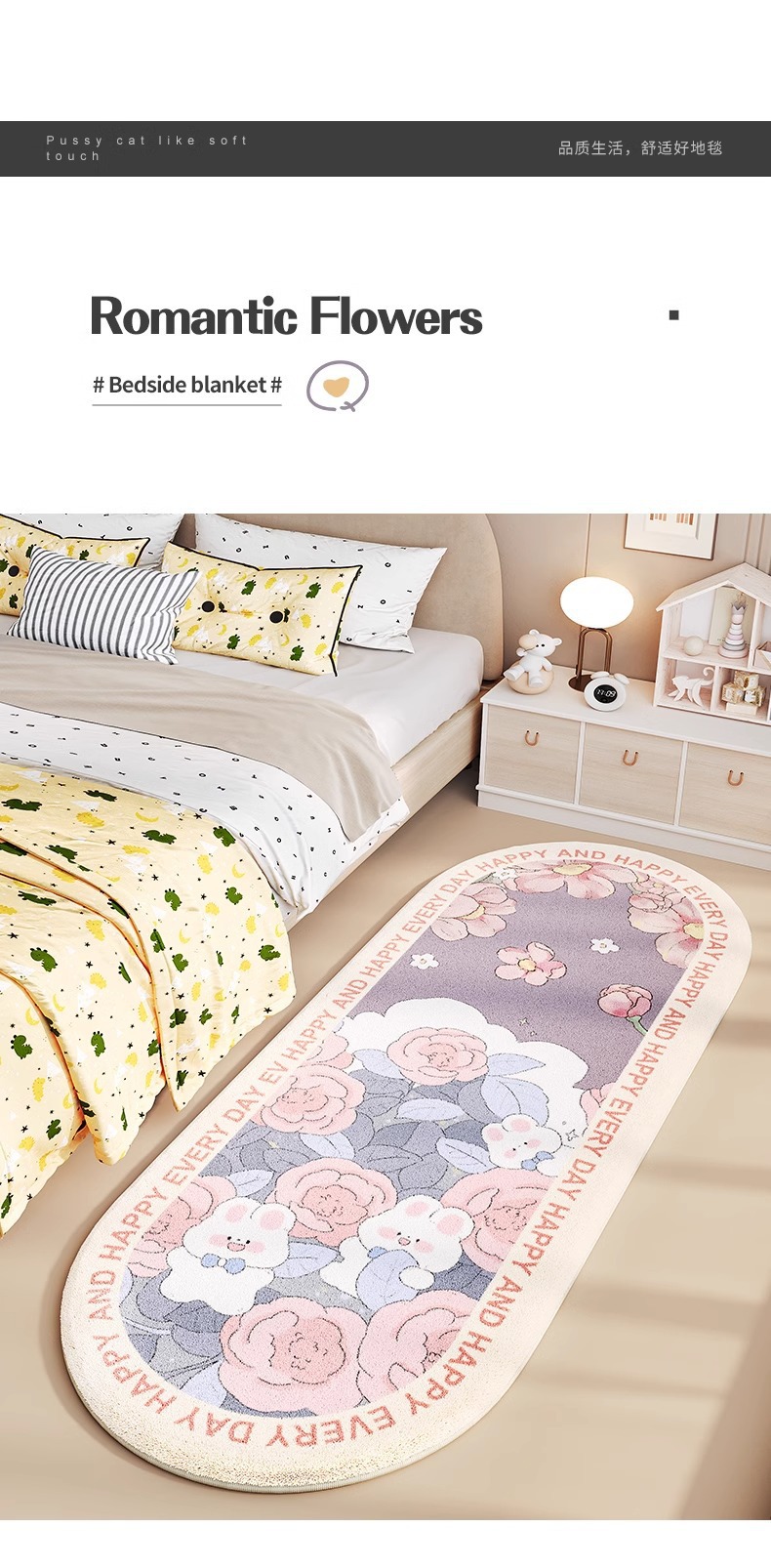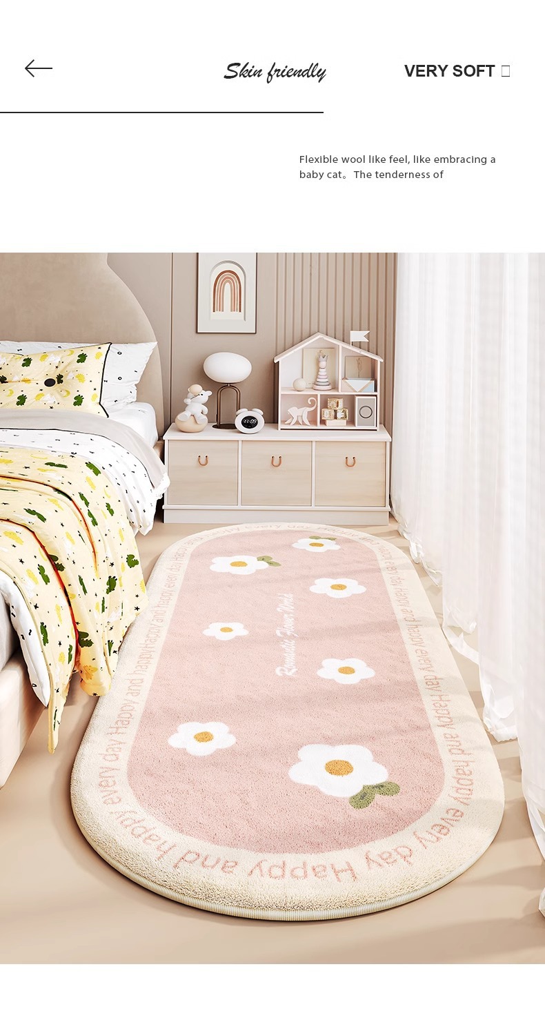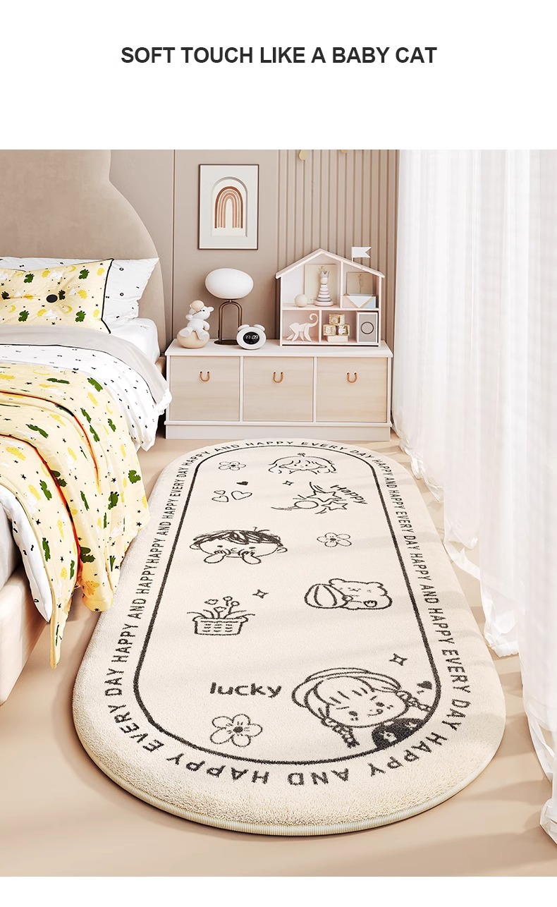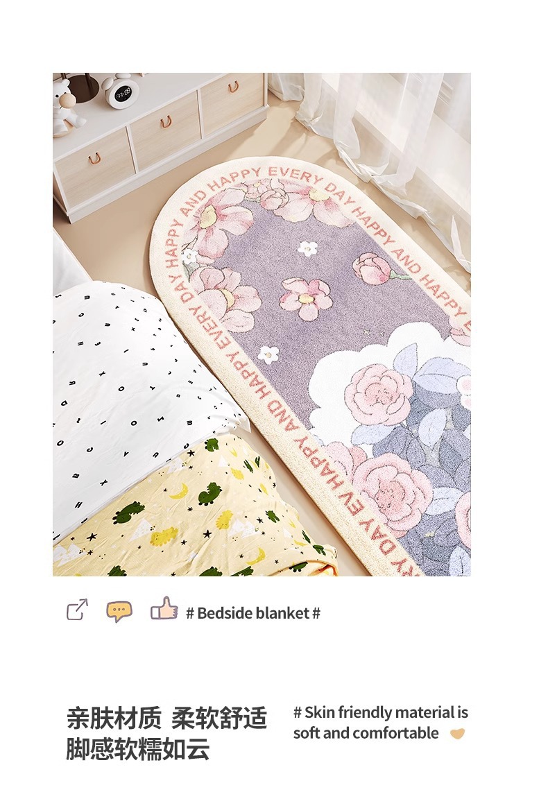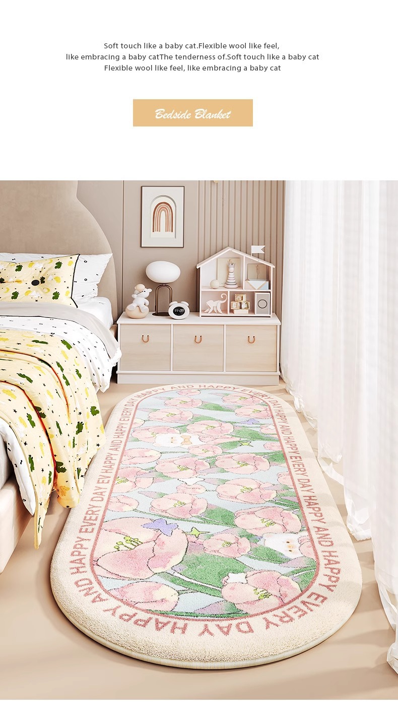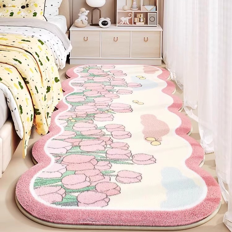 어린이 침대 옆 카펫 소녀 침실 공주 스타일 침대 옆 침대 끝 발 매트 아래 침대 베이 창 타원형 미끄럼 방지 매트