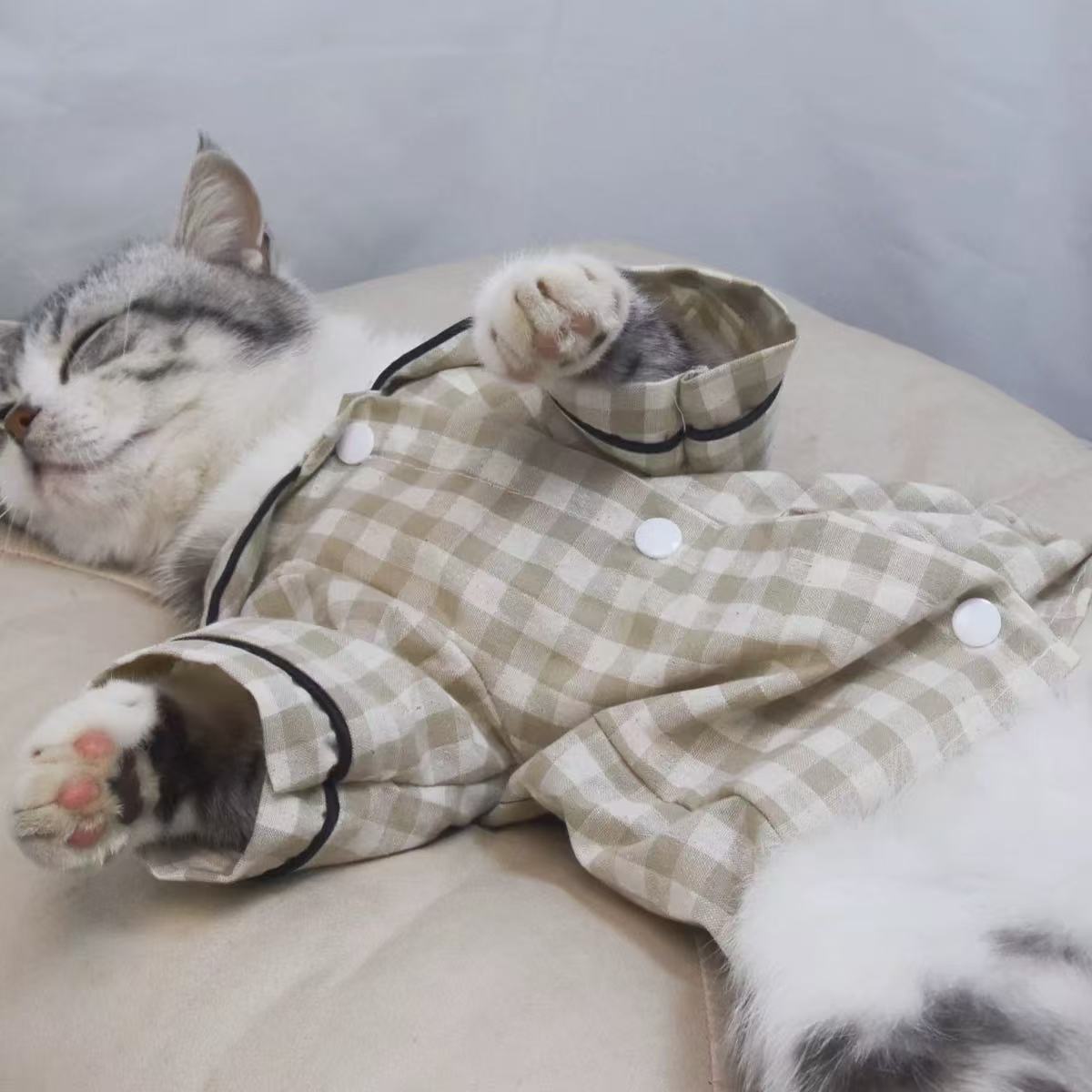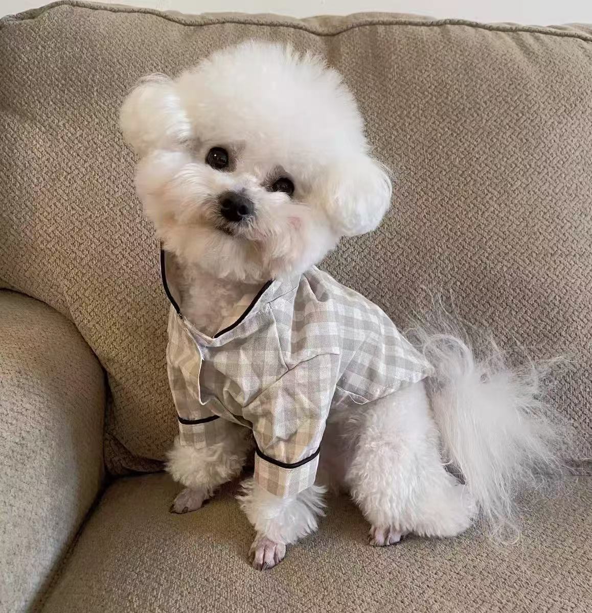 애완 동물 고양이와 개 여름 2 색 격자 무늬 작은 셔츠 고양이 INS 스타일 홈 잠옷 애완 동물 비숑 옷