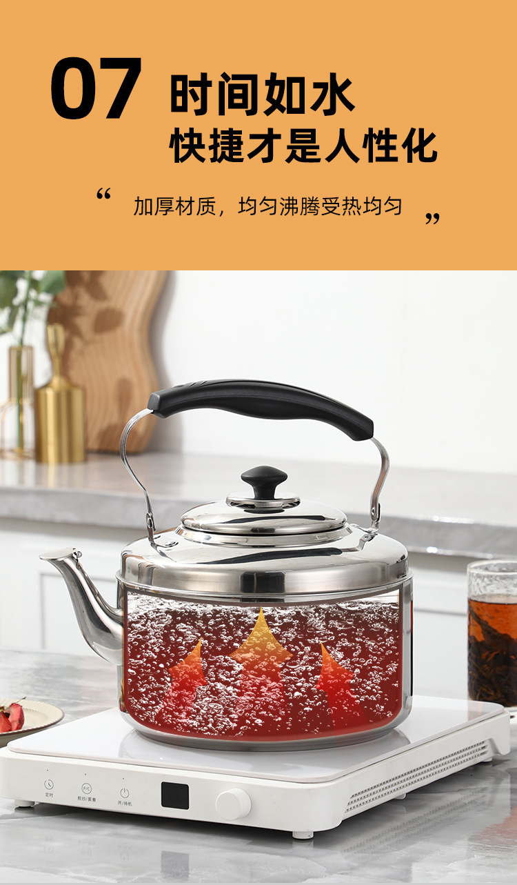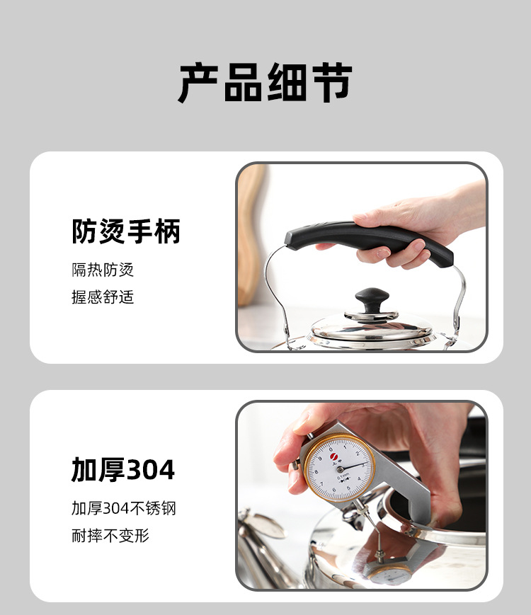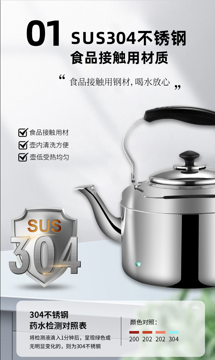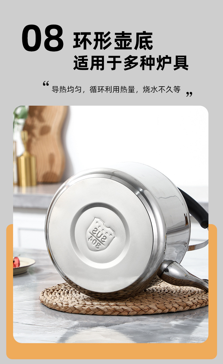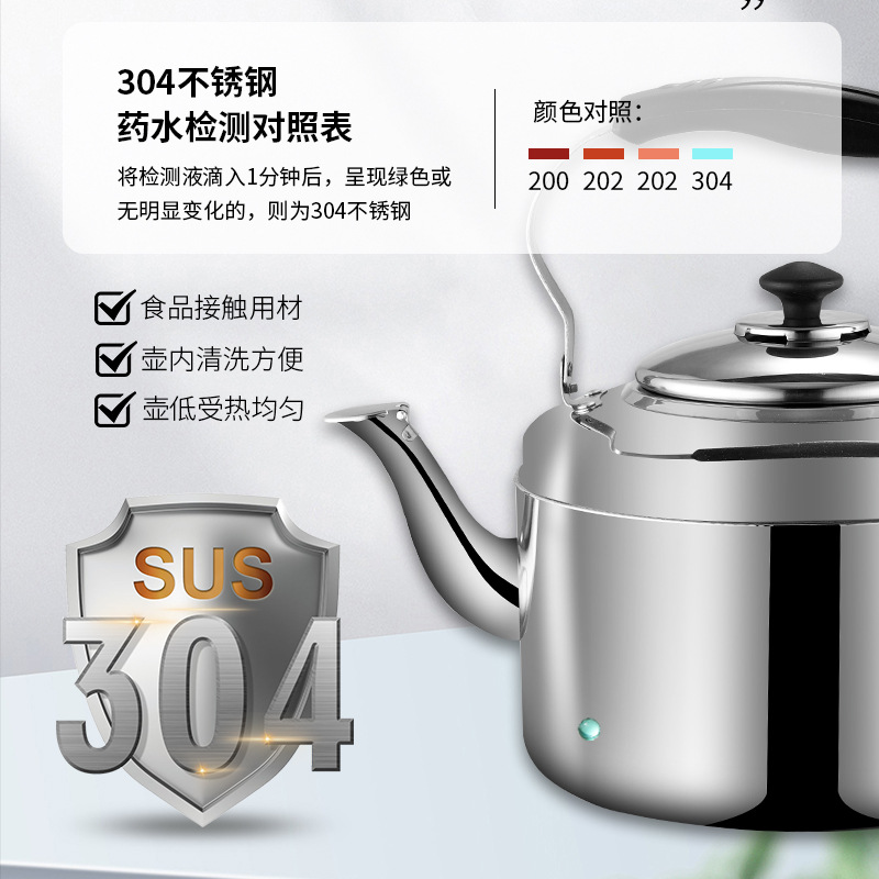 304 스테인리스 스틸 휘슬형 주전자, 대용량, 가스레인지, 전기레인지, 전자레인지 모두 사용 가능, 두꺼운 재질, 고음경적 소리