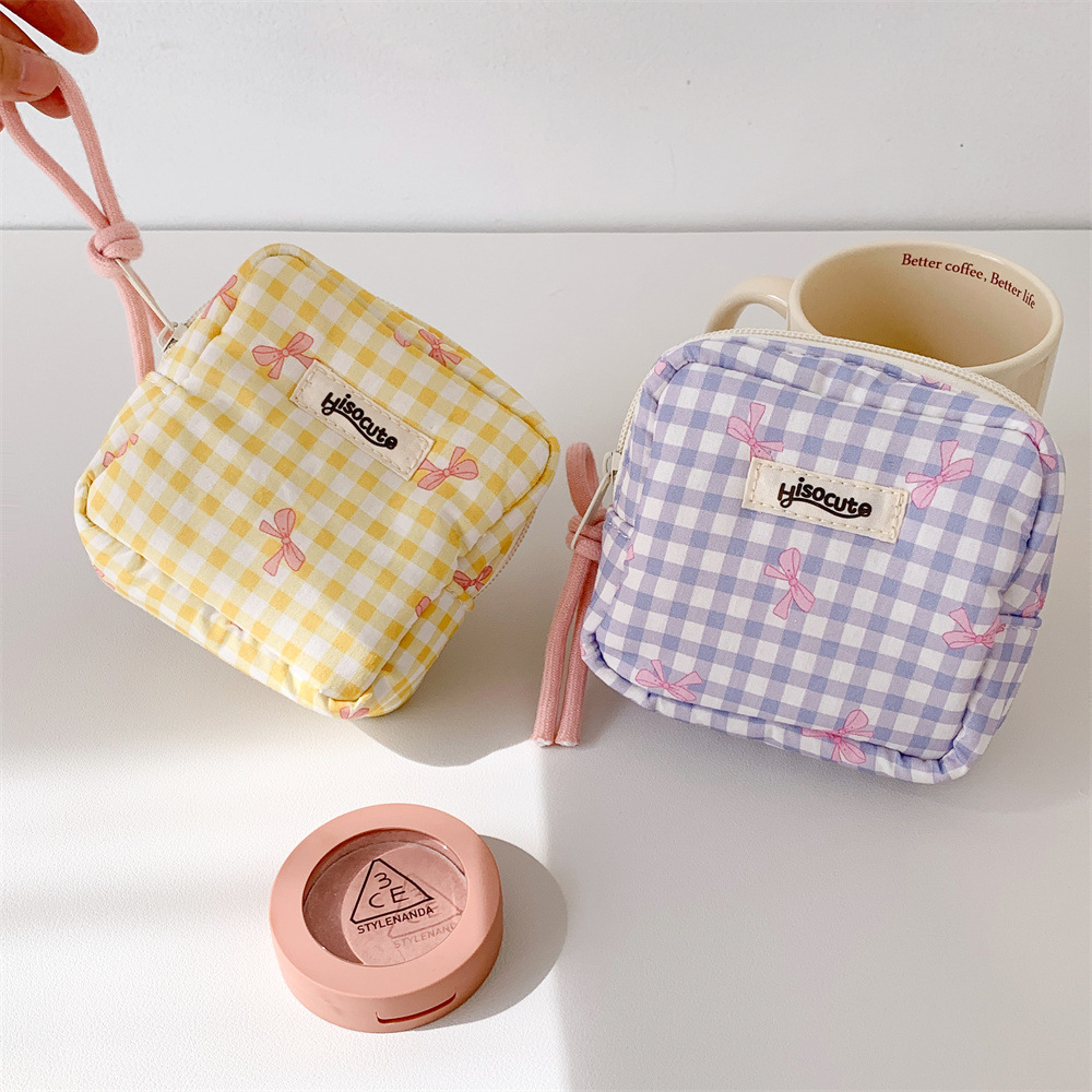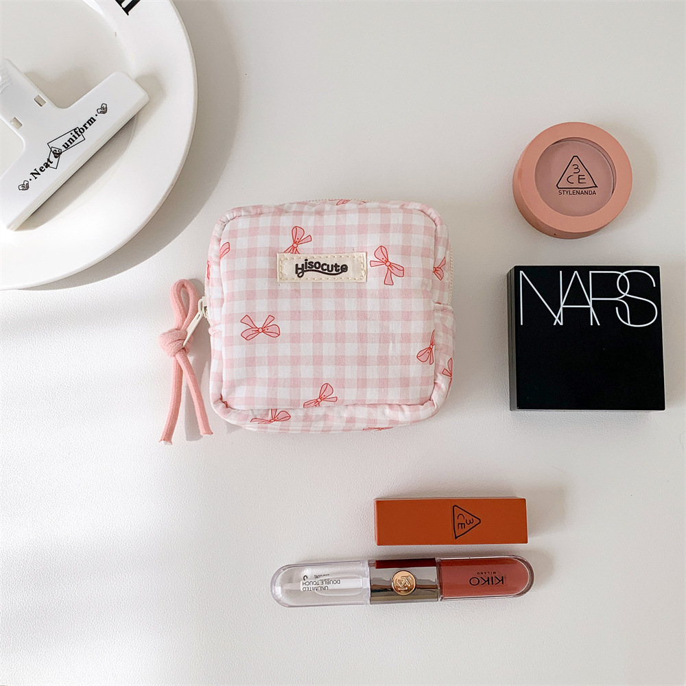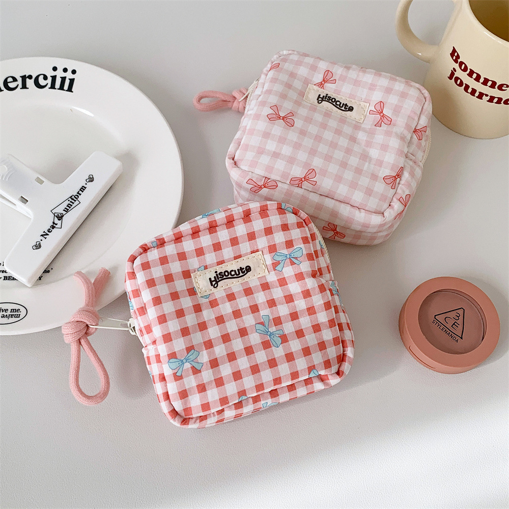 한국 스타일 작은 격자 무늬 화장품 가방 간단한 광장 블루투스 헤드셋 가방 빨간 가방 소녀 화장품 유도 저장 가방