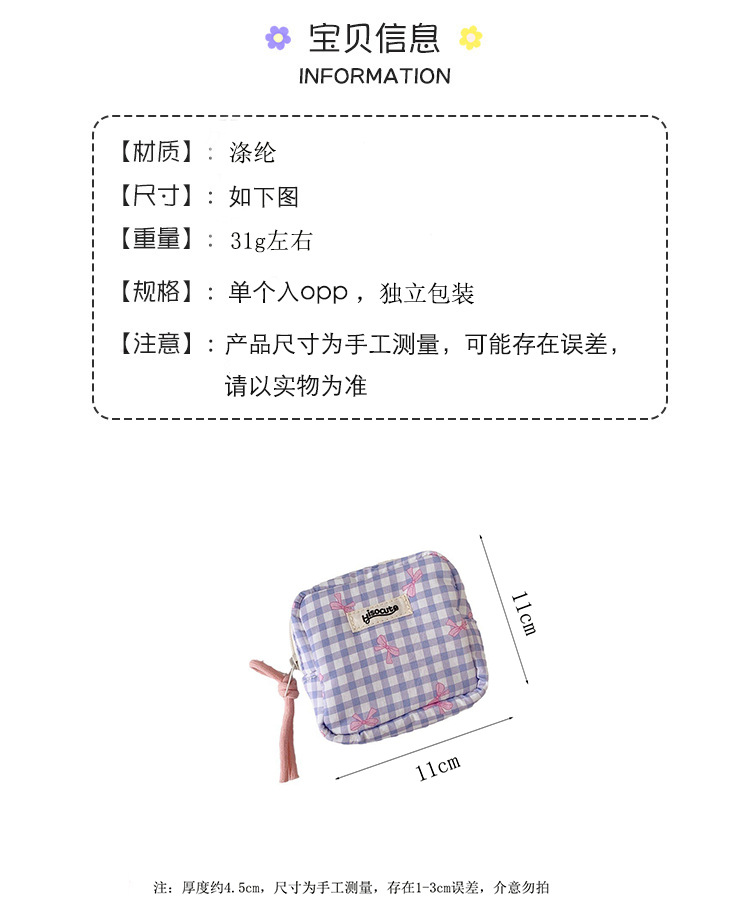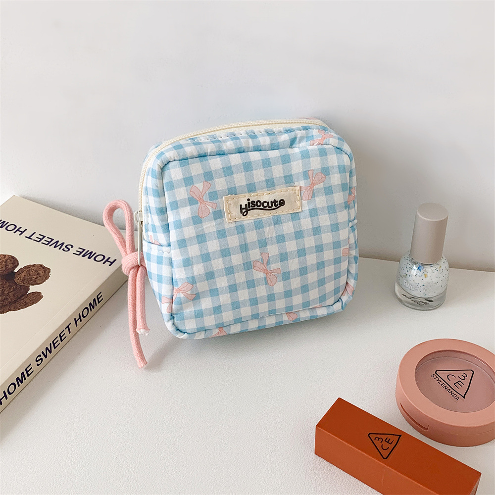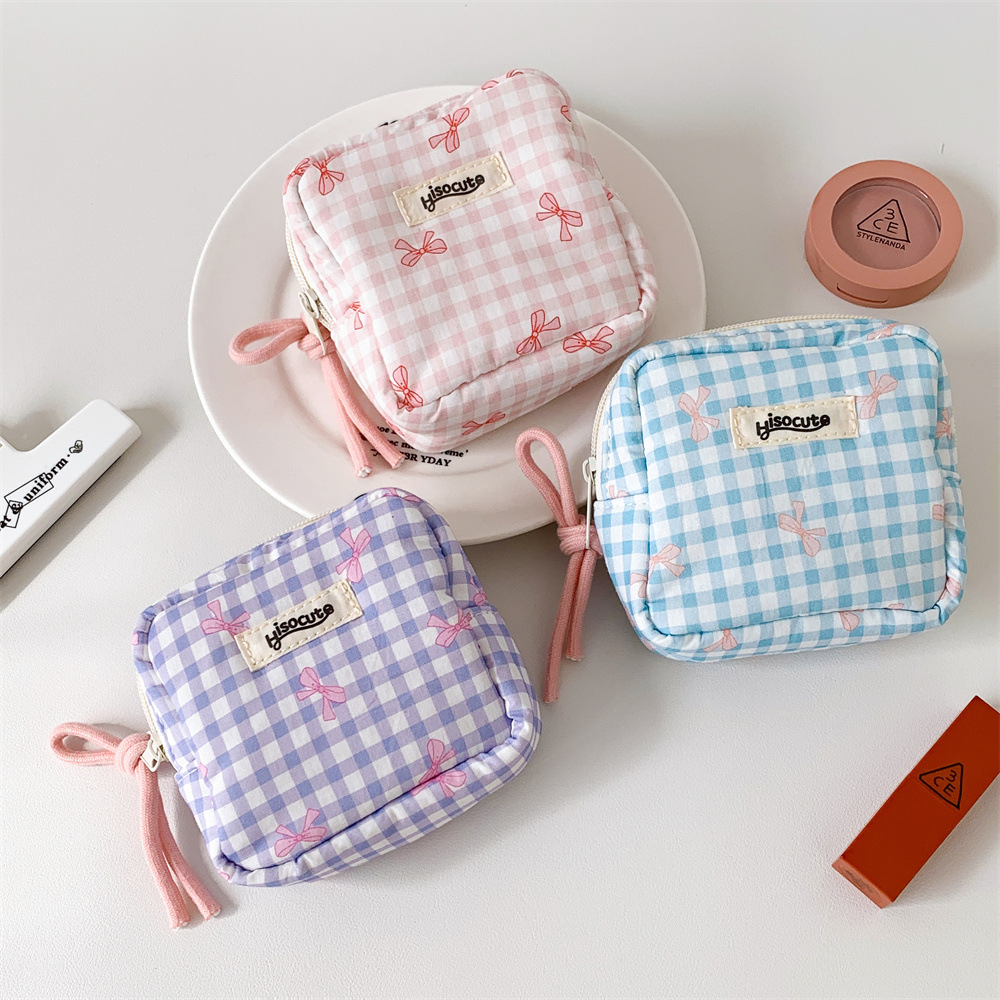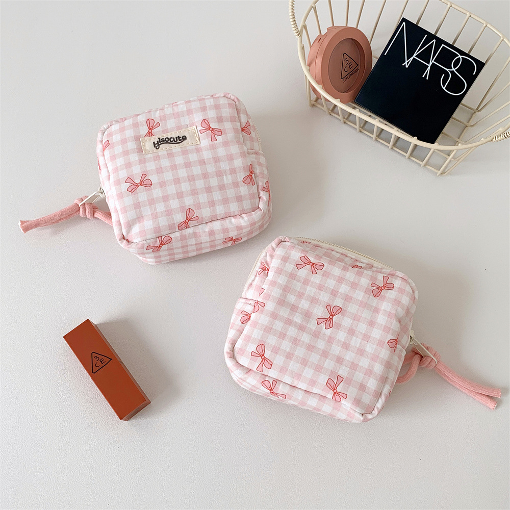 한국 스타일 작은 격자 무늬 화장품 가방 간단한 광장 블루투스 헤드셋 가방 빨간 가방 소녀 화장품 유도 저장 가방