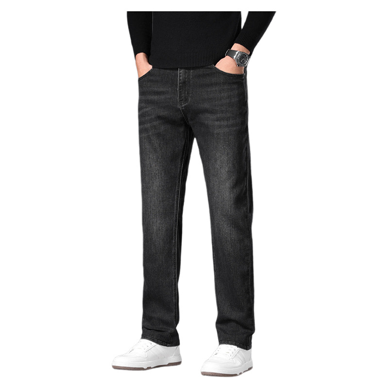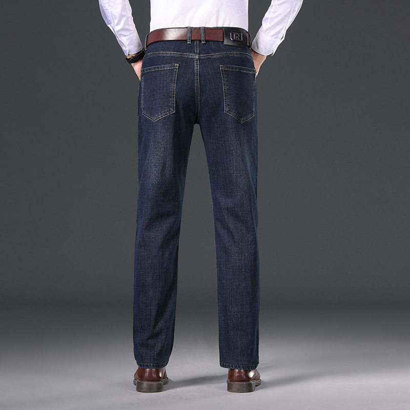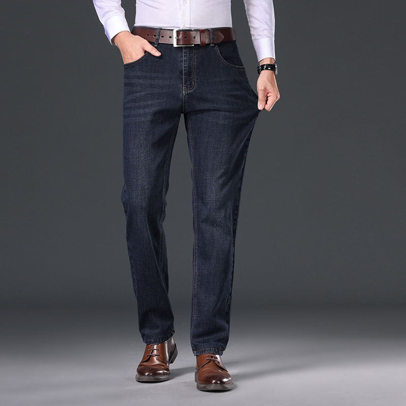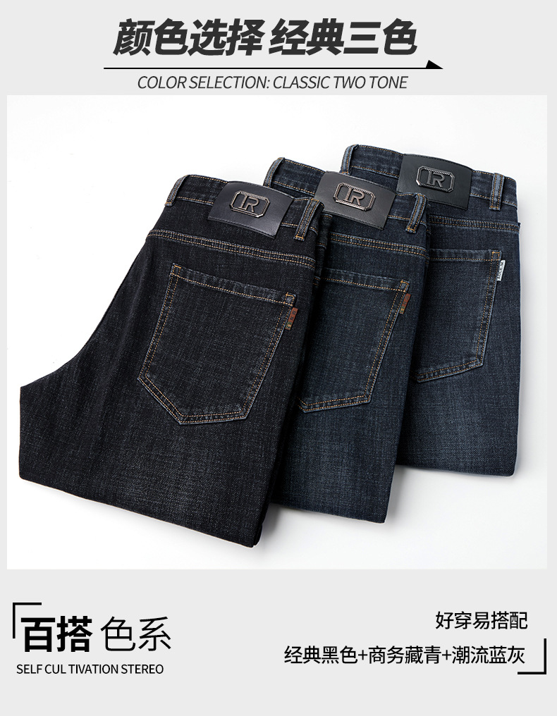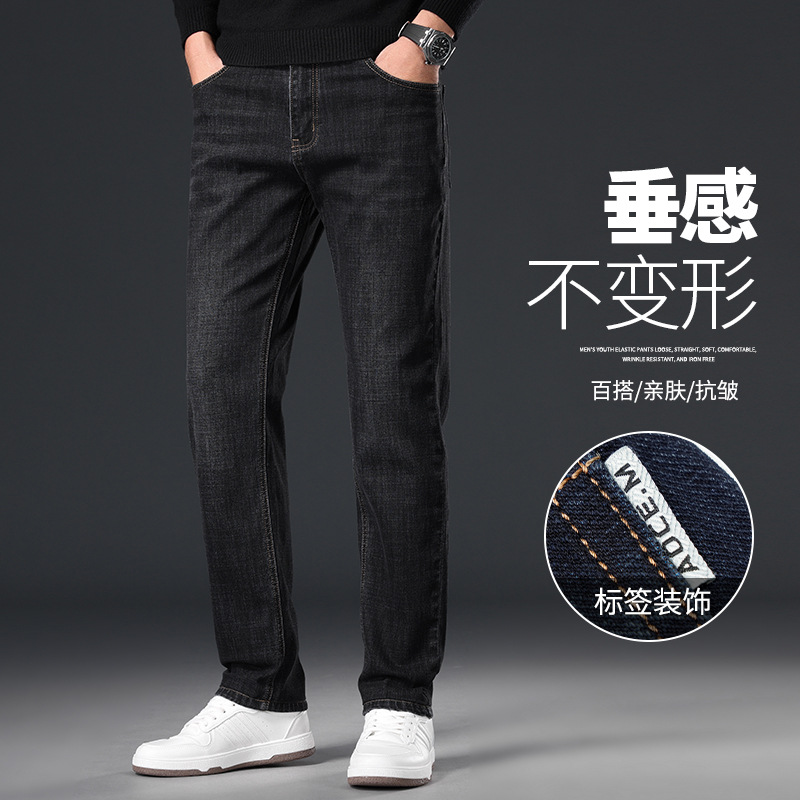 2024 년 가을 남성 비즈니스 청바지 중년 하이 허리 스트레이트 재고 전체 조명 비즈니스 기본 마이크로 탄성 바지