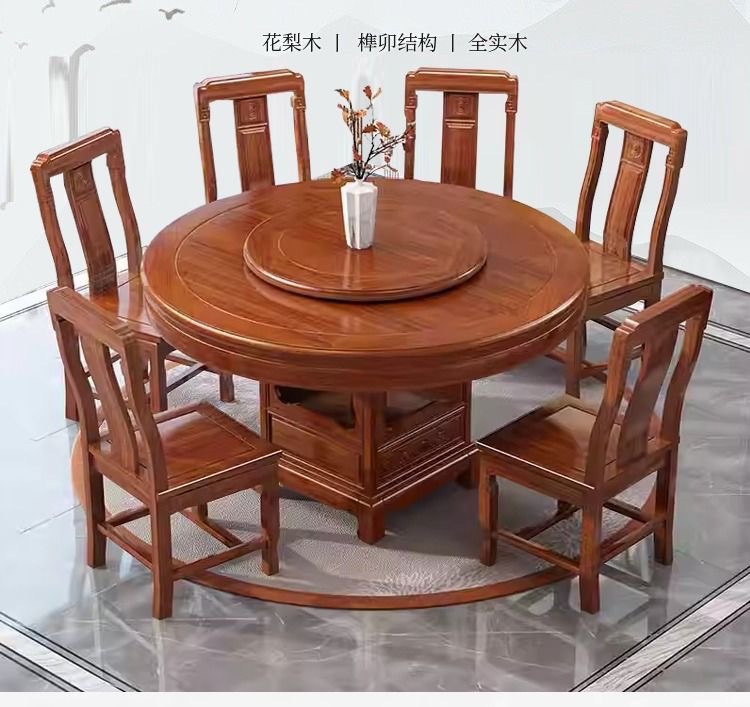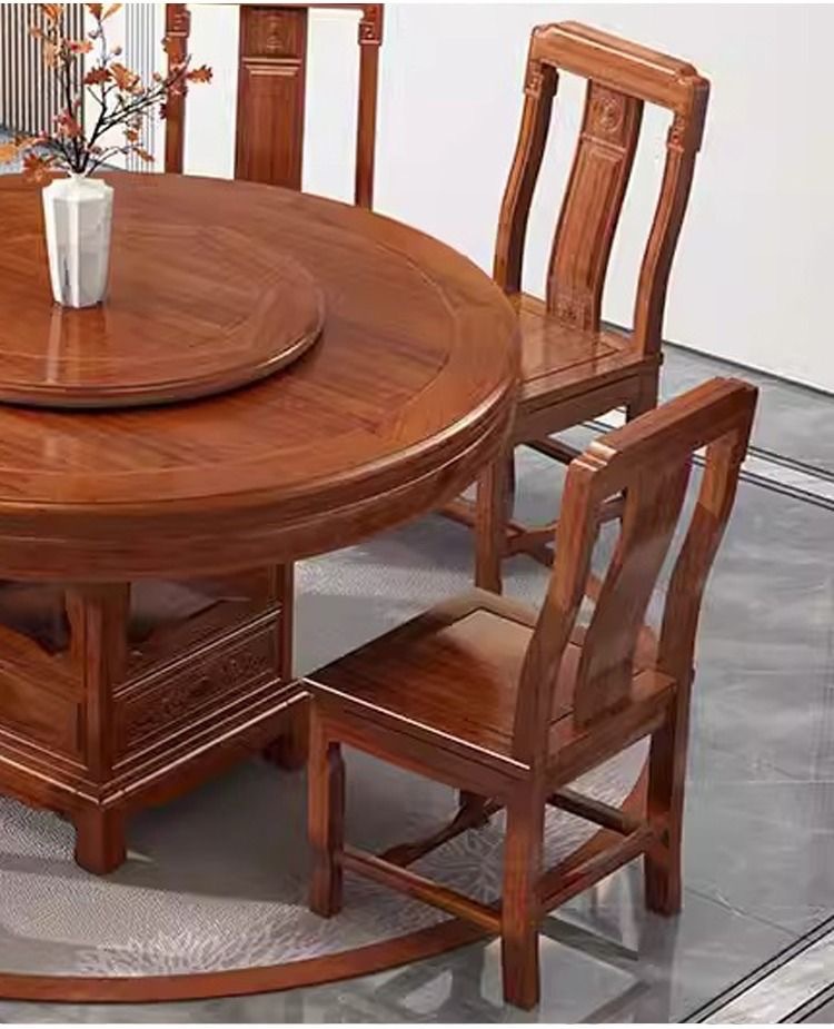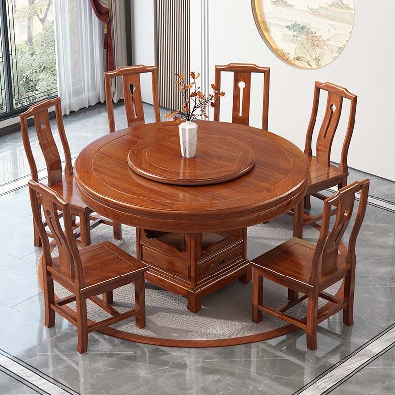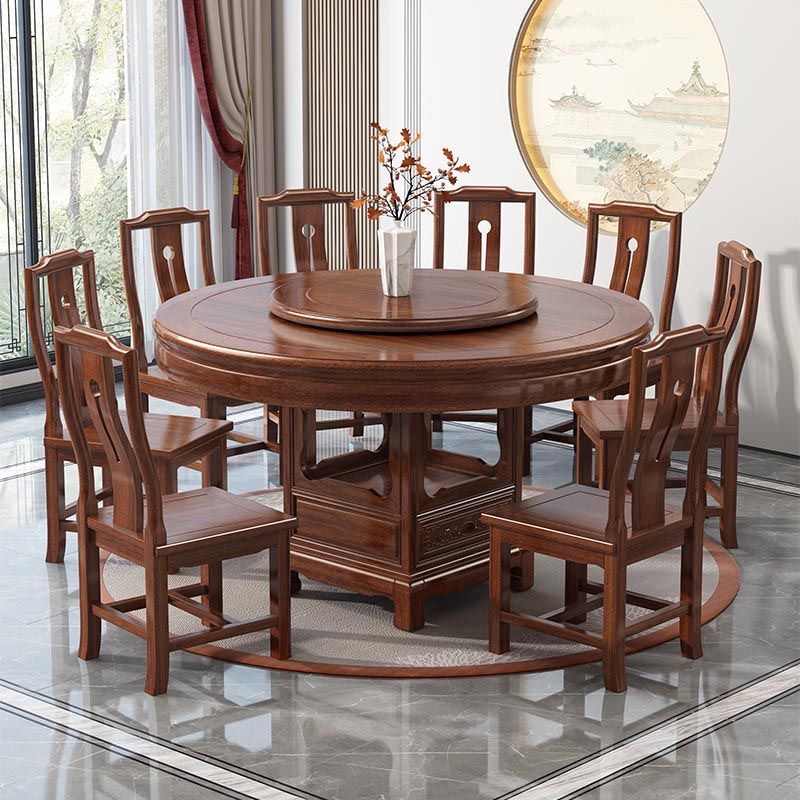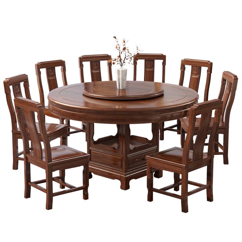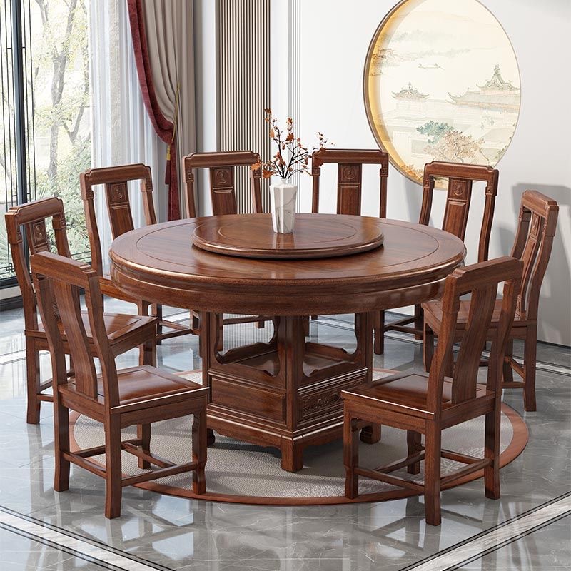 로즈 우드 모든 단단한 나무 둥근 식탁 및 의자 조합 골동품 조각 큰 원탁과 턴테이블 간단한 가정용 식탁
