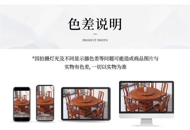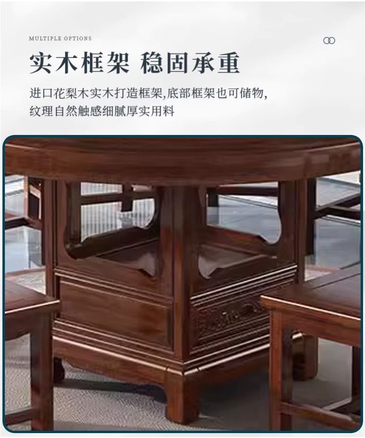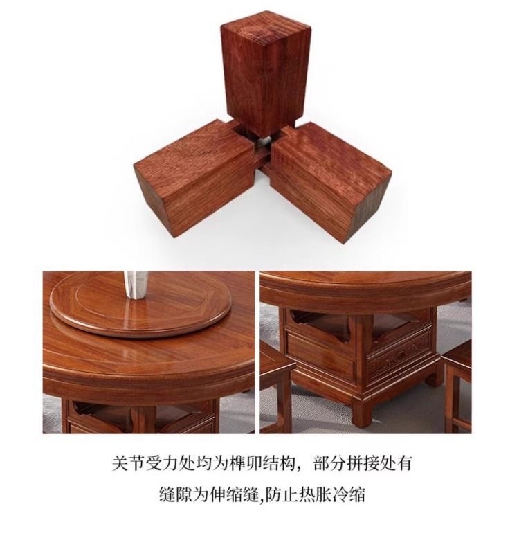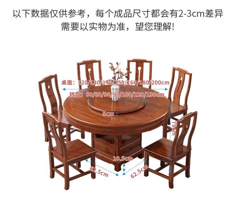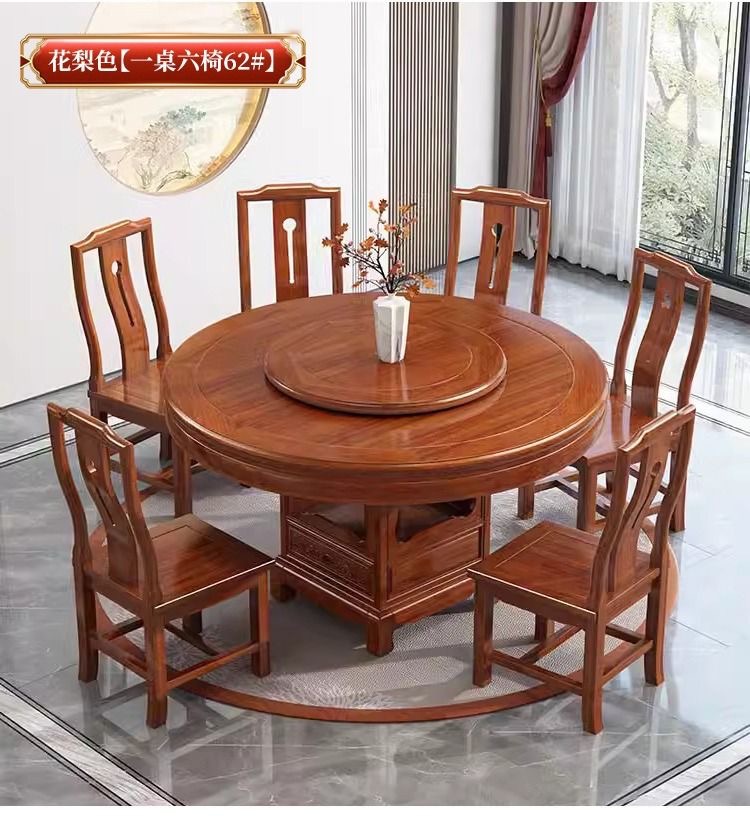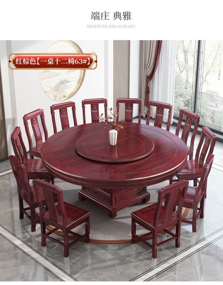 로즈 우드 모든 단단한 나무 둥근 식탁 및 의자 조합 골동품 조각 큰 원탁과 턴테이블 간단한 가정용 식탁