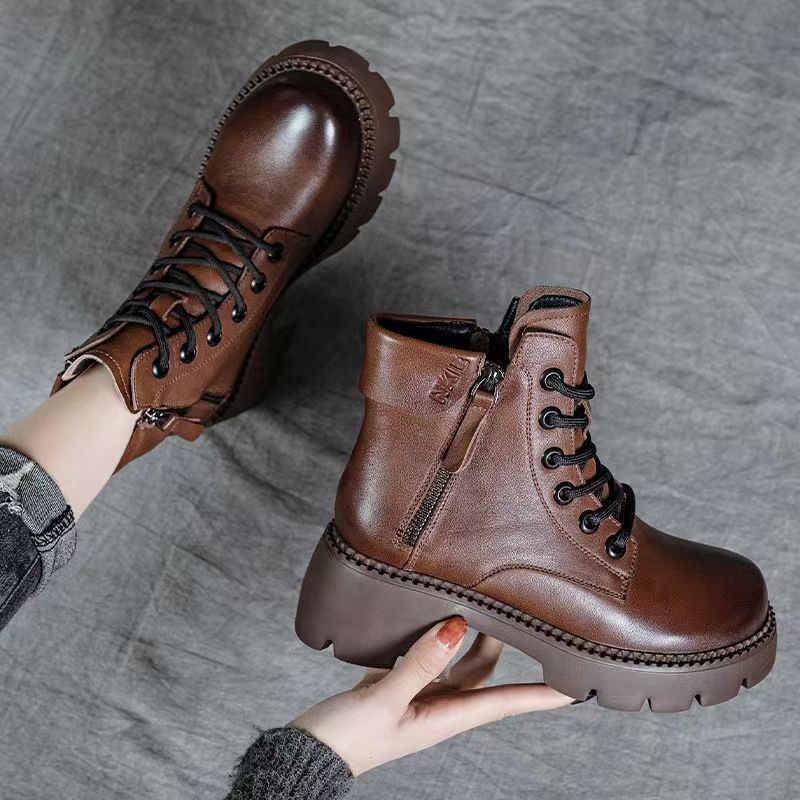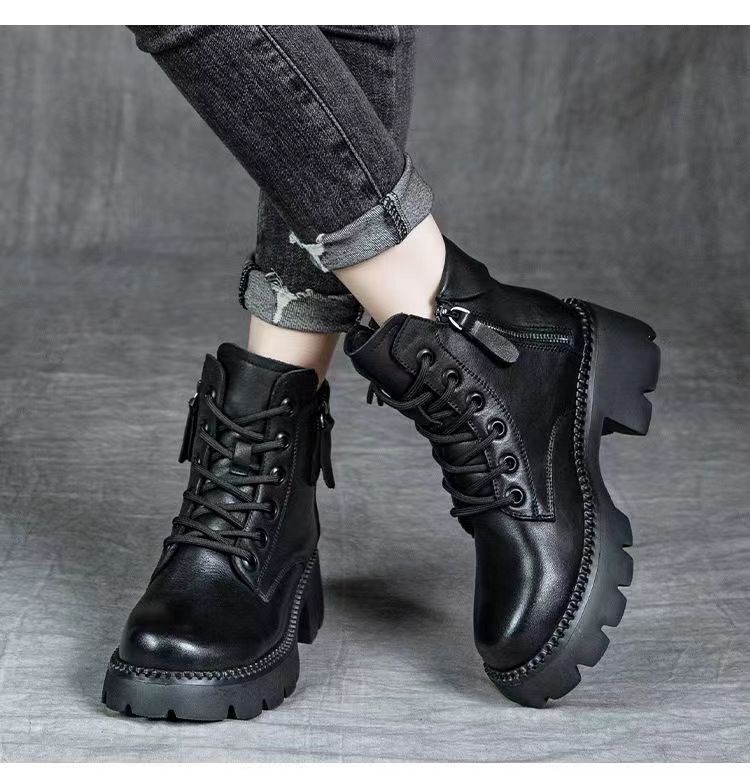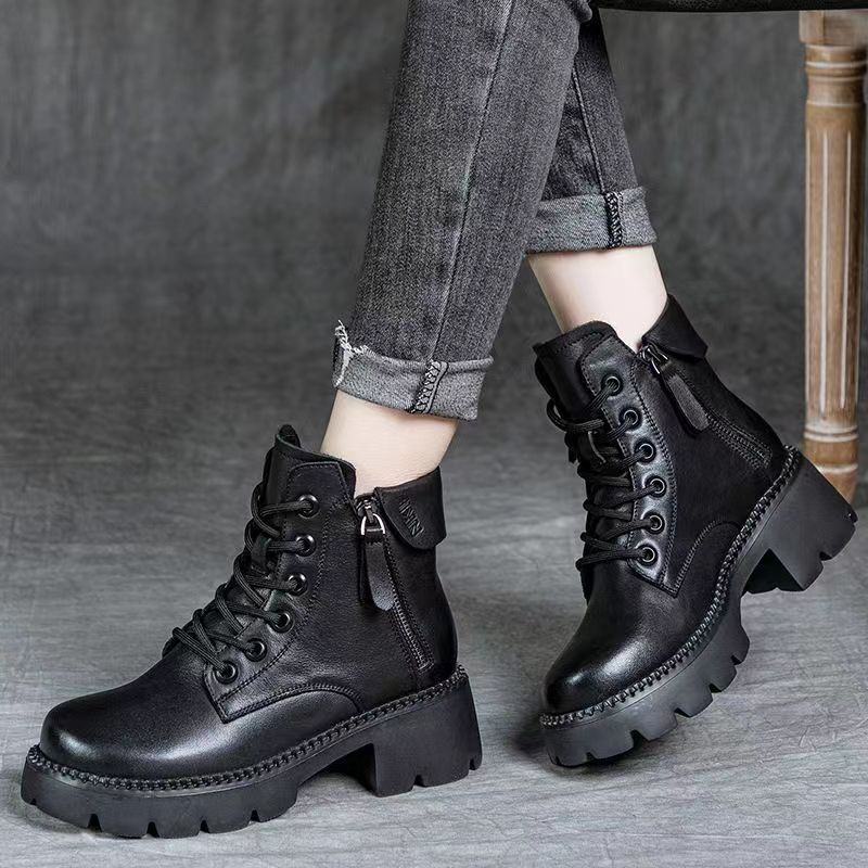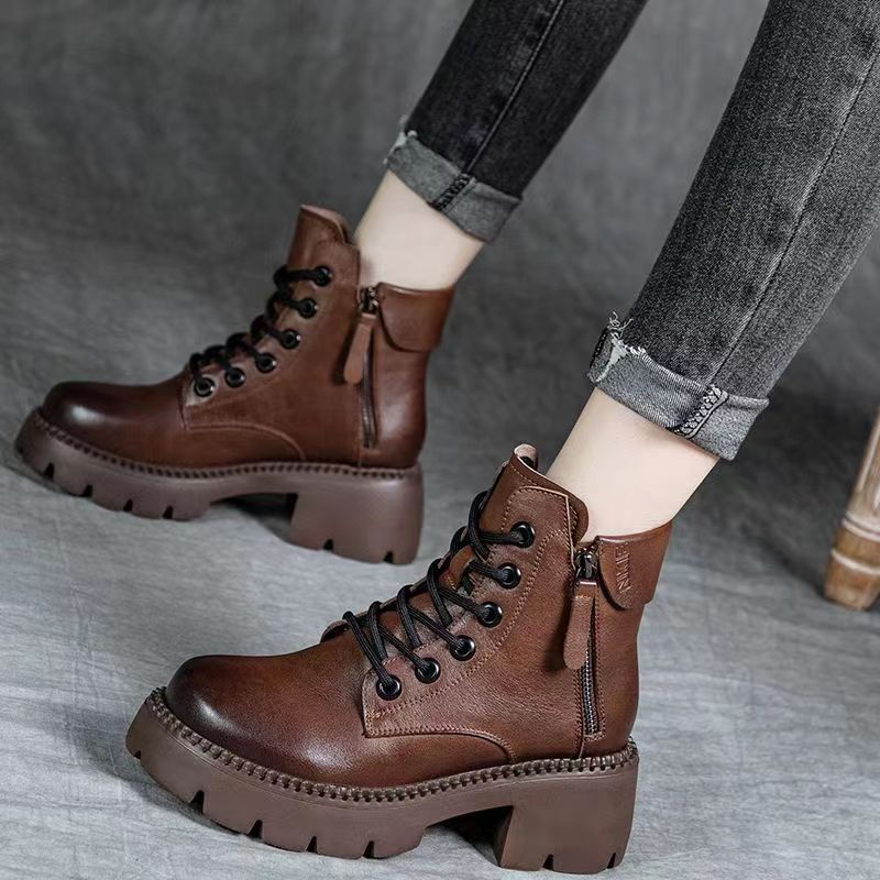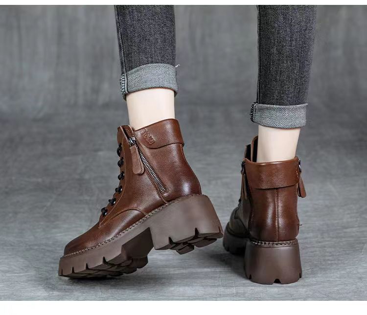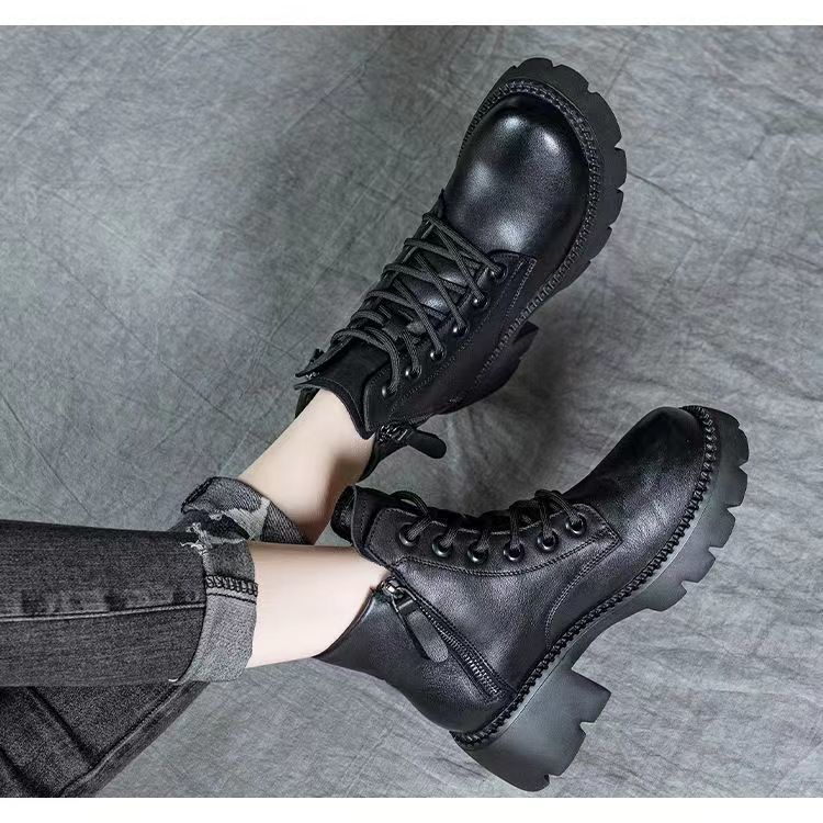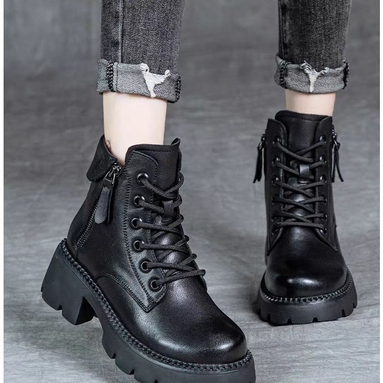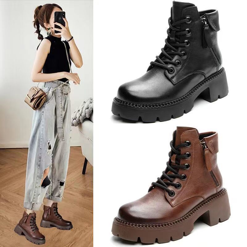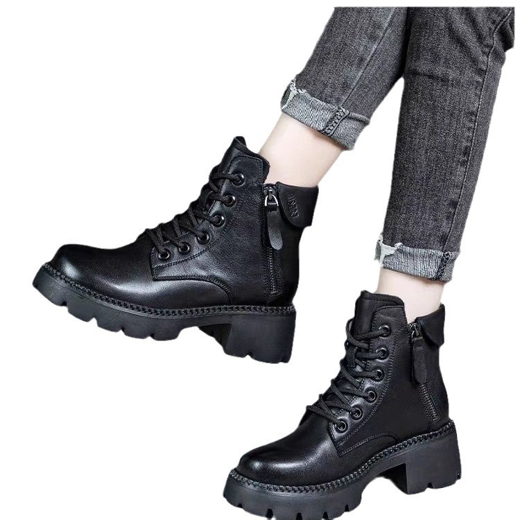 2024 새로운 인터넷 인기있는 가을과 겨울 마틴 부츠 여성 두꺼운 유일한 영국 스타일 짧은 부츠 봄과 가을 얇은 부츠