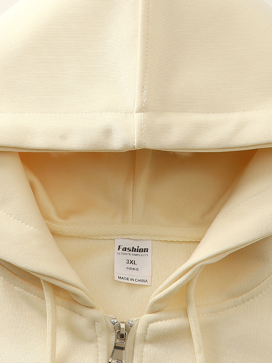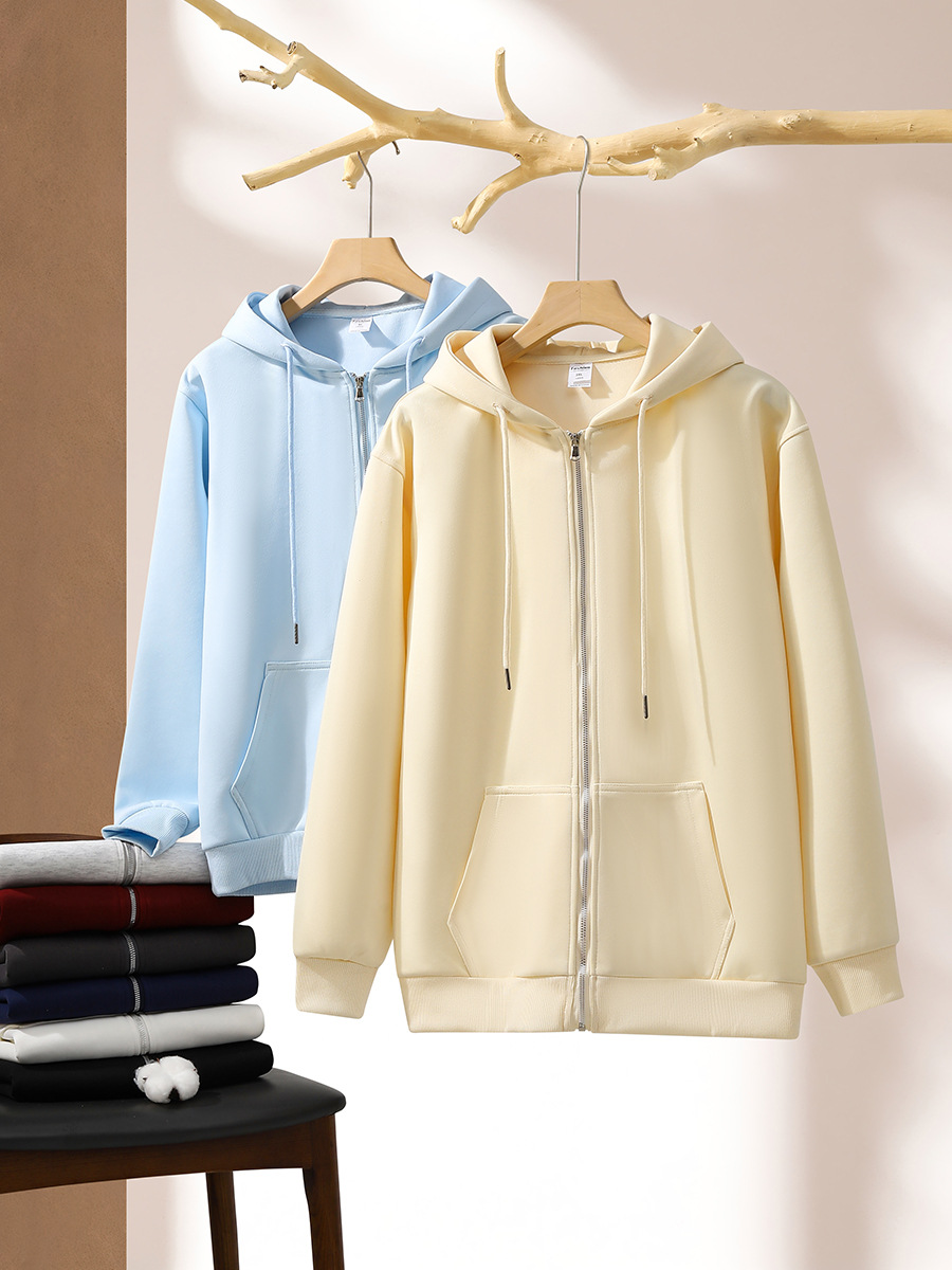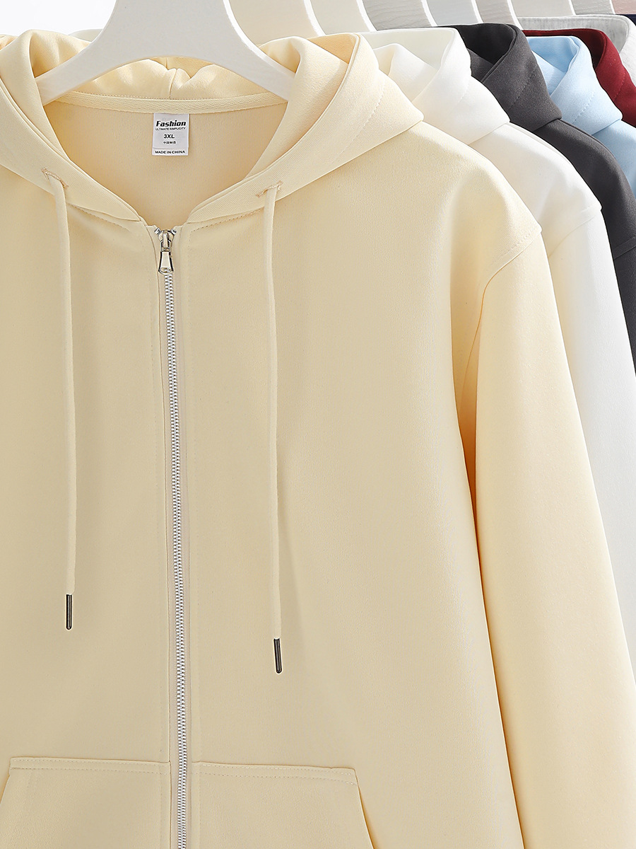 330g 합성면 단색 느슨한 소년 카디건 코트 이른 가을 연인 우유 살구색 기본 지퍼 스웨터 남성