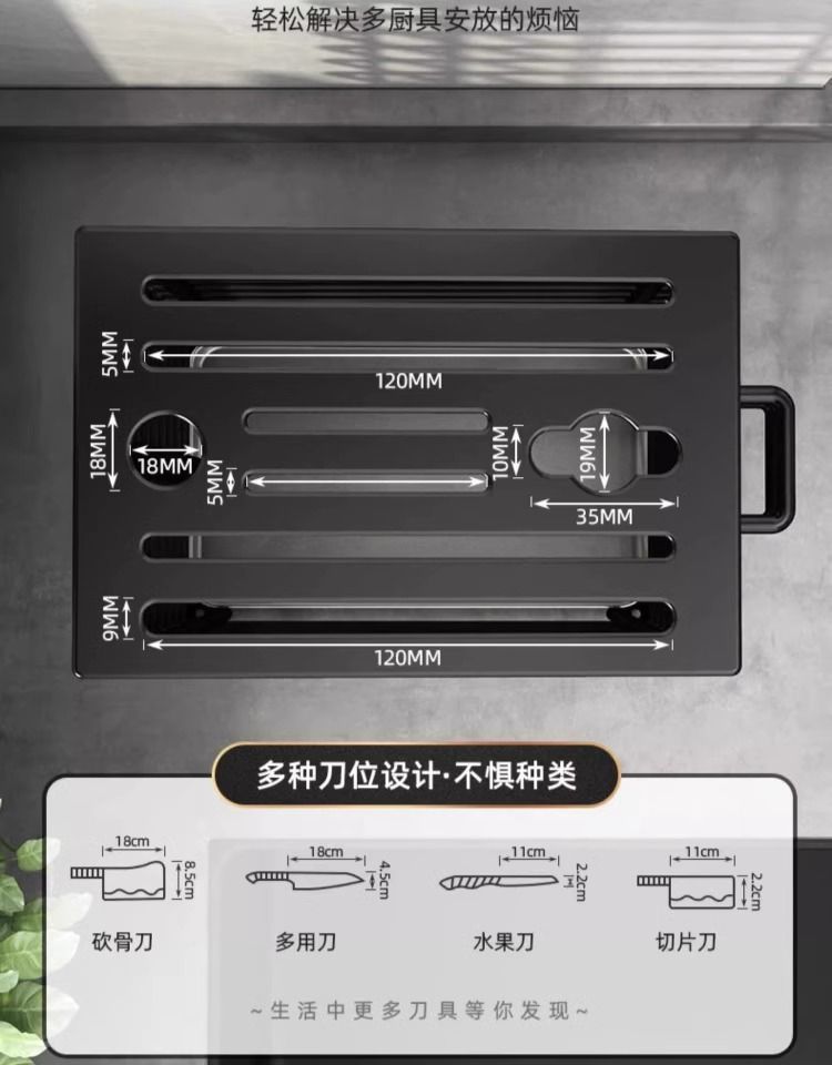 블랙 조리대/벽걸이형 라인 나이프 홀더 겸용 모델