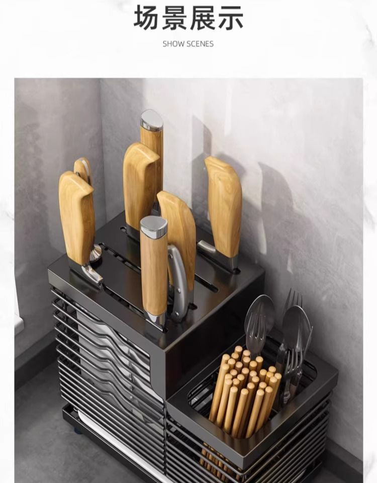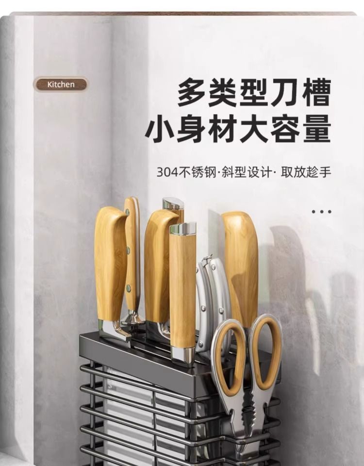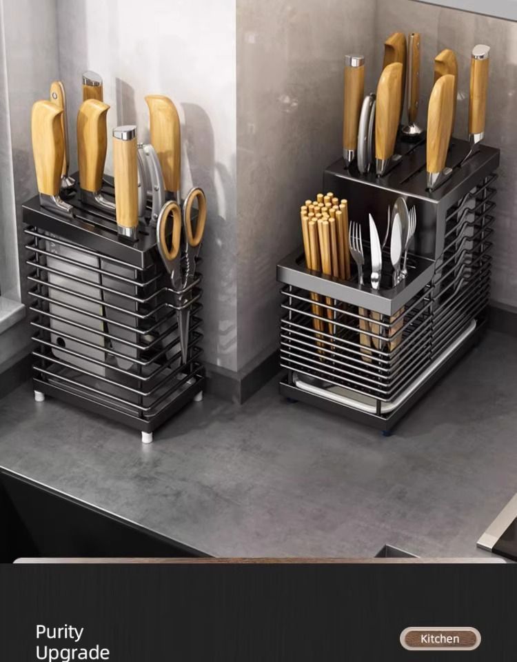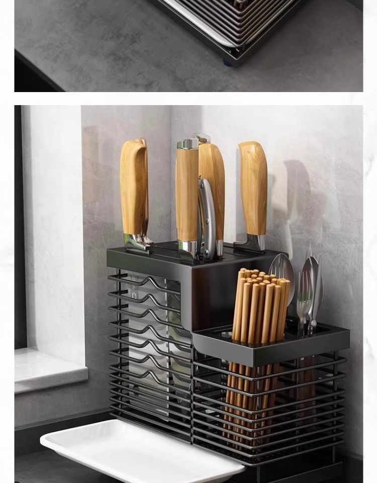 스테인레스 스틸 나이프 홀더 카운터 탑 다기능 젓가락 홀더 식기 통합 스토리지 랙 벽 장착 스토리지 랙 주방 용품