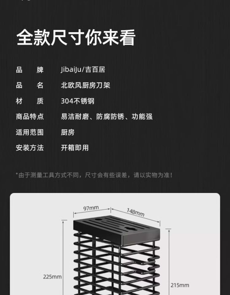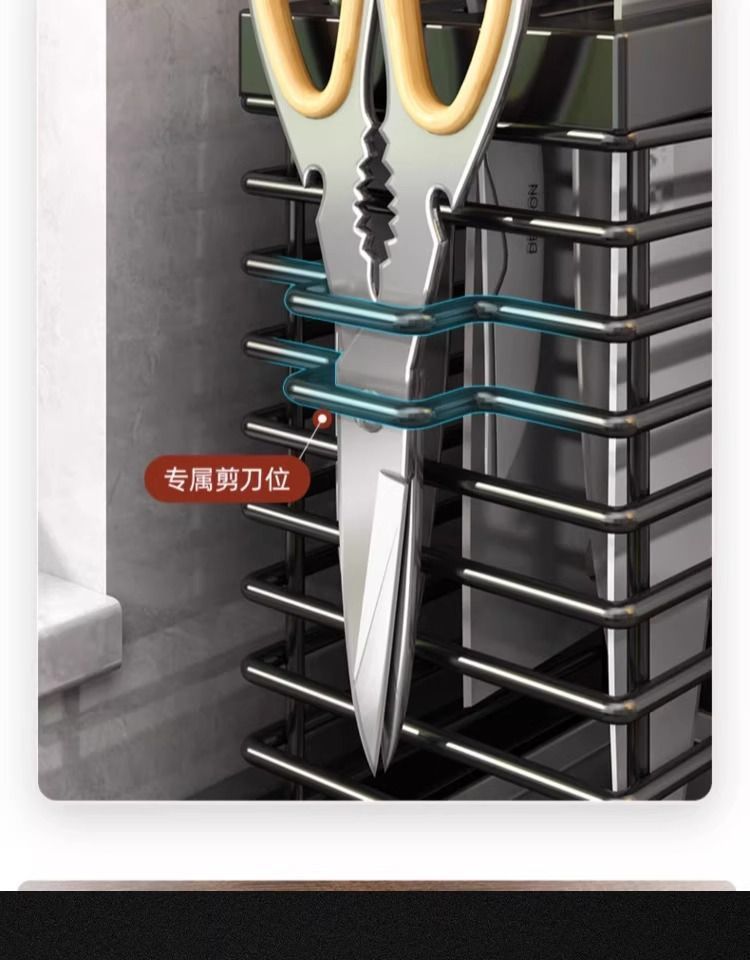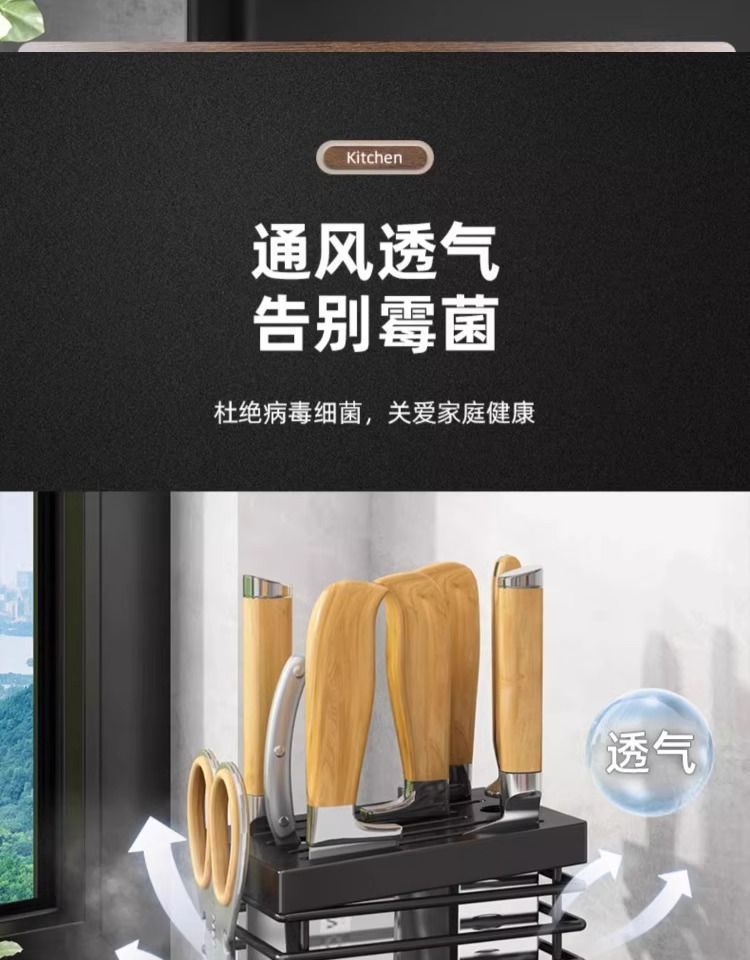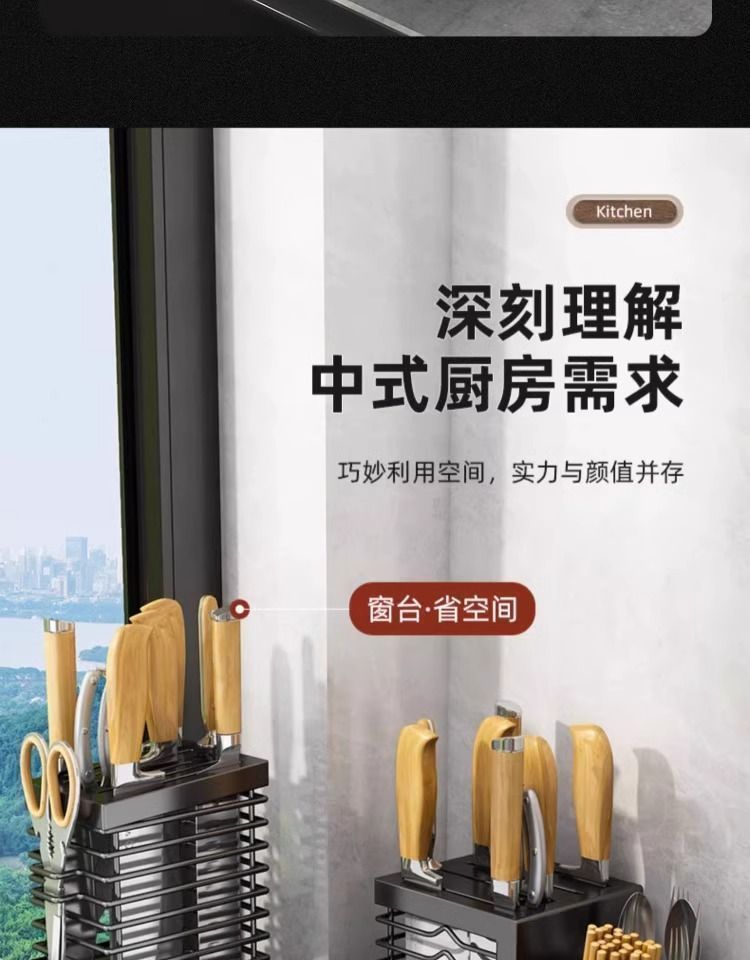 블랙 조리대/벽걸이형 라인 칼 홀더 + 젓가락통 3개 겸용 모델