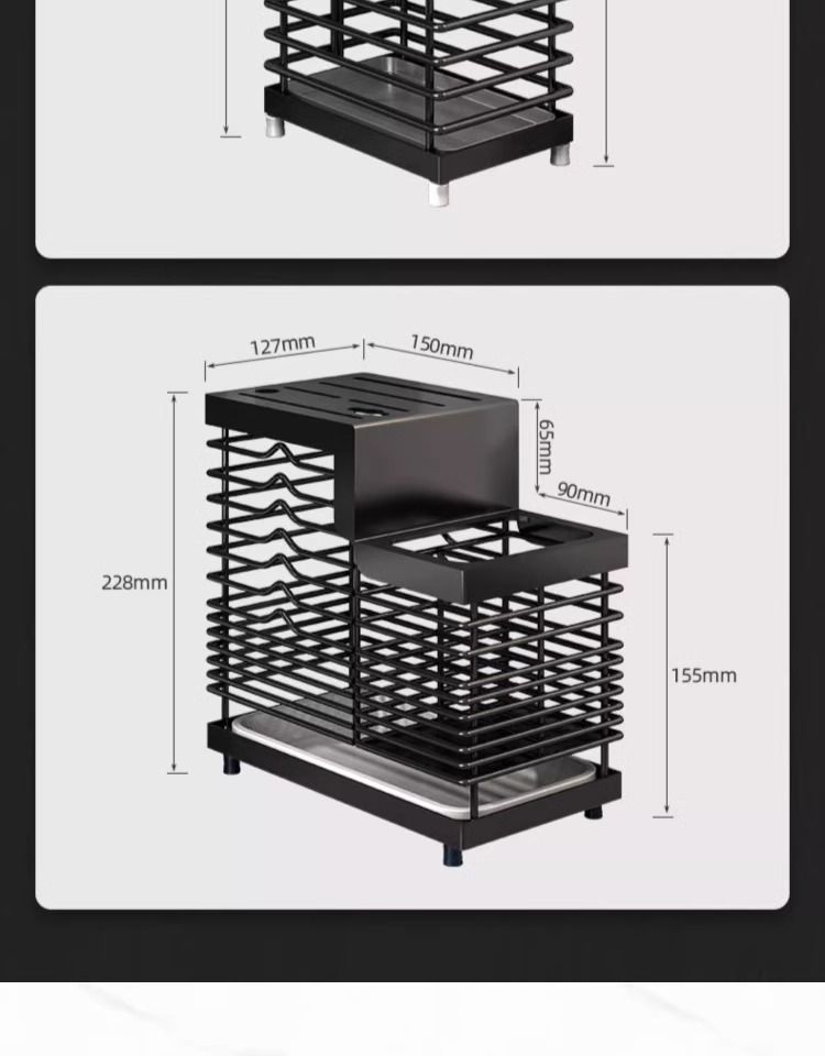 블랙 조리대/벽걸이형 라인 칼 홀더 + 젓가락통 1개 겸용 모델