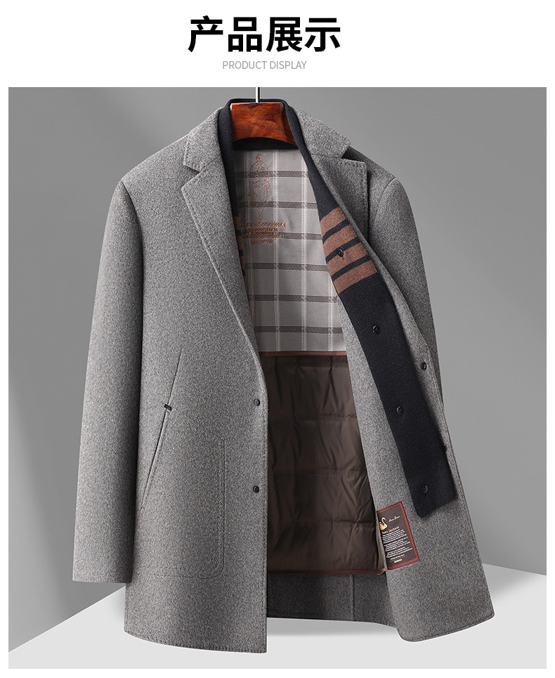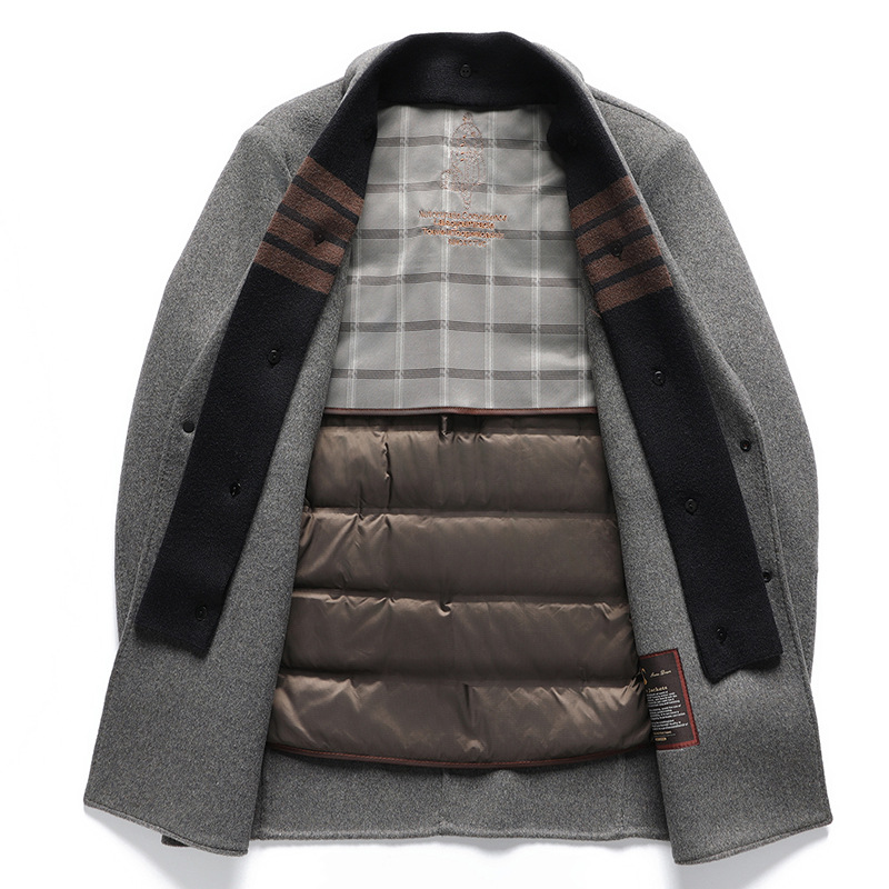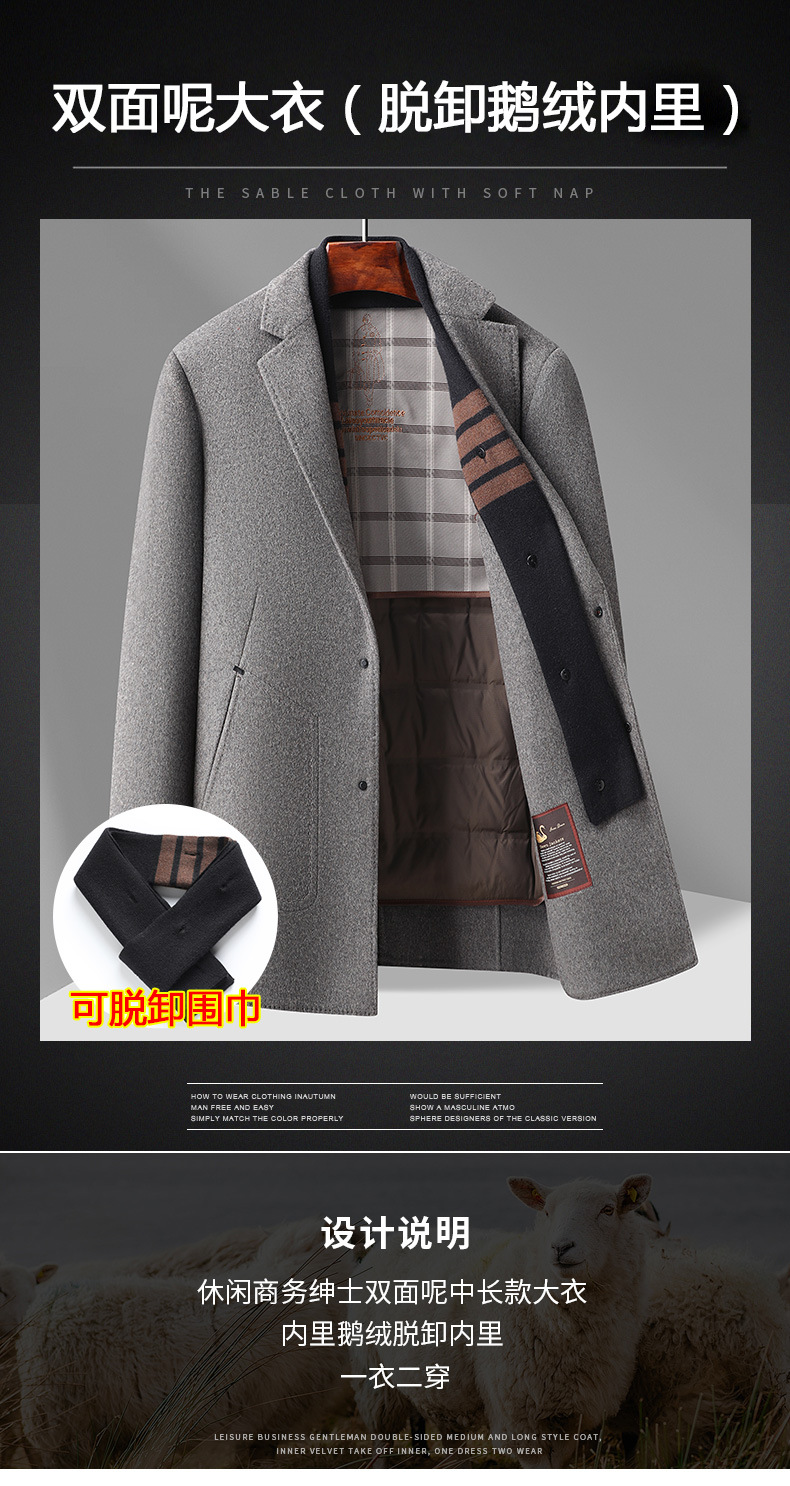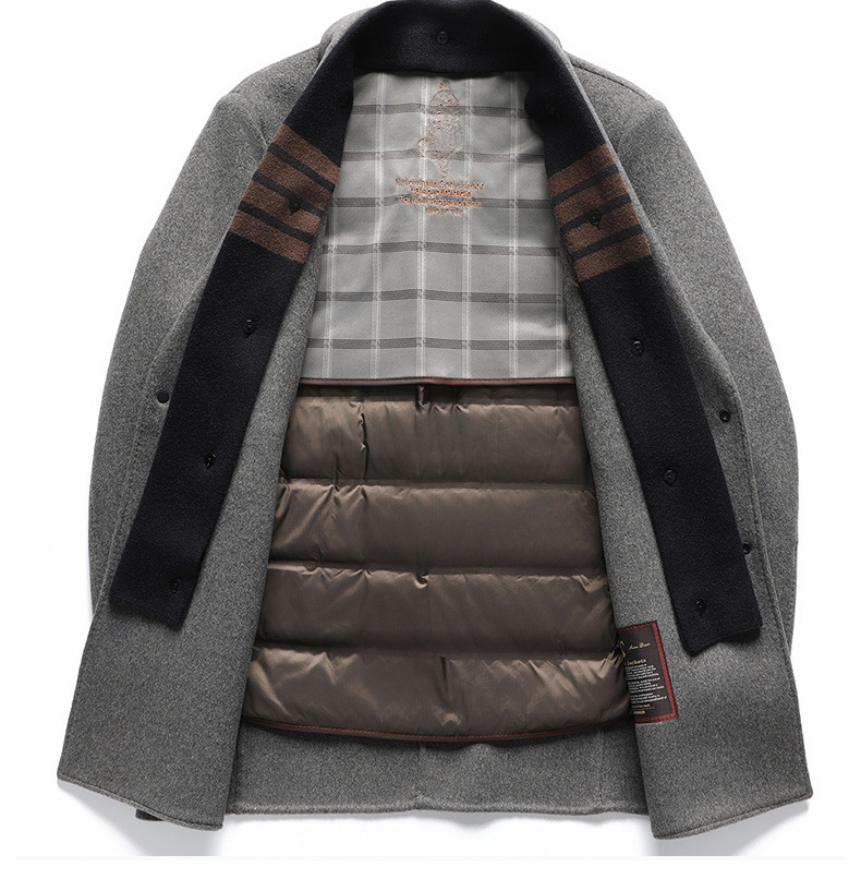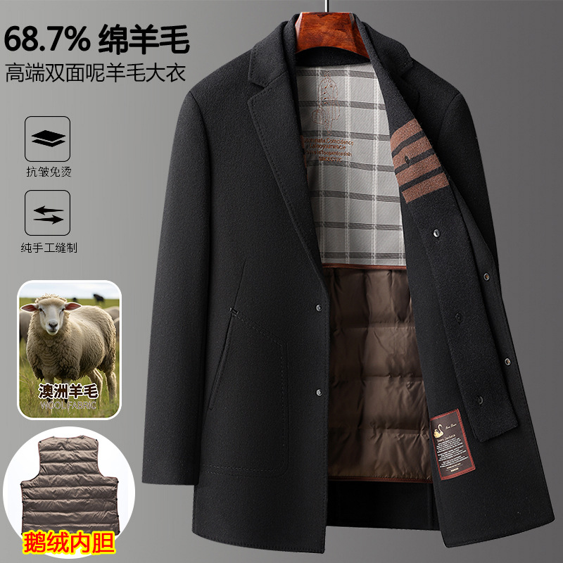 구스다운 안감 탈부착 스카프 울 코트 남성용 재킷 2025 신상 겨울 중간 길이 윈드브레이커 캐주얼