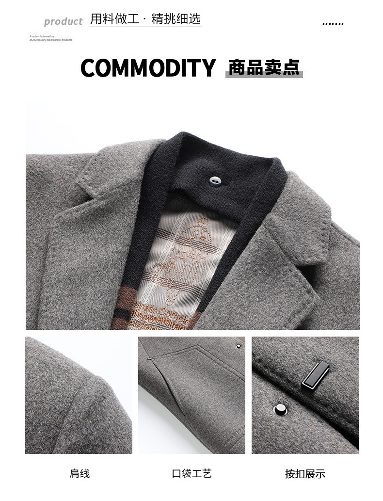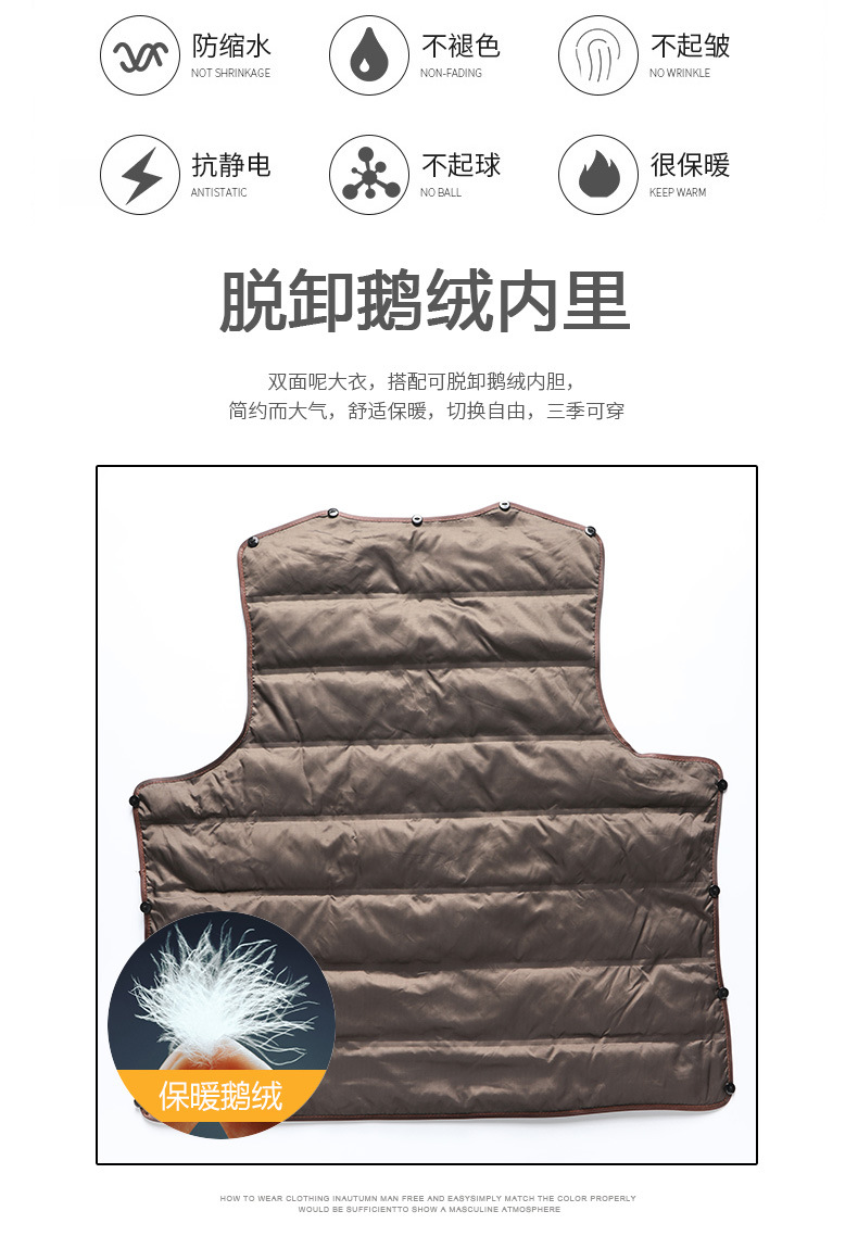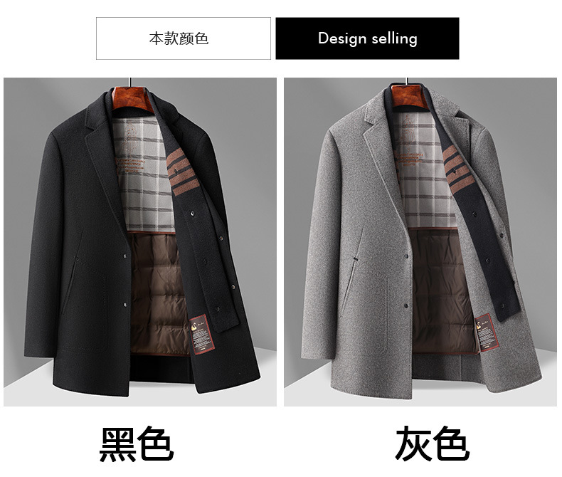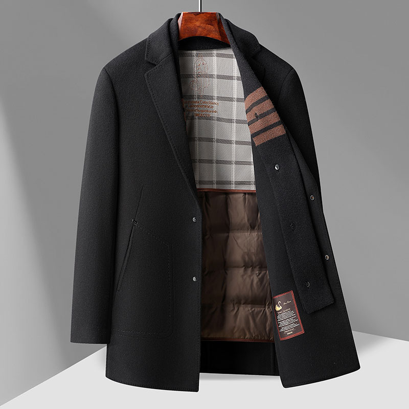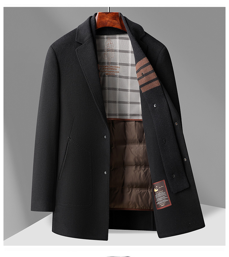 구스다운 안감 탈부착 스카프 울 코트 남성용 재킷 2025 신상 겨울 중간 길이 윈드브레이커 캐주얼