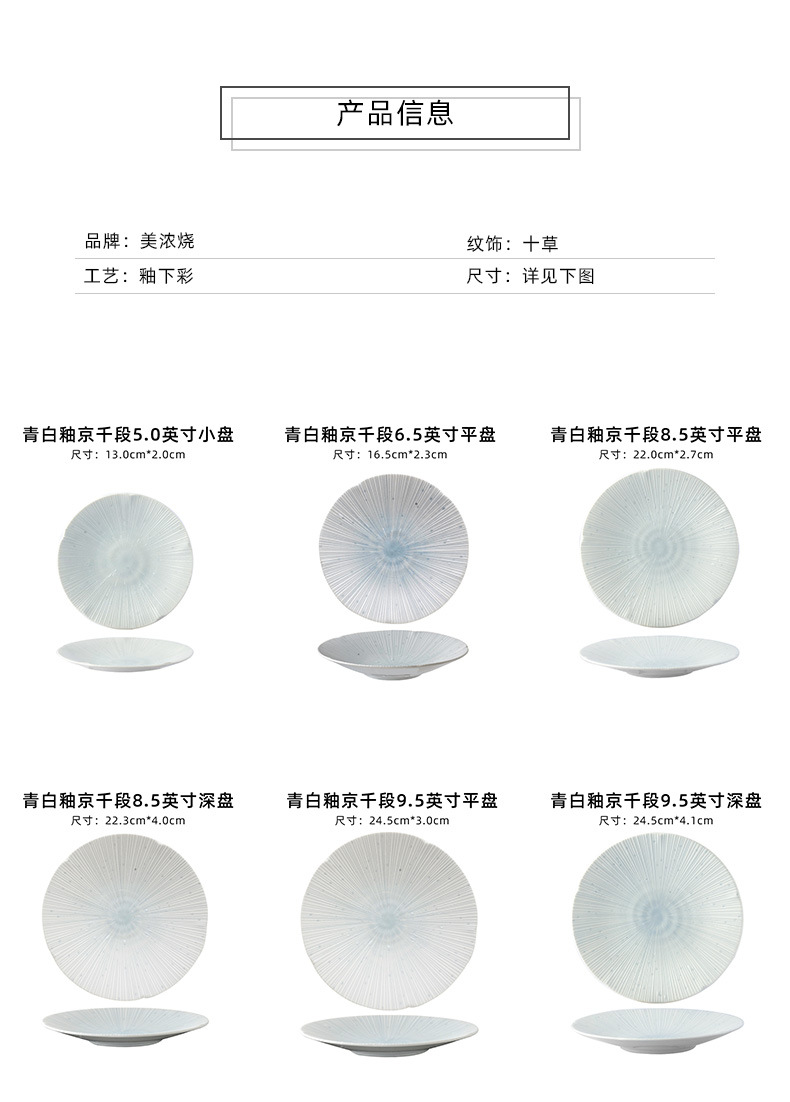 미노야키 수입 과일 접시 청백색 유약 도자기 접시 그릇 일본식 심플 유약 밑색 식기 대접시