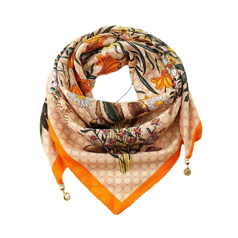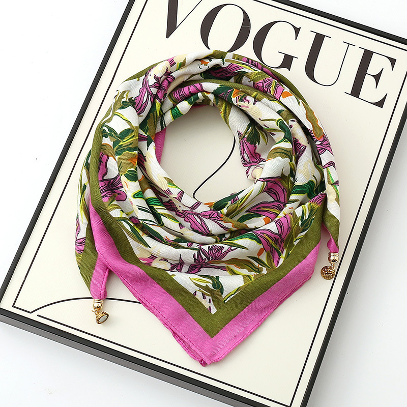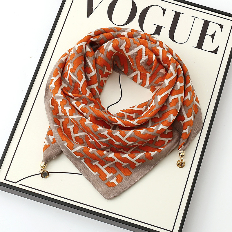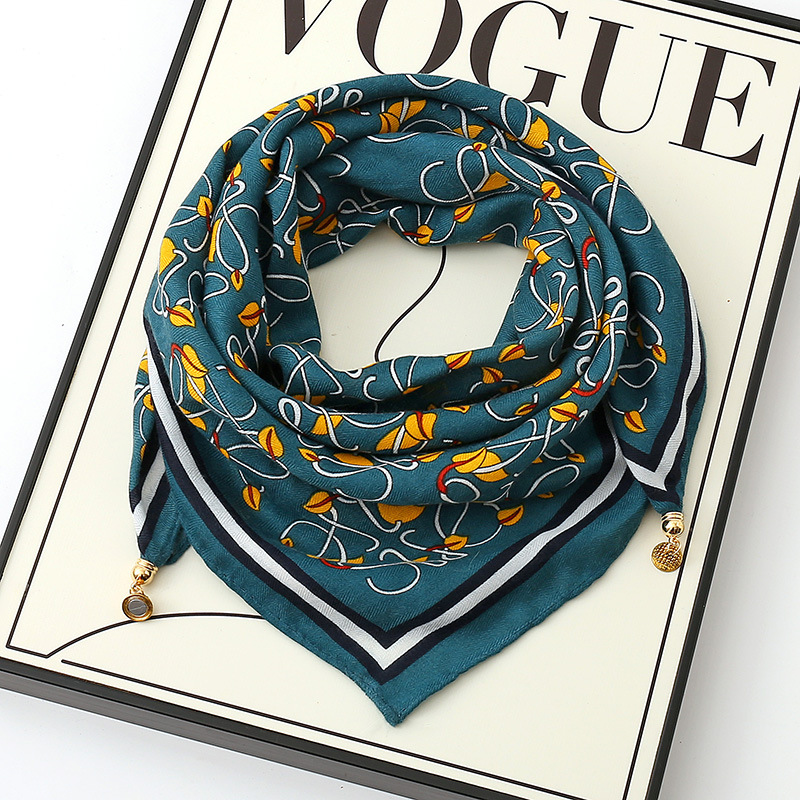 가을과 겨울 새로운 65 스퀘어 스카프 마그네틱 버클 실크 코튼 스카프 여성의 인쇄 삼각형 스카프 패션 웨스턴 스타일 올 매치 실크 스카프