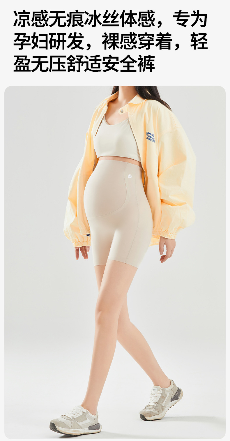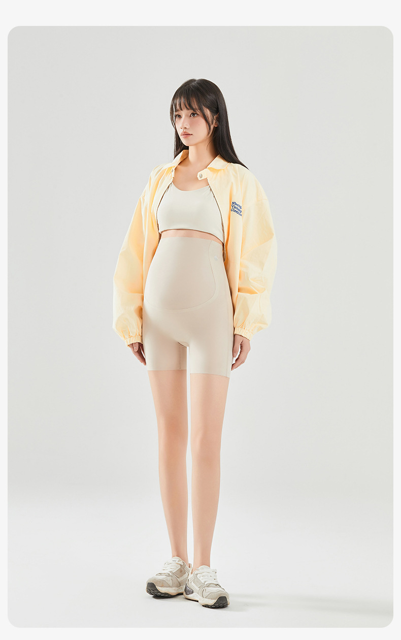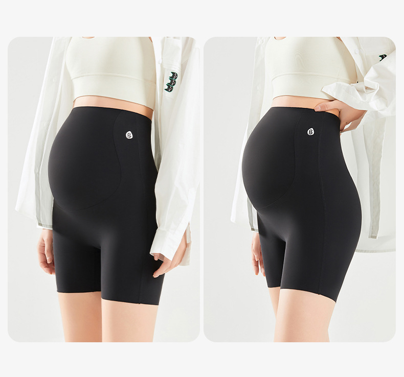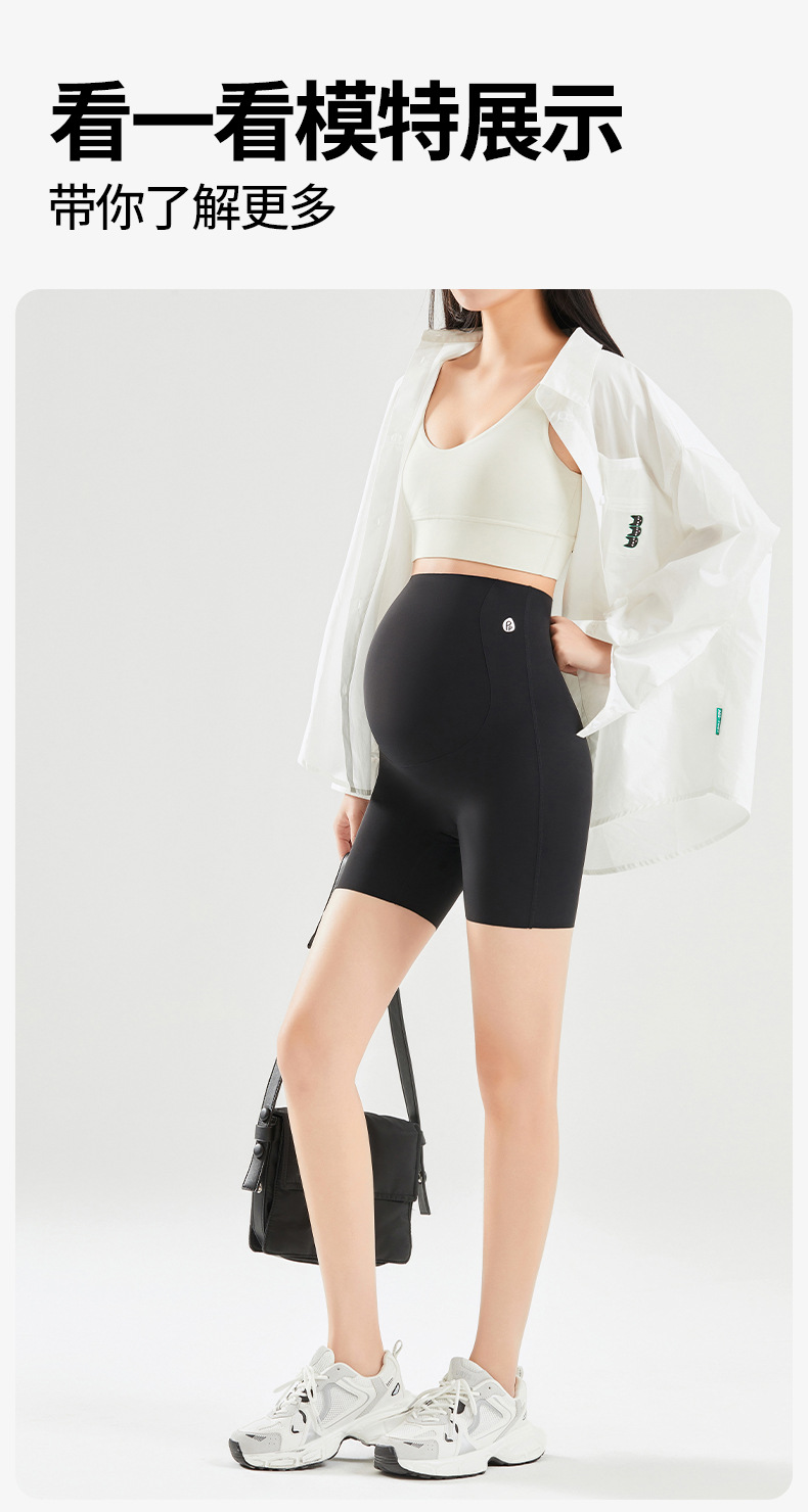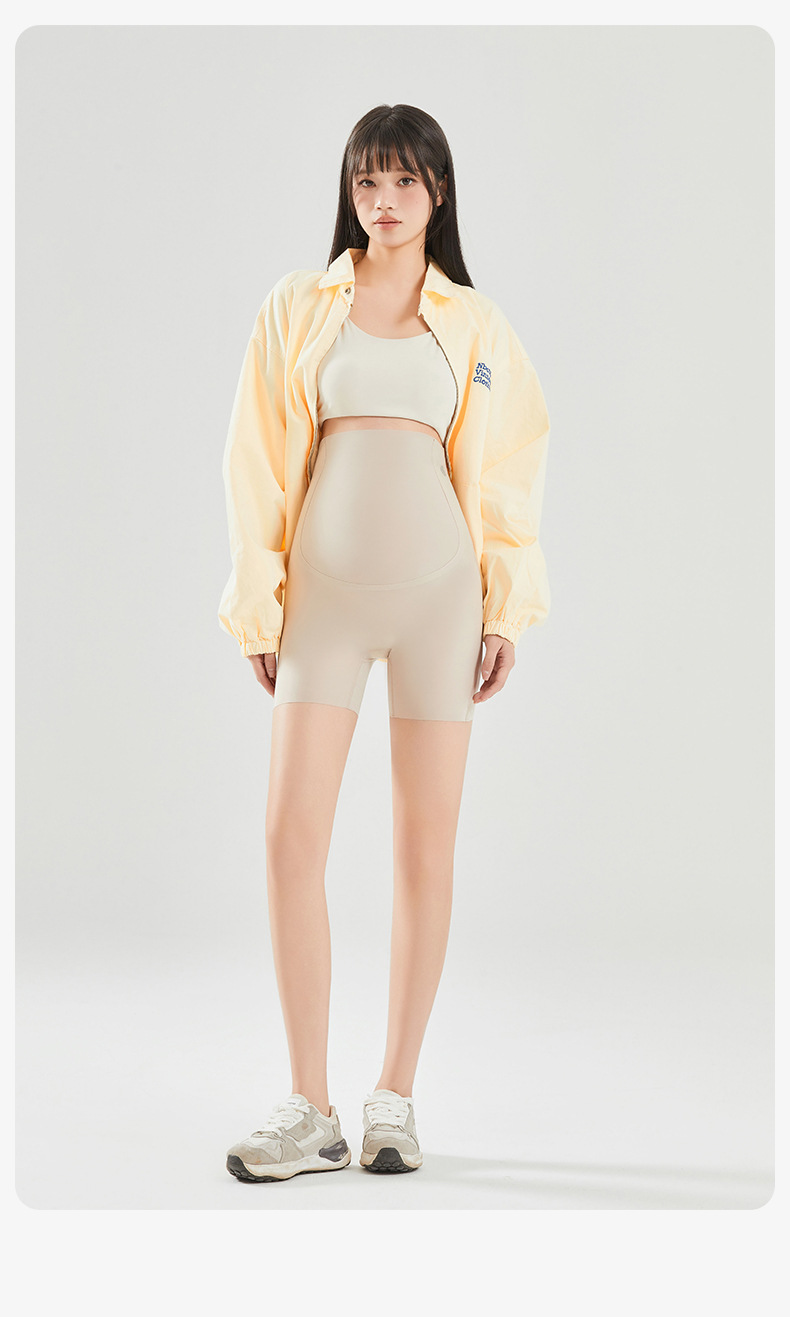 임산부 안전 바지 봄과 여름 얇은 높은 탄성 배꼽을 지원하는 3 점 상어 바지 플러스 사이즈 외부 착용 안티 라이트 임산부 반바지