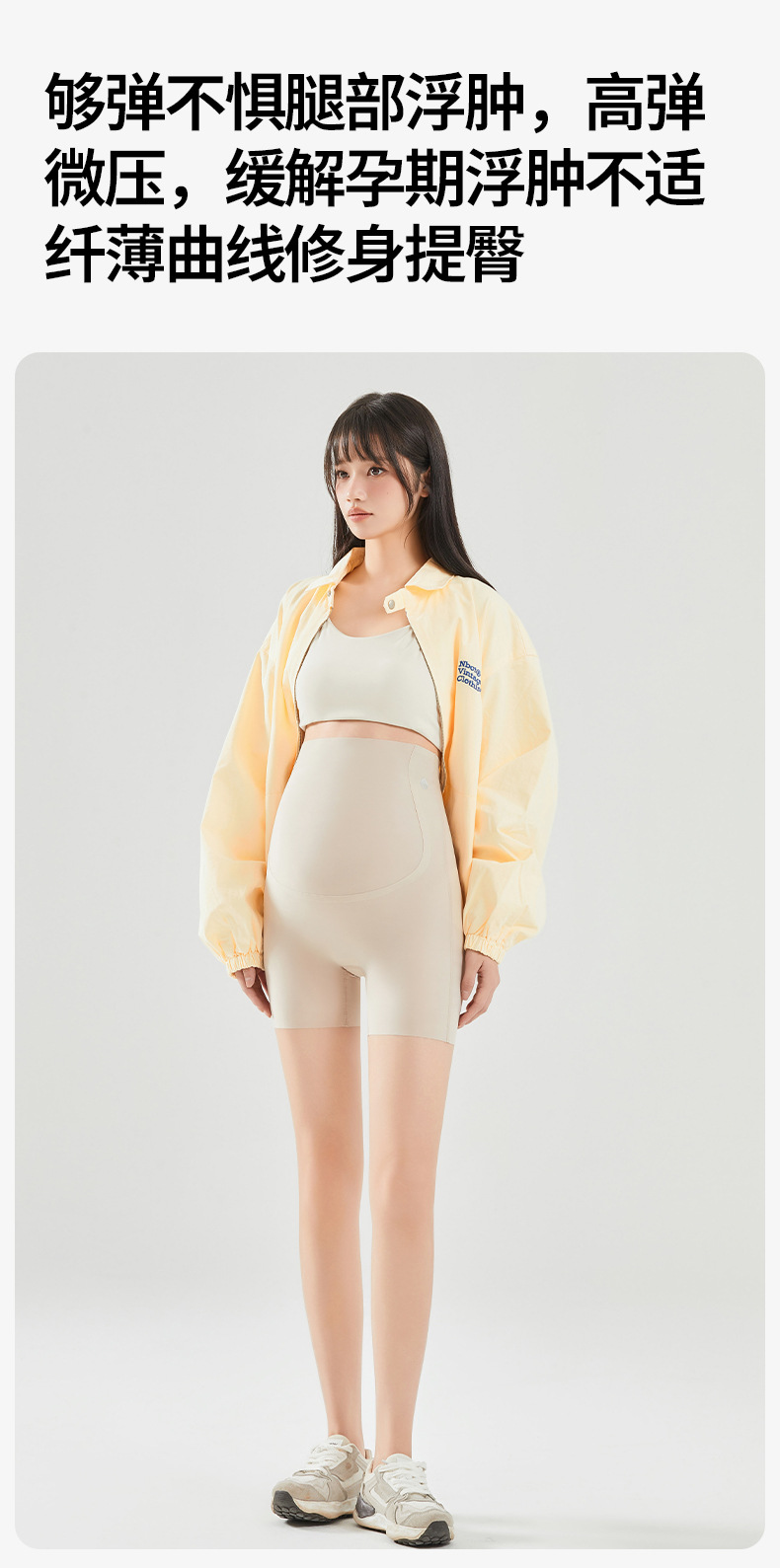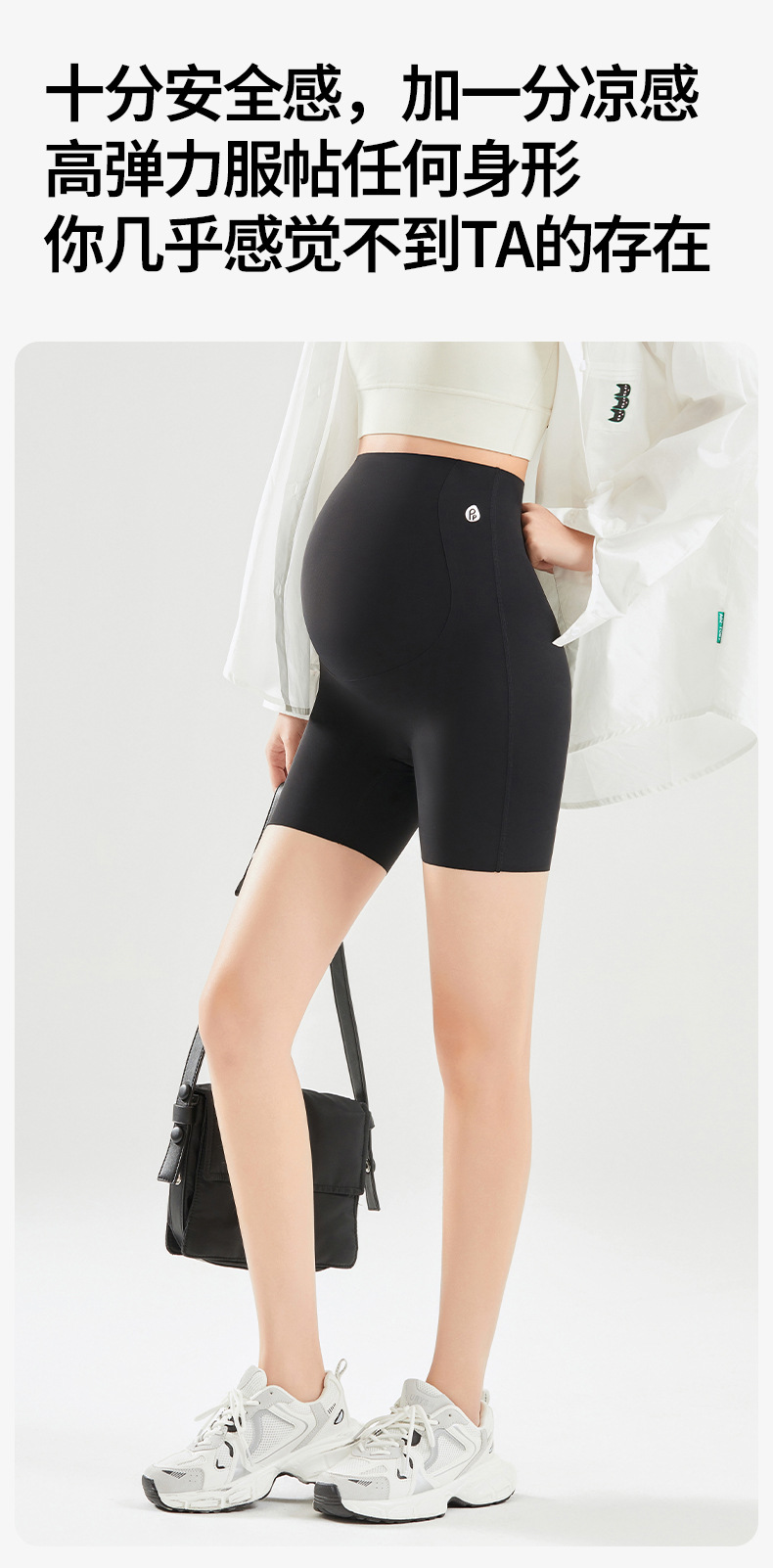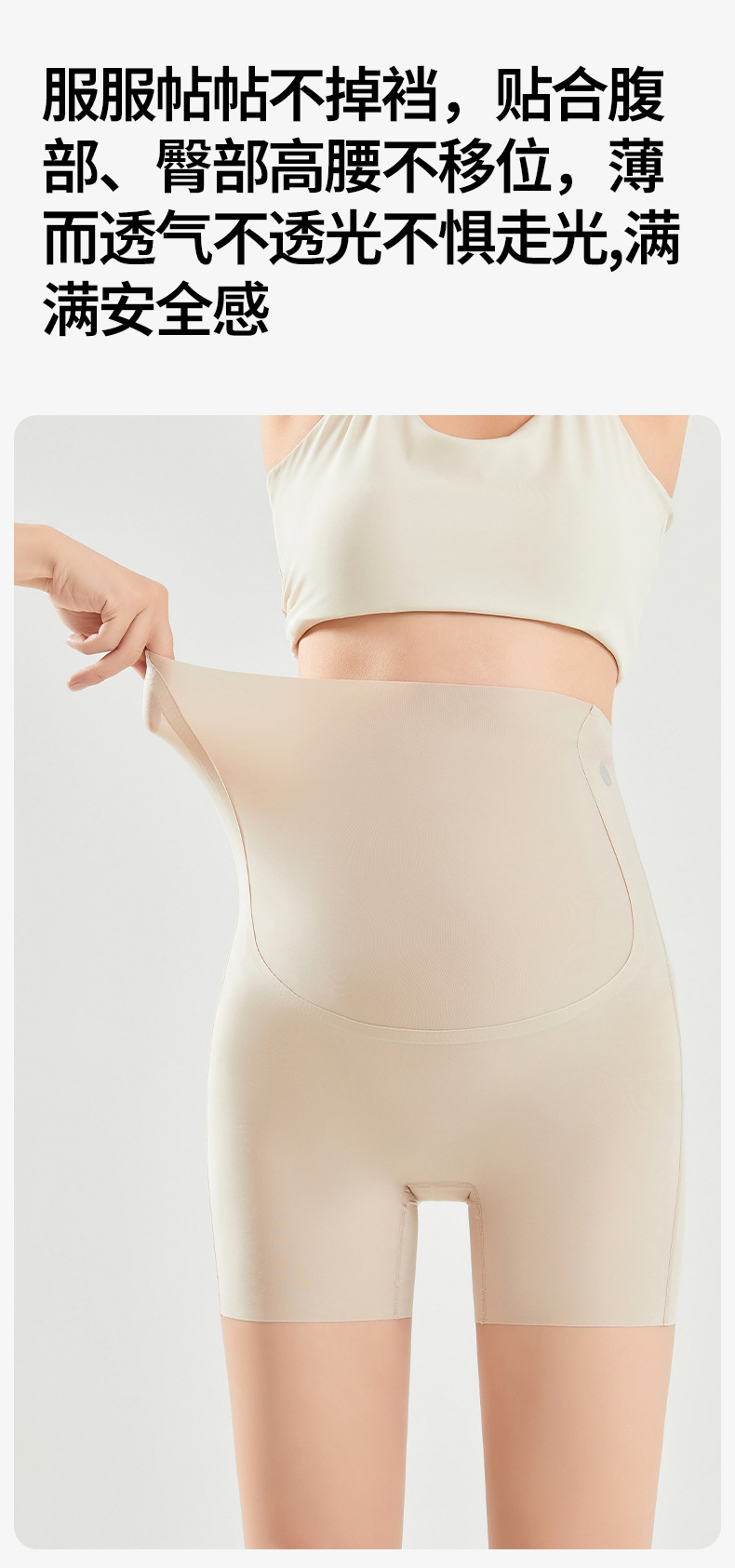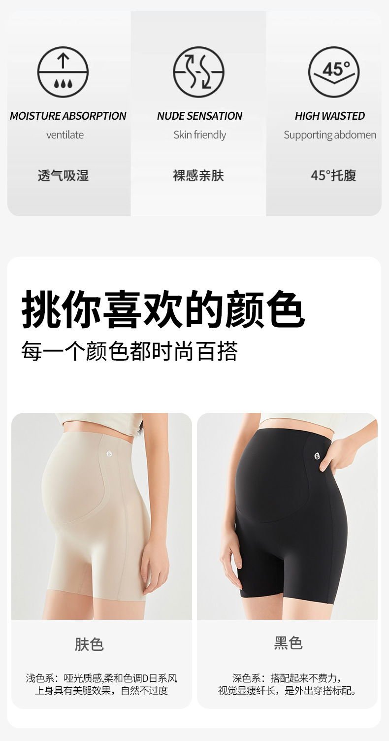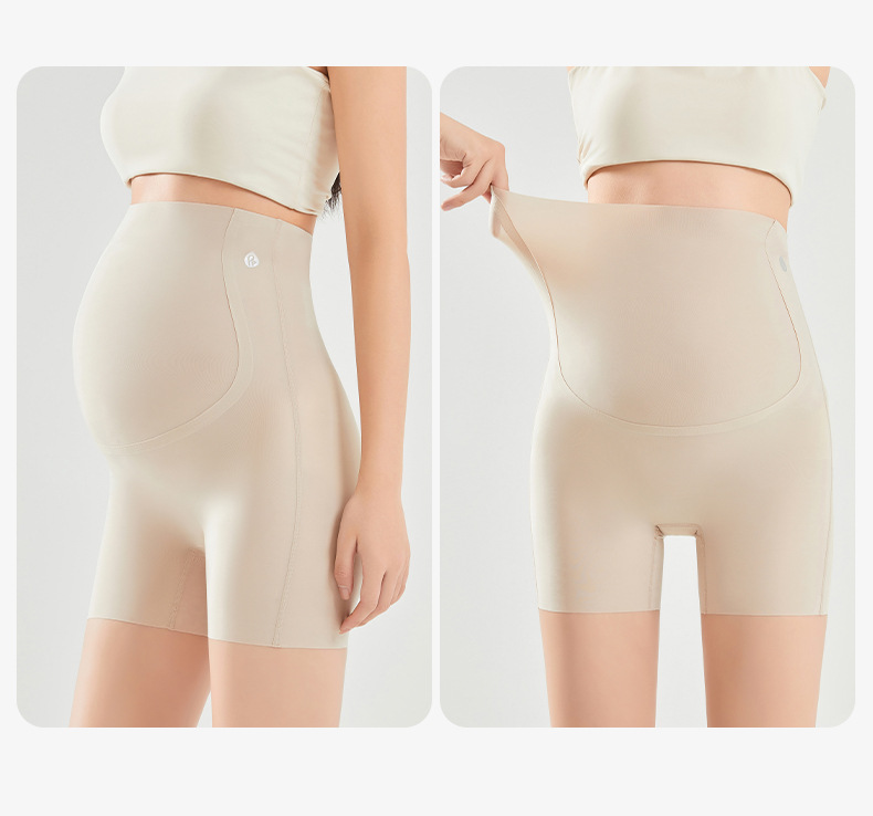 임산부 안전 바지 봄과 여름 얇은 높은 탄성 배꼽을 지원하는 3 점 상어 바지 플러스 사이즈 외부 착용 안티 라이트 임산부 반바지