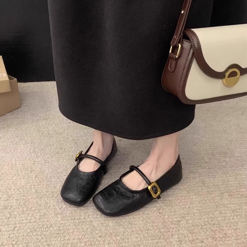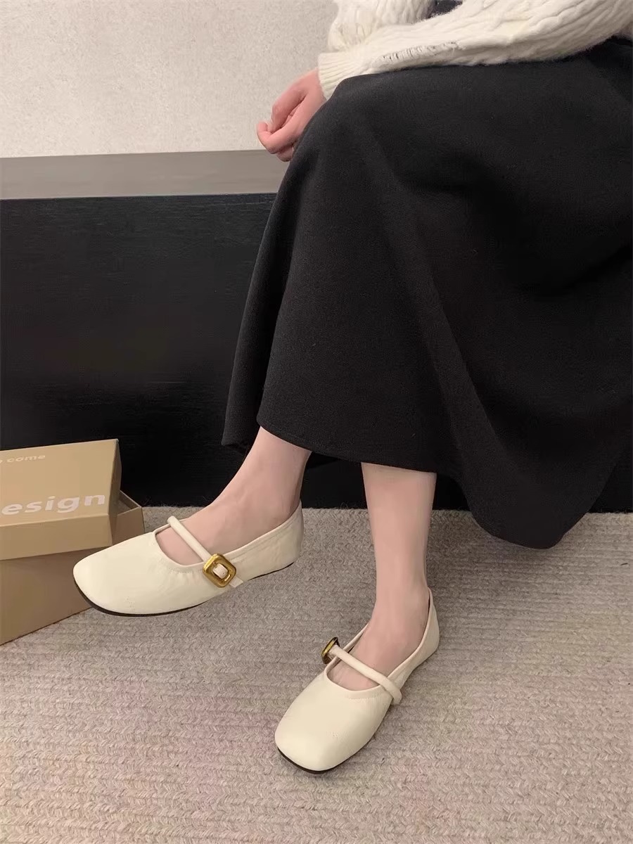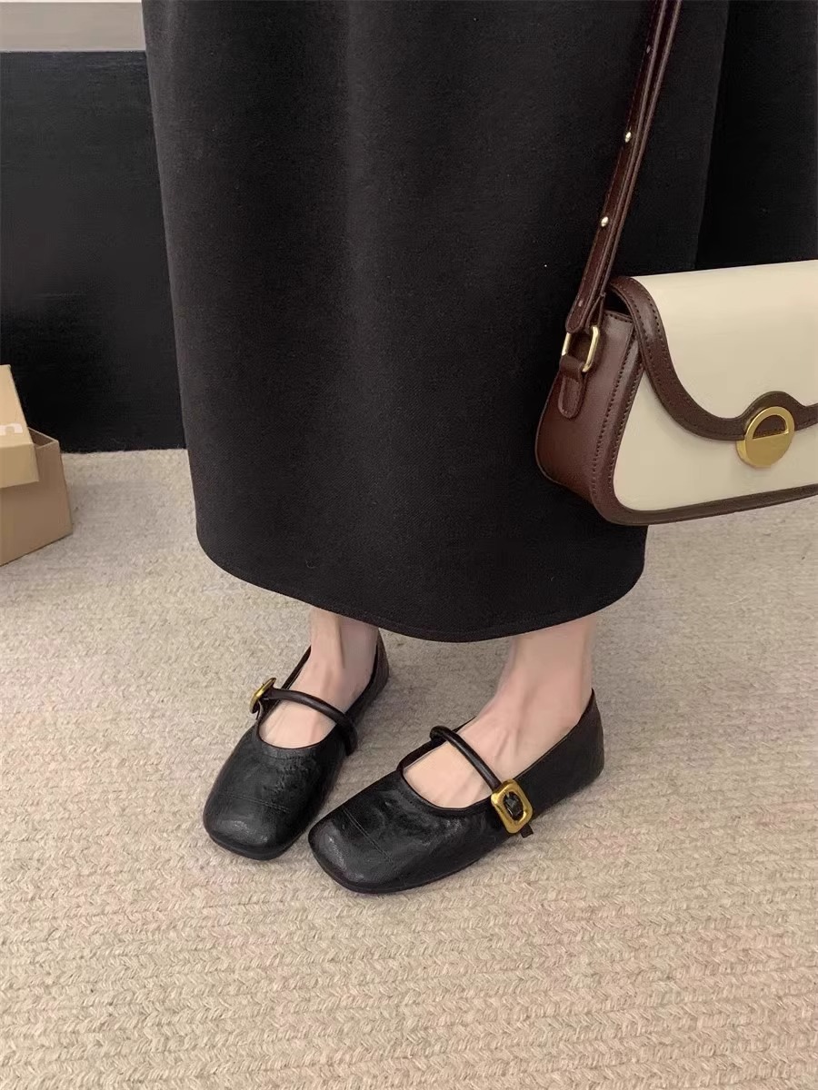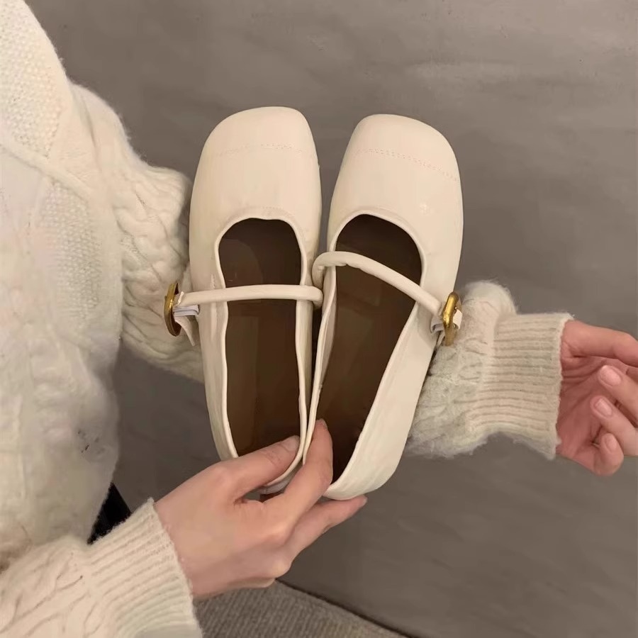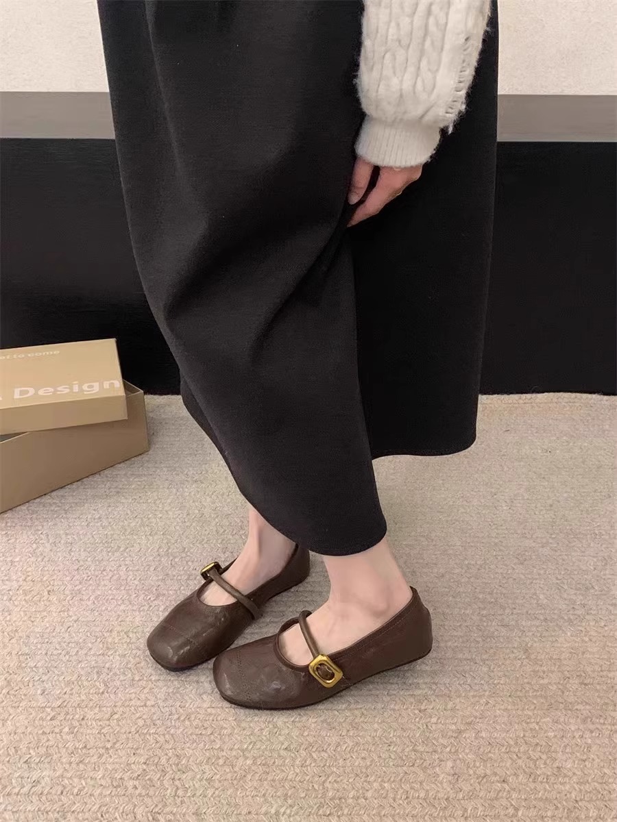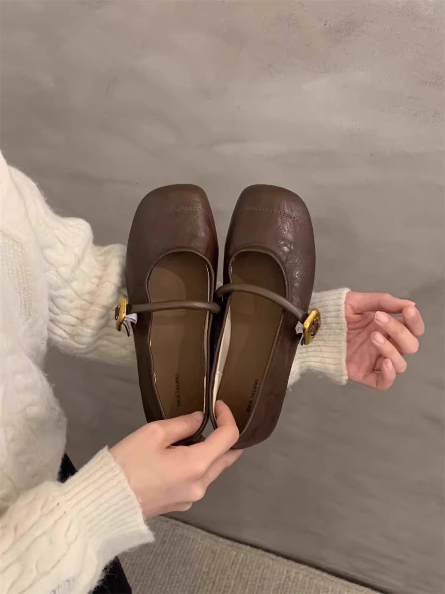 양가죽 버전~ 부드러운 밑창의 여성용 메리제인 슈즈 2026 봄 여름 신상품 다용도 플랫 라운드 토 얕은 입구 원스트랩 싱글 슈즈