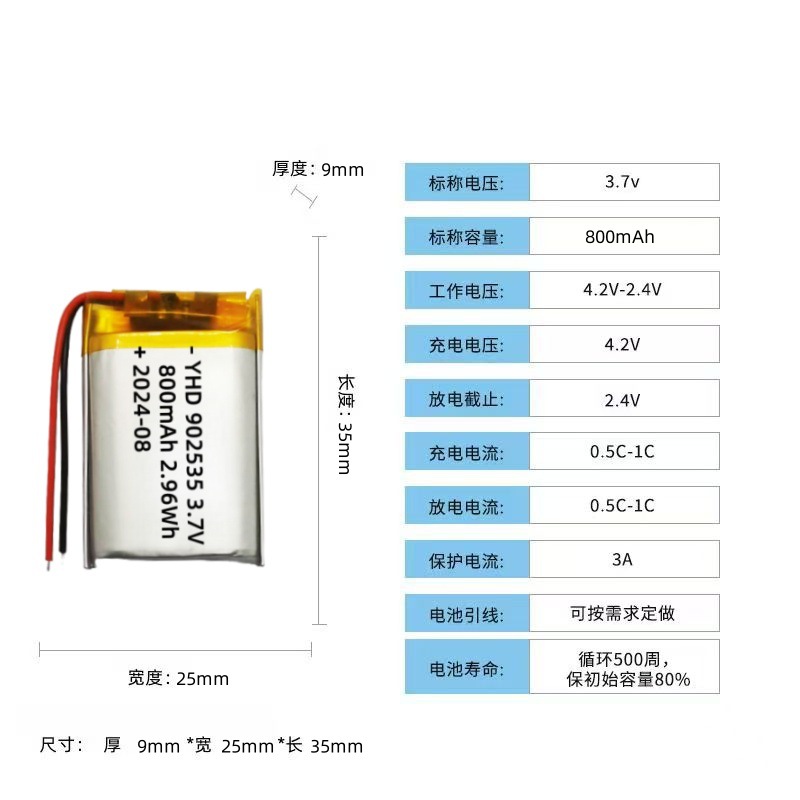 902535 폴리머 리튬 배터리 800mAh 미용 기기 웨어러블 장비 전자 장난감 총 충전식 배터리