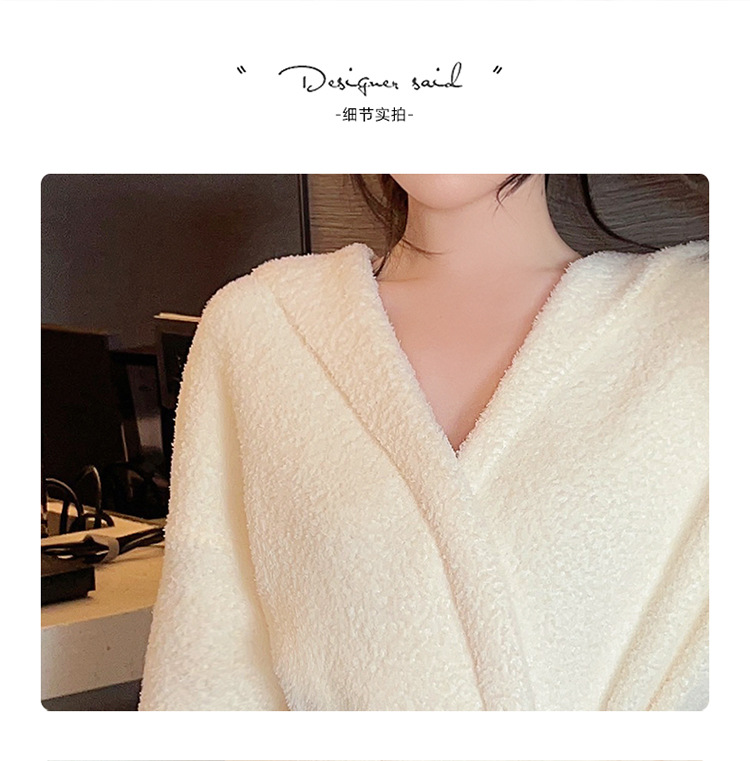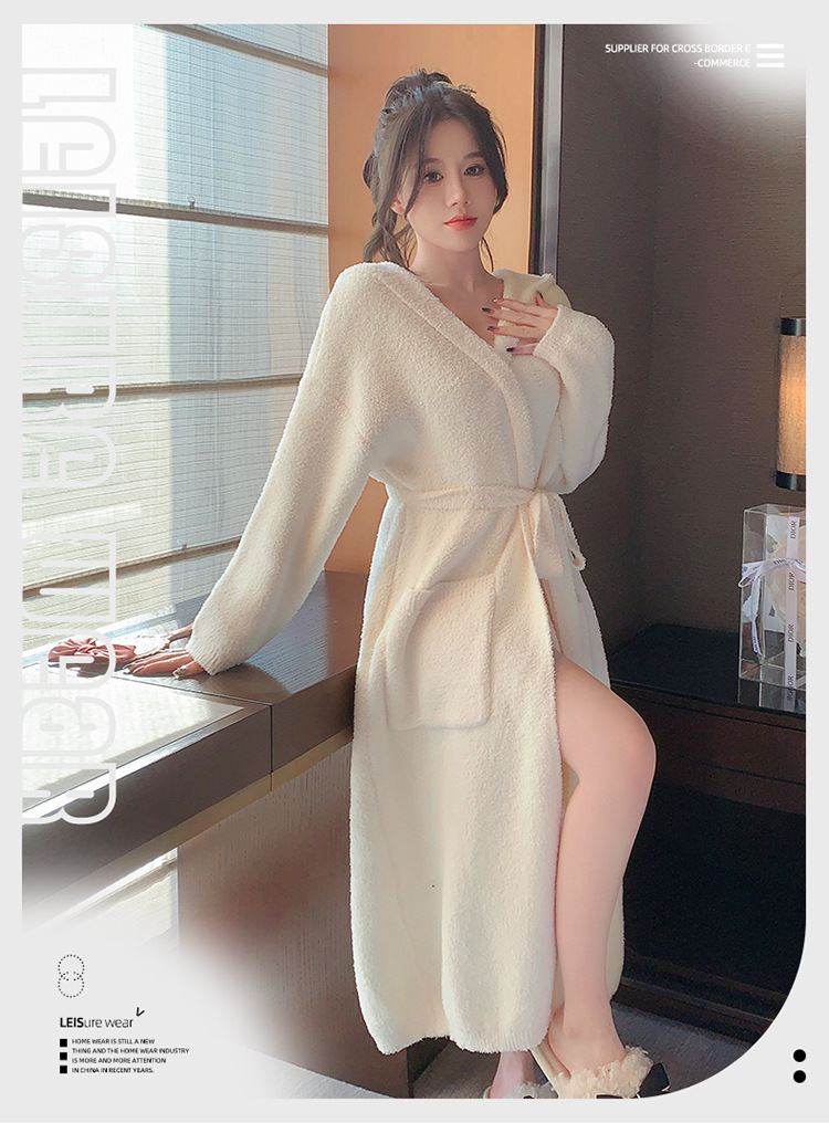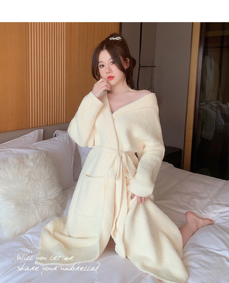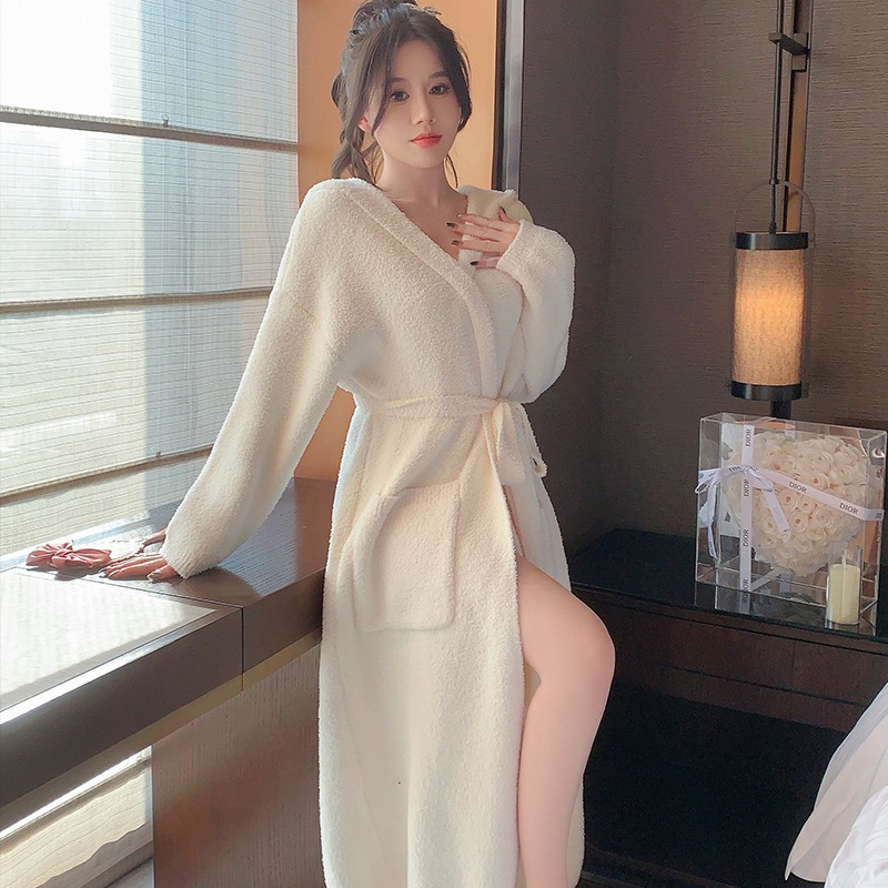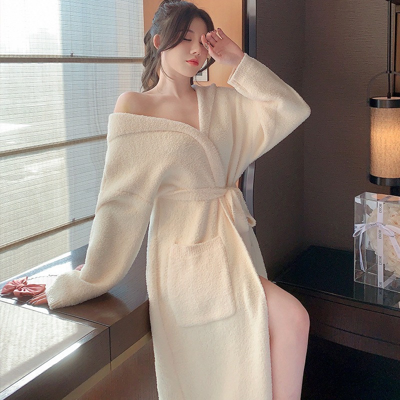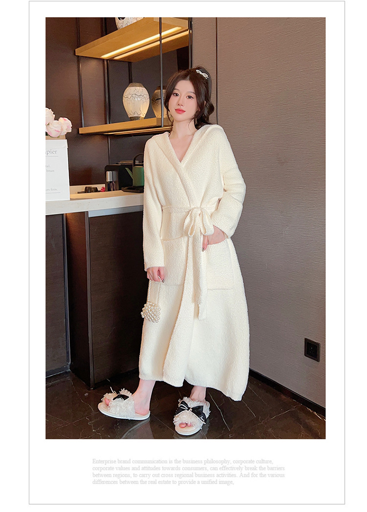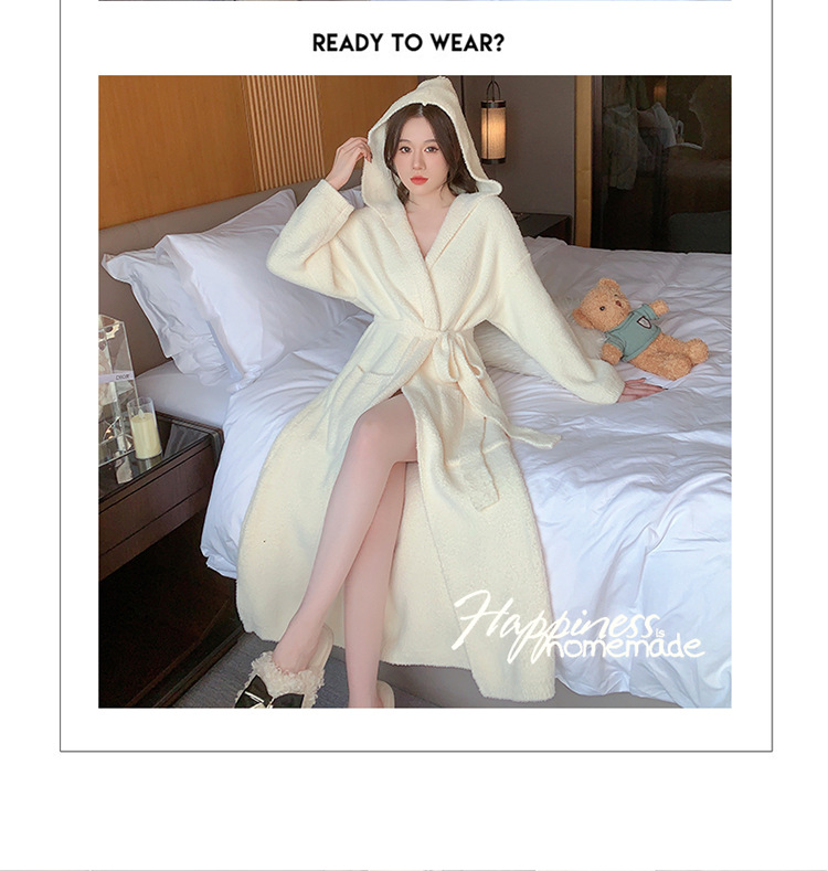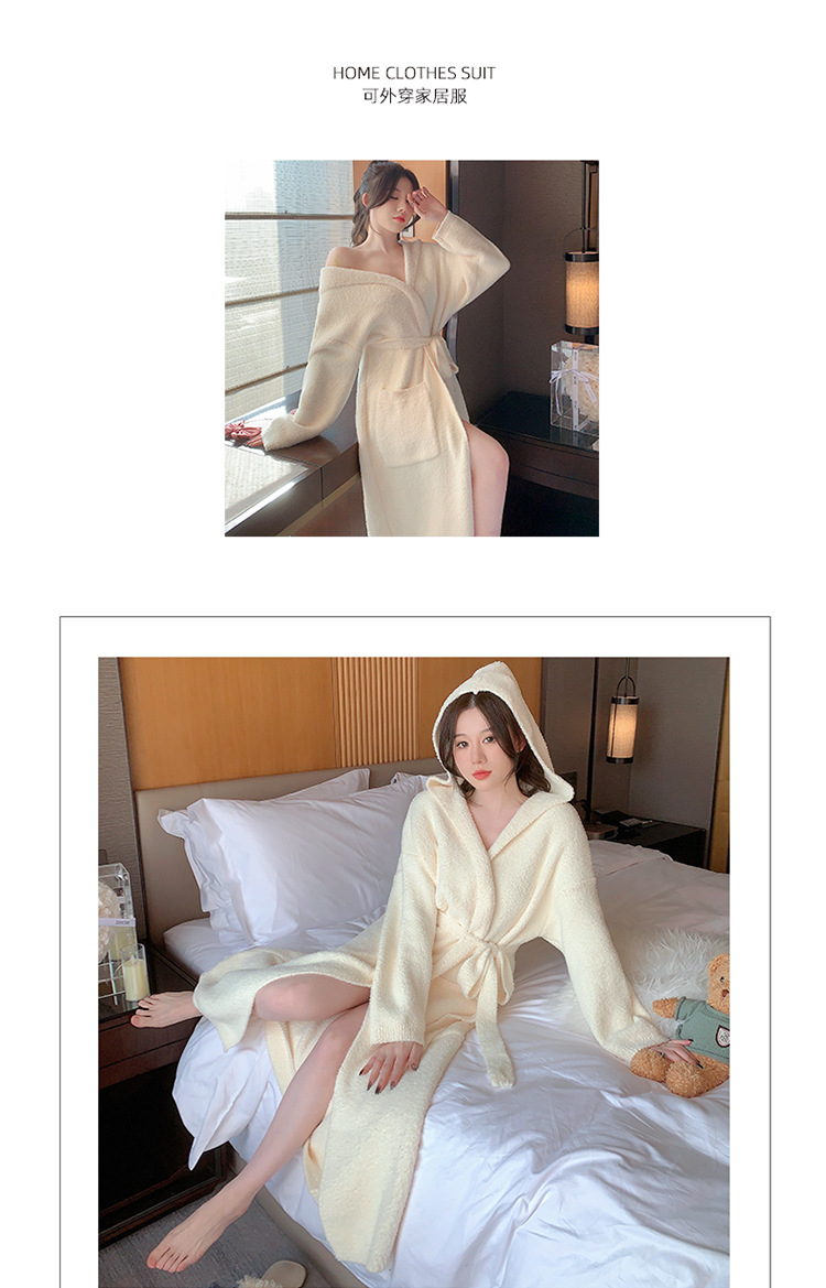 단색 후드 스트랩 포켓 달콤한 소프트 나이트가운 잠옷 여성 가을 겨울 홈 서비스 호텔 목욕 가운
