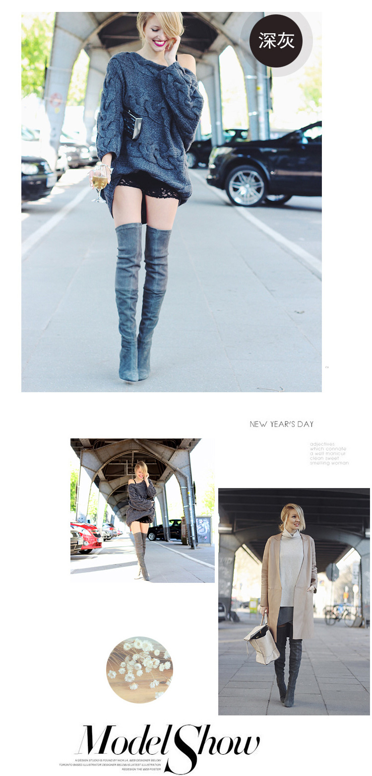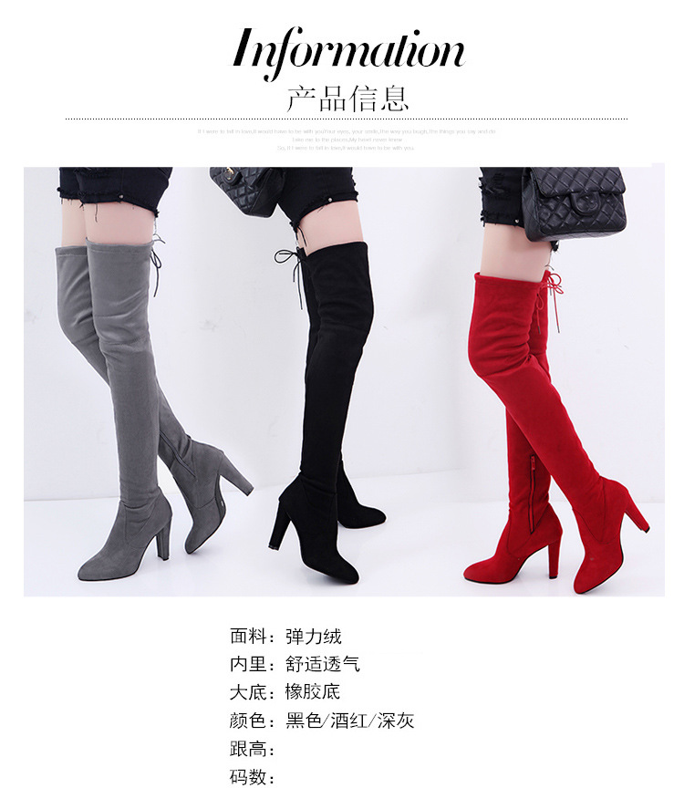 국경 간 대외 무역 2024 새로운 유럽과 미국의 가을 및 겨울 플러스 사이즈 무릎 부츠 하이힐 뾰족한 프로스트 지퍼 여성 부츠