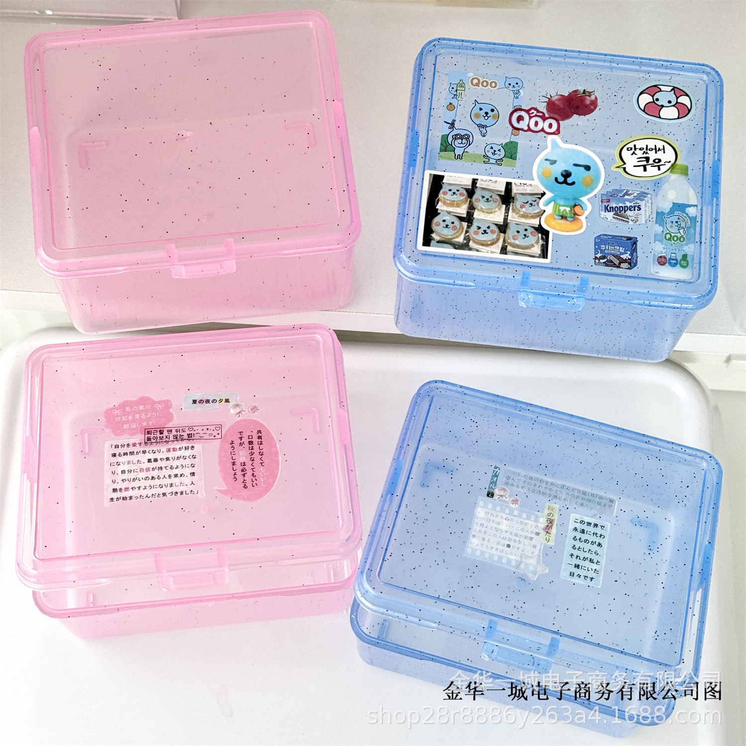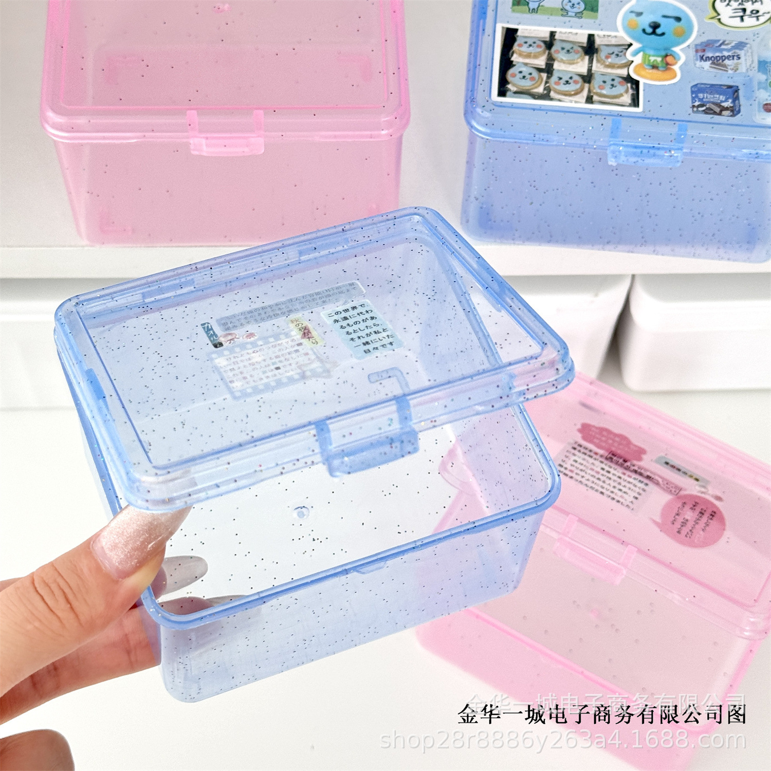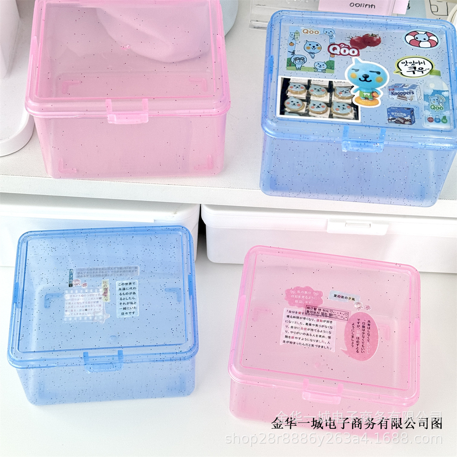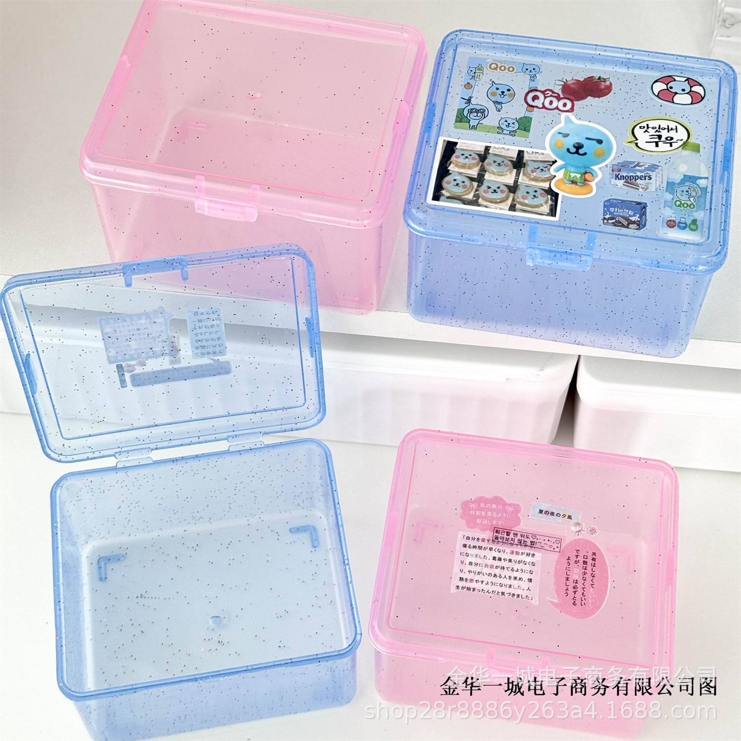 Ins 스타일 고급 반짝이 플립 탑 보관 상자 대용량 플라스틱 방진 보관 다기능 잡다한 투명 보관 상자