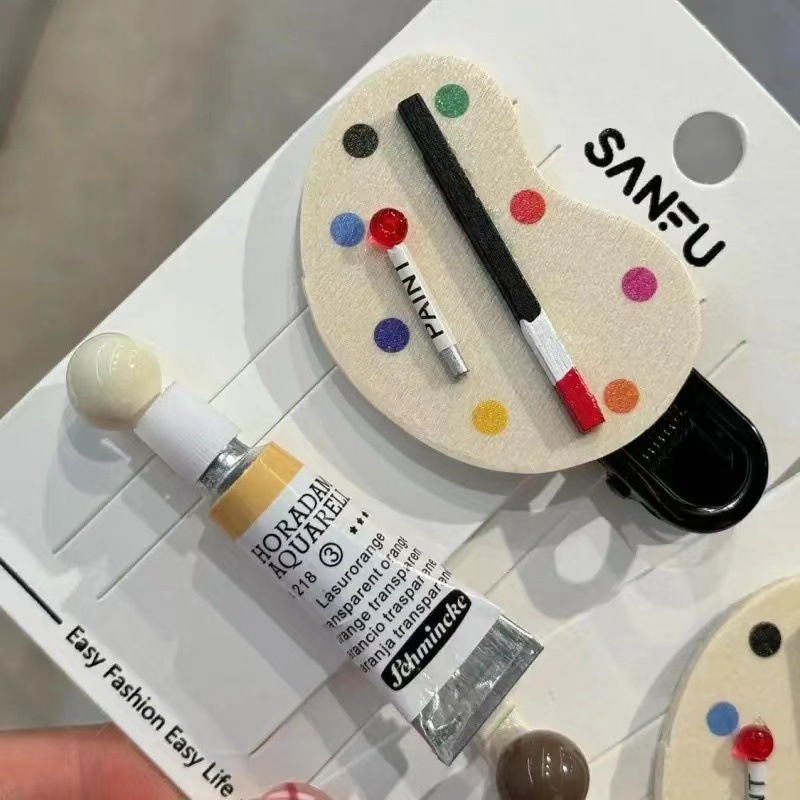 산푸 2024 새로운 귀여운 창조적 인 문구 유화 페인트 브러시 앞머리 머리핀 헤어 액세서리