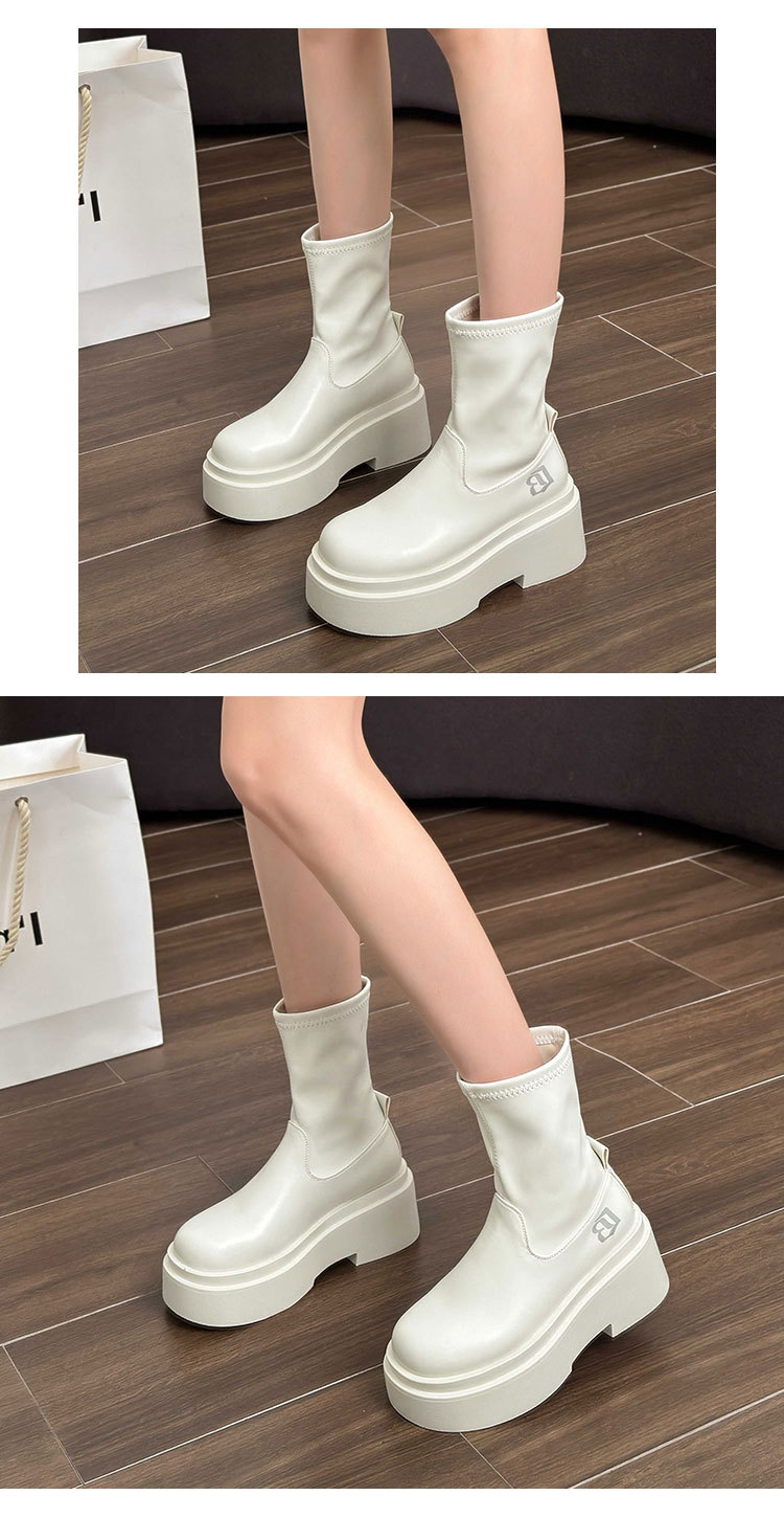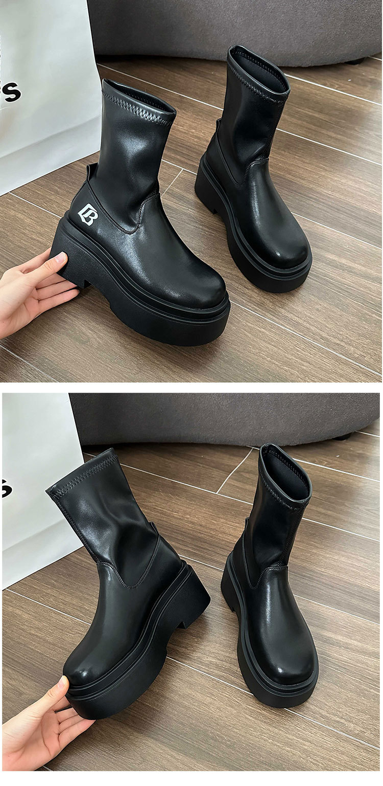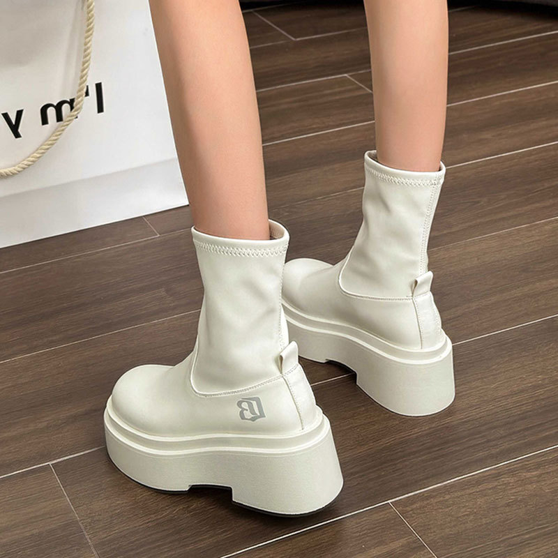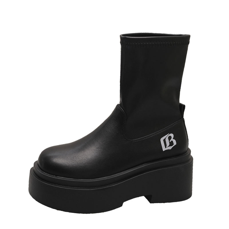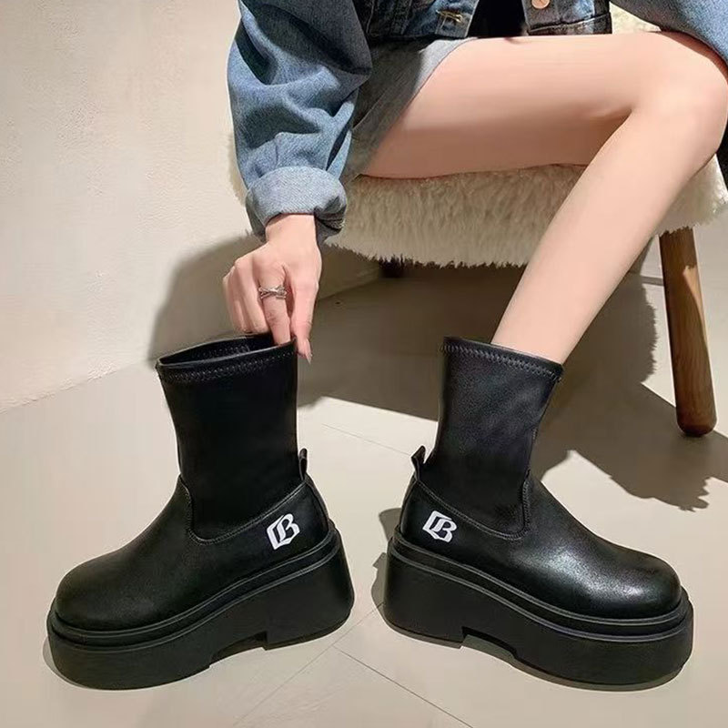 작은 스파이스 걸스 편지 스트레치 부츠 여자의 2024 가을 새로운 상승 마틴 부츠 두꺼운 스키니 짧은 부츠