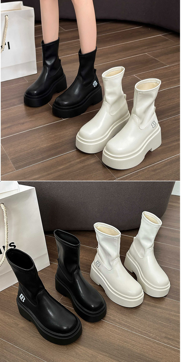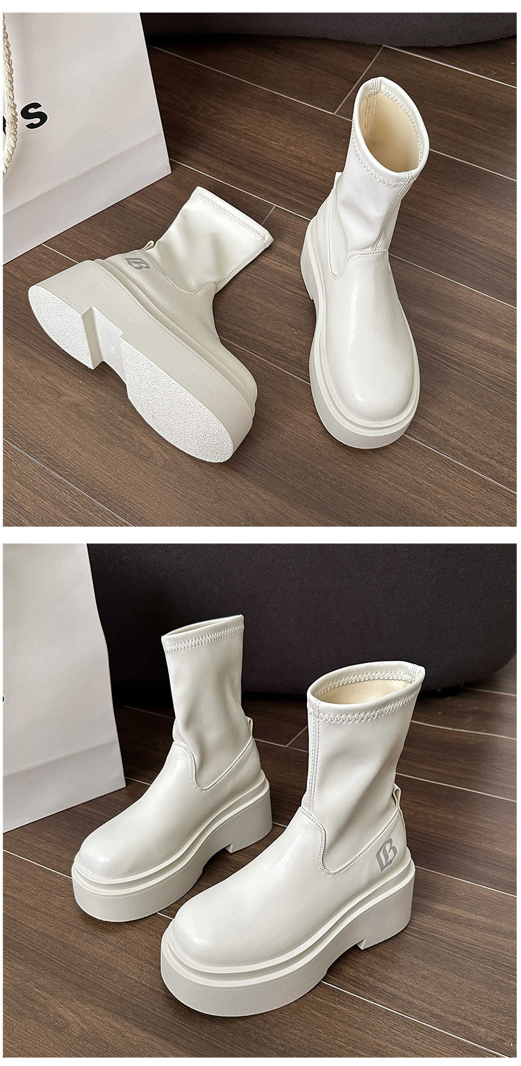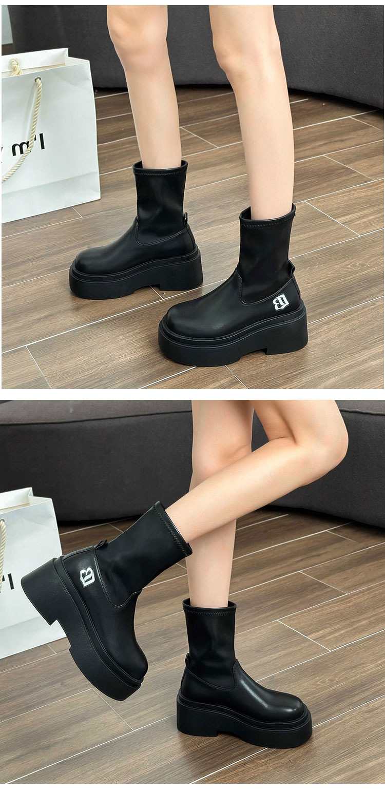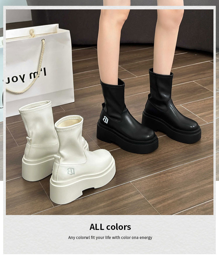 작은 스파이스 걸스 편지 스트레치 부츠 여자의 2024 가을 새로운 상승 마틴 부츠 두꺼운 스키니 짧은 부츠