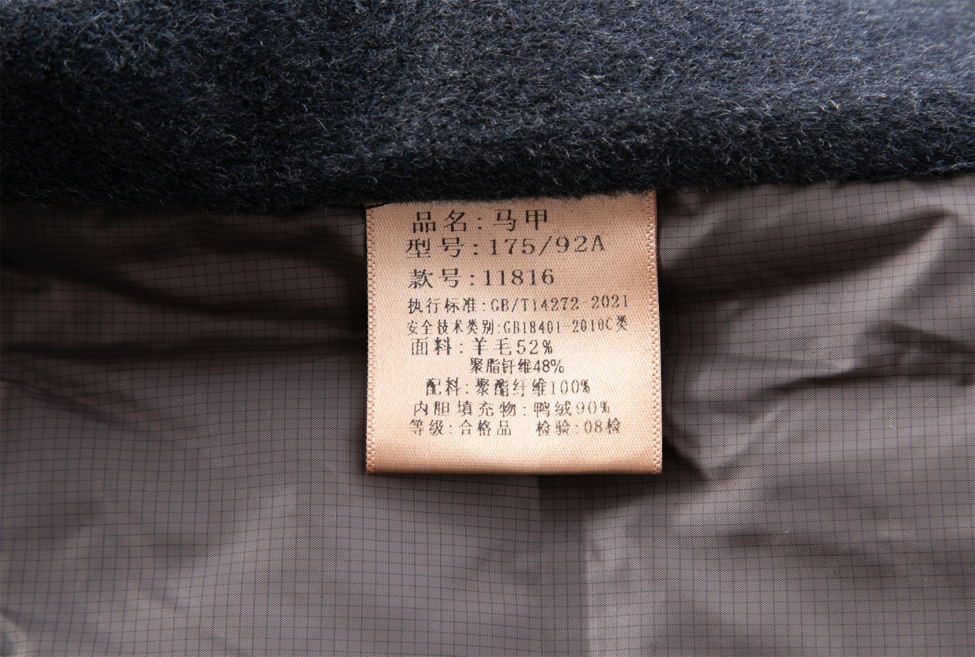 울 52%, 폴리에스터 48%