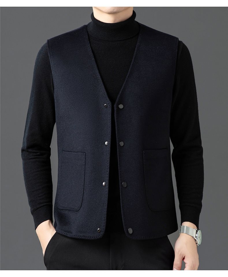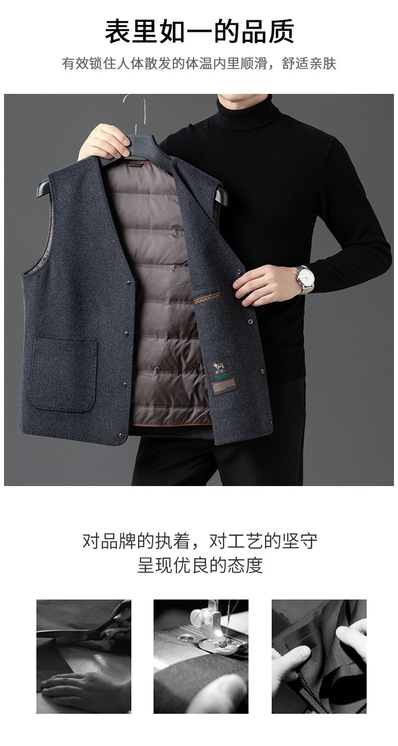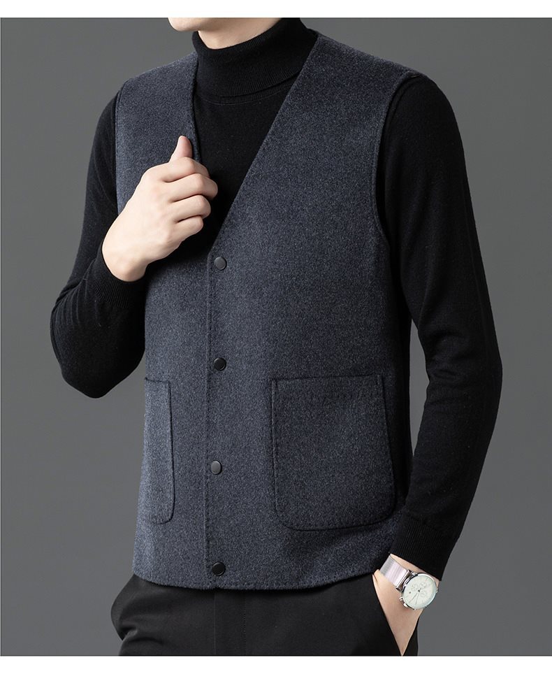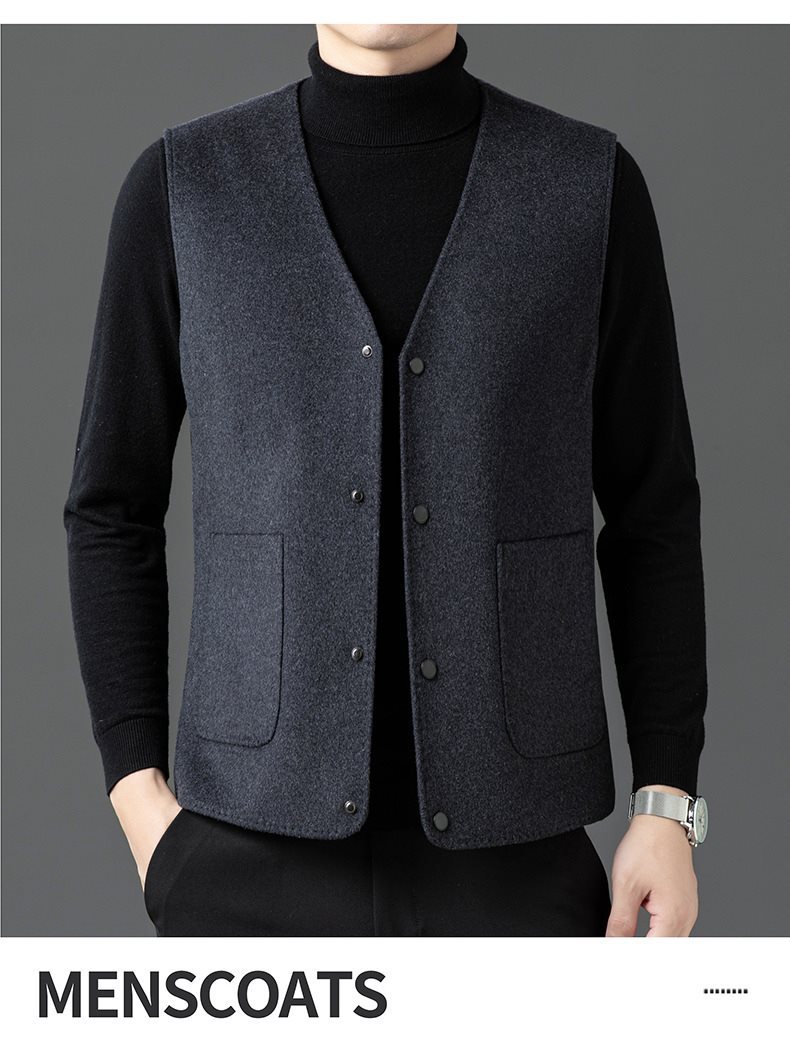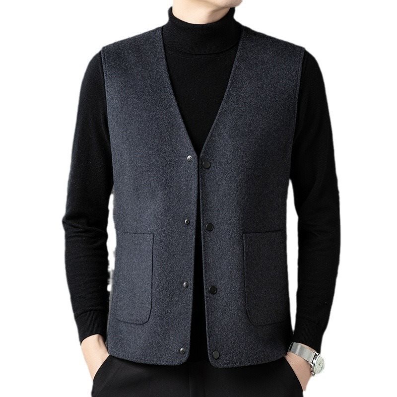남자 양면 트위드 다운 조끼 2024 새로운 양모 모직 아빠 V-neck 비즈니스 남성용 따뜻한 조끼