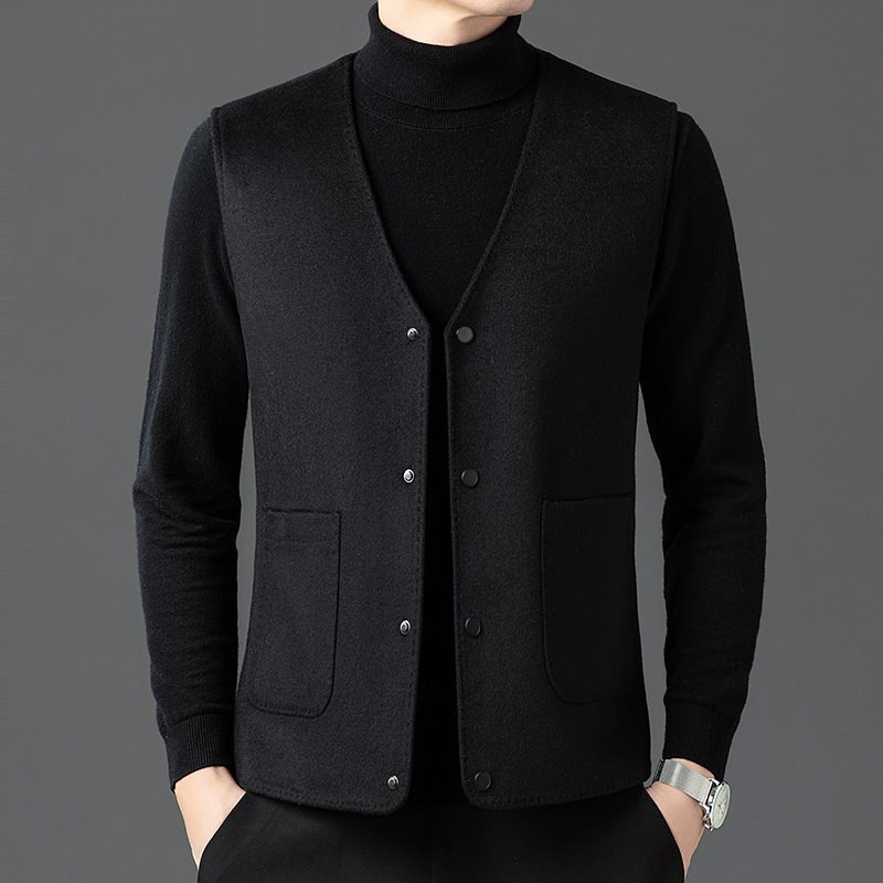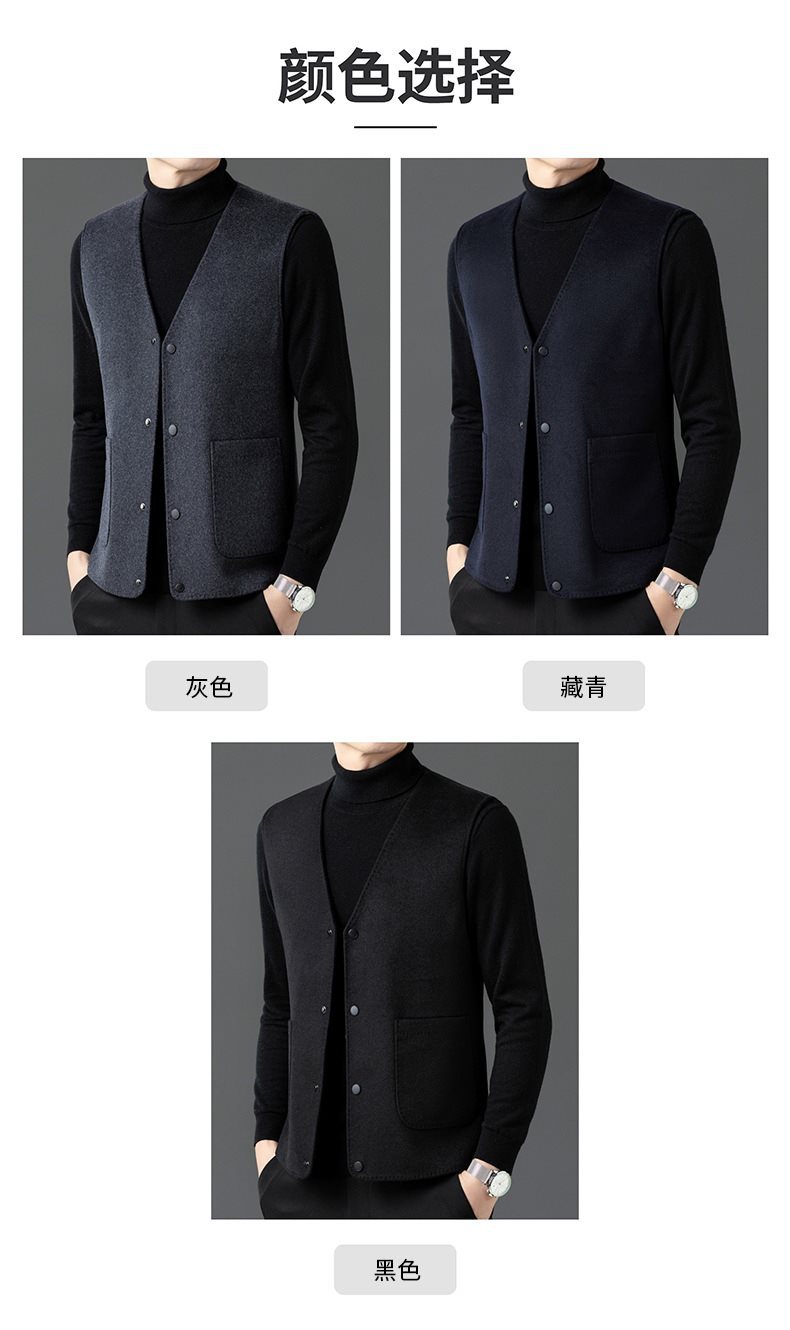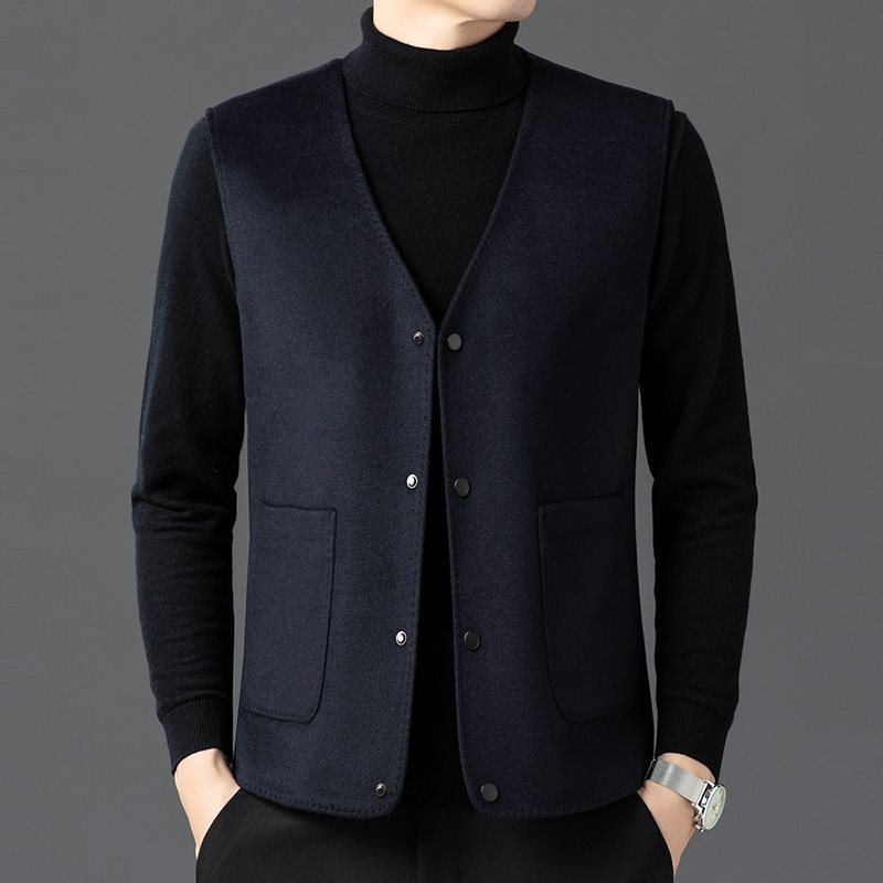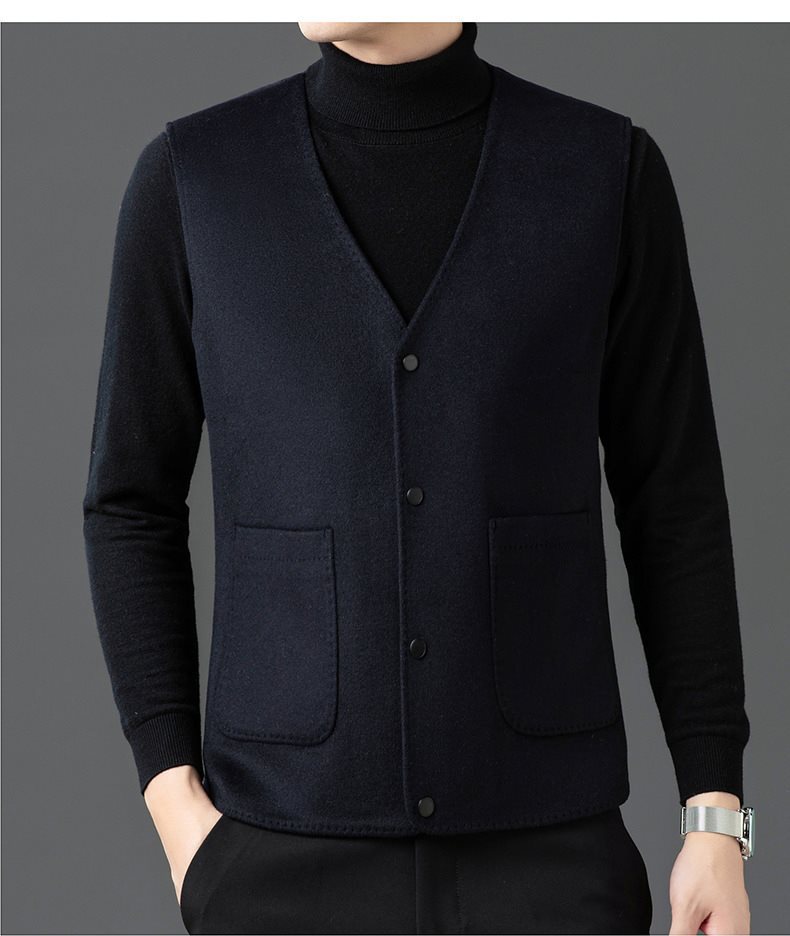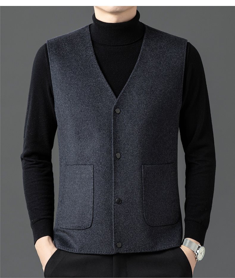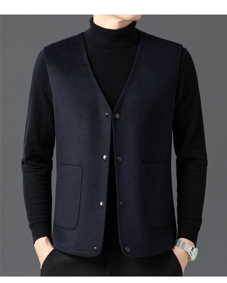 남자 양면 트위드 다운 조끼 2024 새로운 양모 모직 아빠 V-neck 비즈니스 남성용 따뜻한 조끼