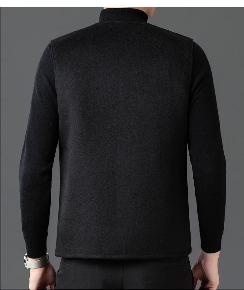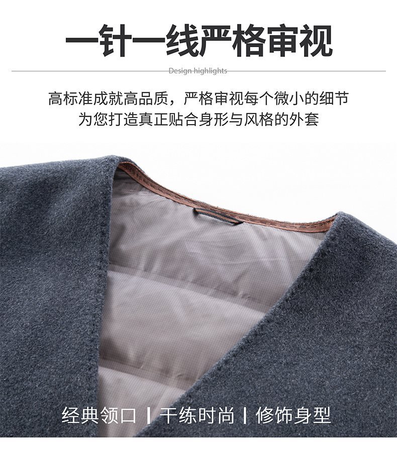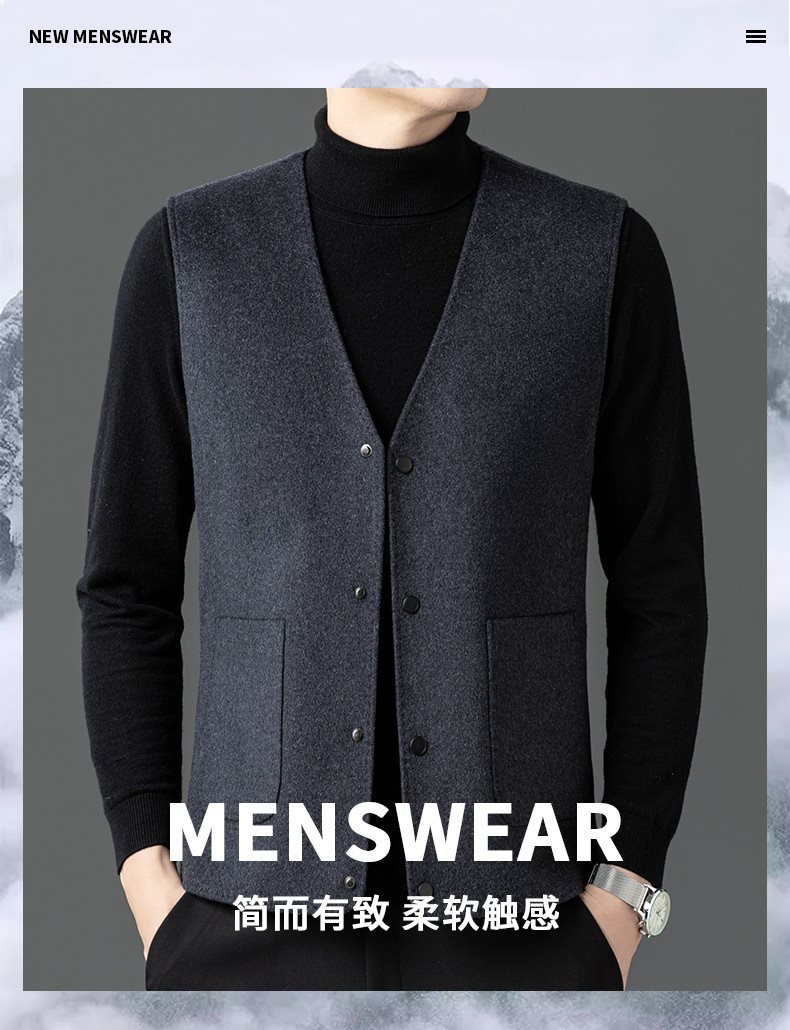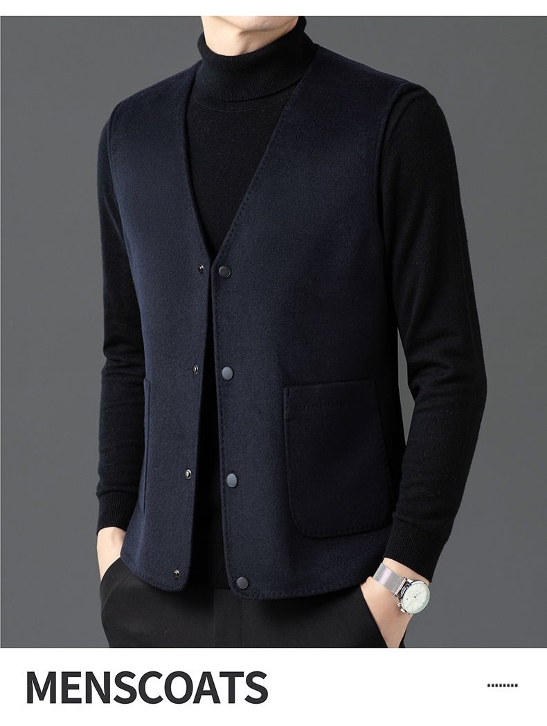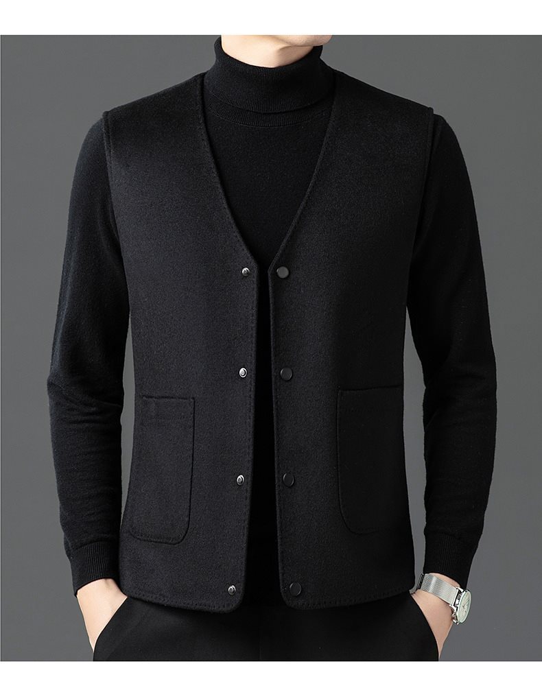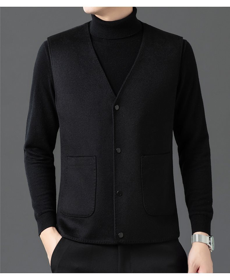 남자 양면 트위드 다운 조끼 2024 새로운 양모 모직 아빠 V-neck 비즈니스 남성용 따뜻한 조끼